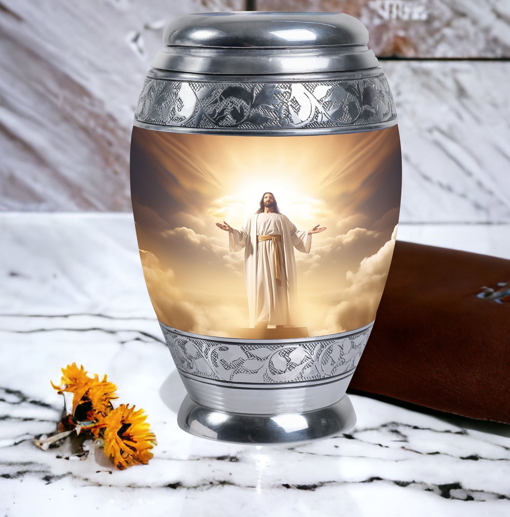 Honoring the memory of a beloved father becomes a deeply meaningful experience with this Jesus Christ Themed Urn for Ashes. Designed to bring comfort and faith-inspired peace, it offers families a beautiful way to safeguard memories while providing a dignified urn for ashes adult male dad. This piece reflects love, respect, and spiritual remembrance for those seeking urns for adult male dad that speak from the heart.