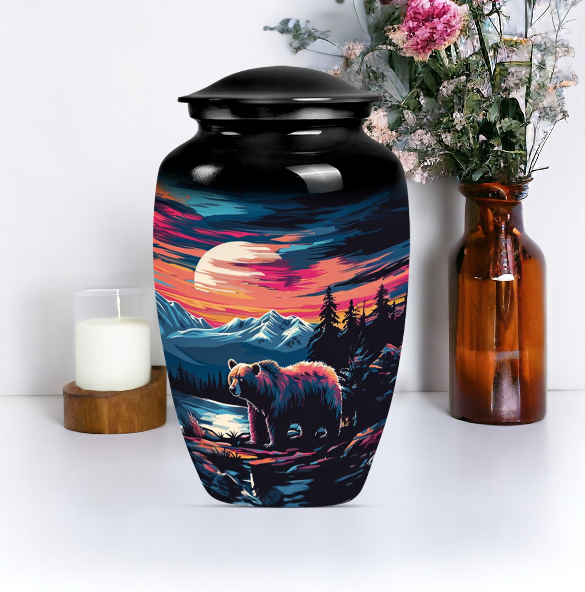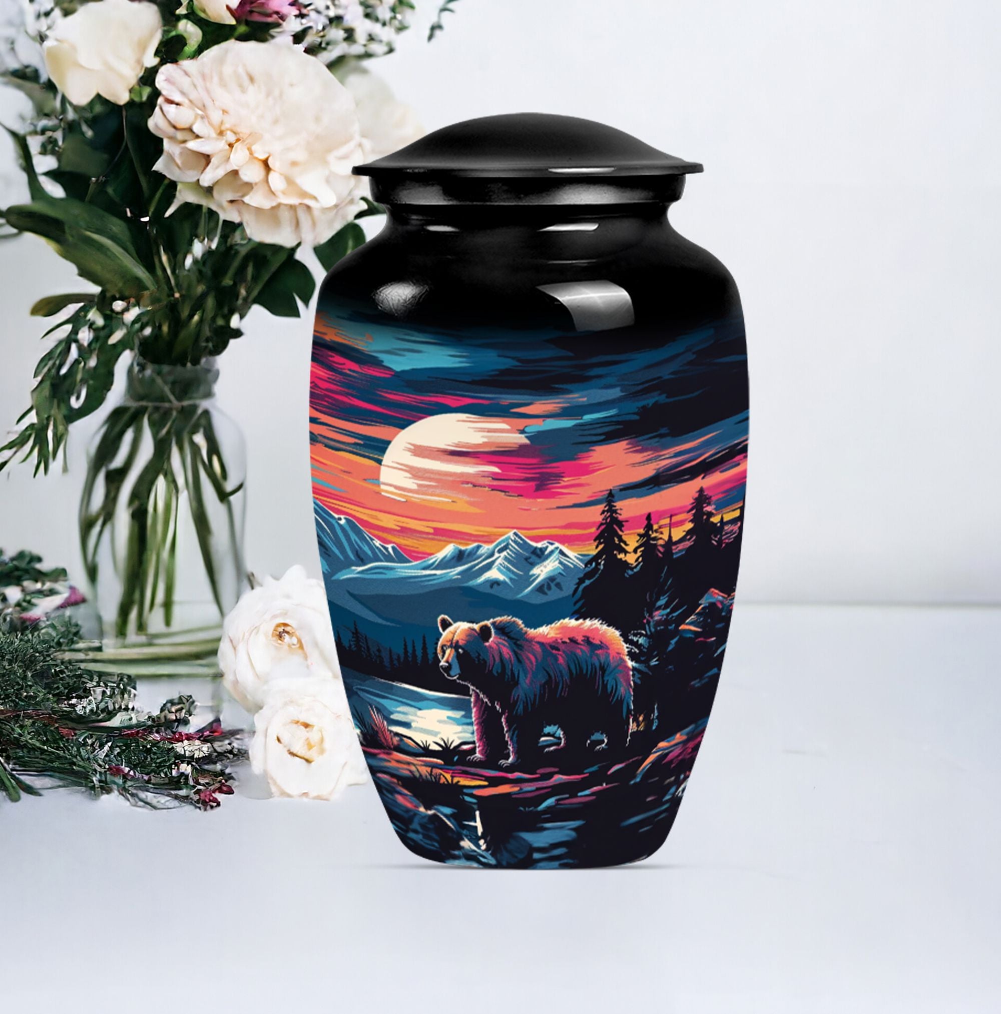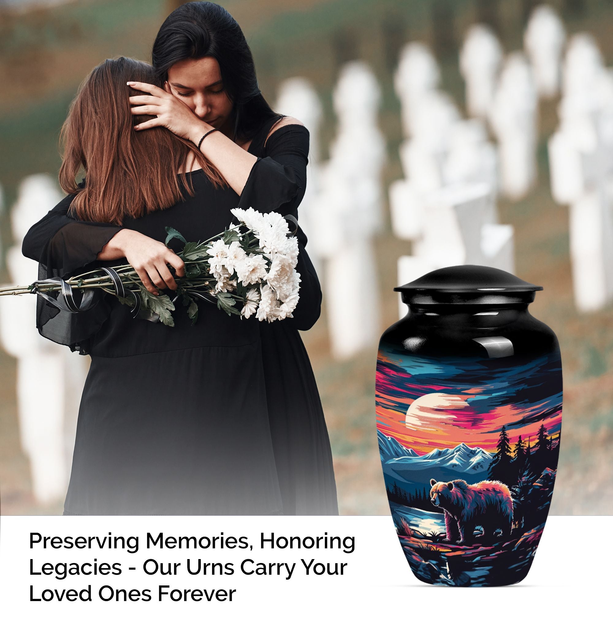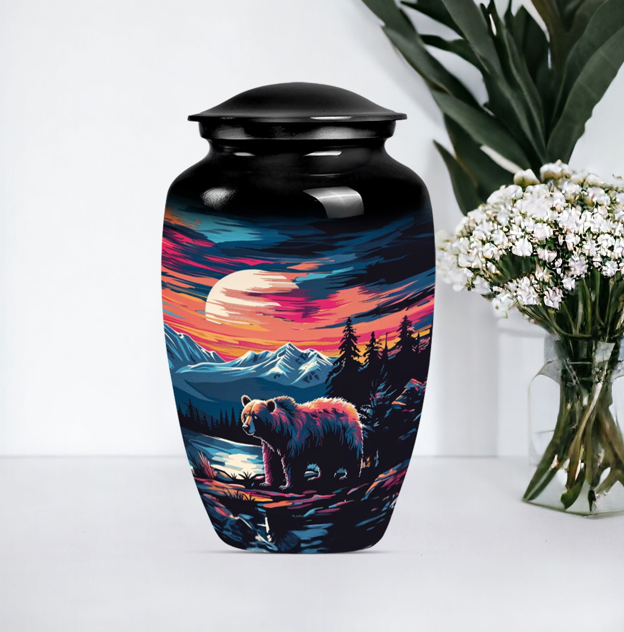 Discover a thoughtful and respectful way to commemorate your loved one with our Butterfly Theme Classic Urn. This large funeral cremation urn, sculpted from high-quality aluminium, stands 10 inches tall and boasts an impressive weight of 3.3 pounds. It has been crafted with attention to detail, ensuring it serves as a beautiful memorial piece. Bearing a capacity of 200 cubic inches, the urn can comfortably contain the ashes. Our package includes a smooth velvet pouch for the containment and protection of the ashes. Most unique is the personalization element. You have the option to engrave names, adding an invaluable touch to this already precious item. Our 'bear urn' elegantly combines comfort, style, and function, cementing its value past the norm of funeral urns for women. Cherish memories and celebrate lives lived with our ash urn that's uniquely urn-shaped, offering a classic and timeless addition to your memorial ceremony supplies.