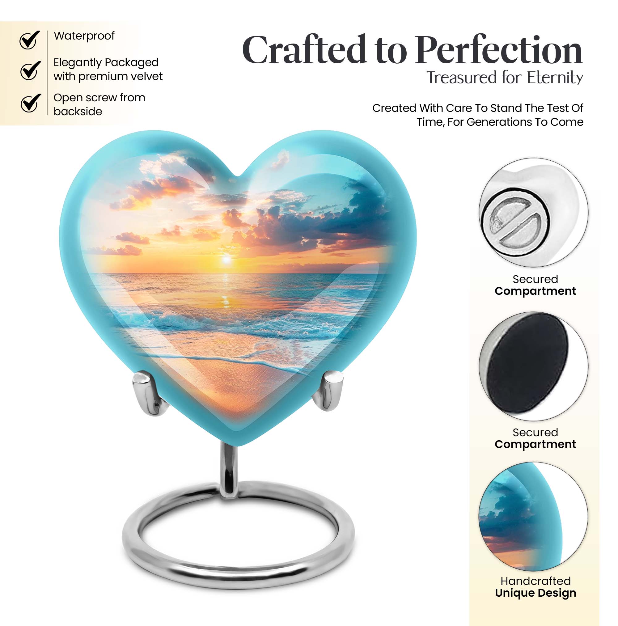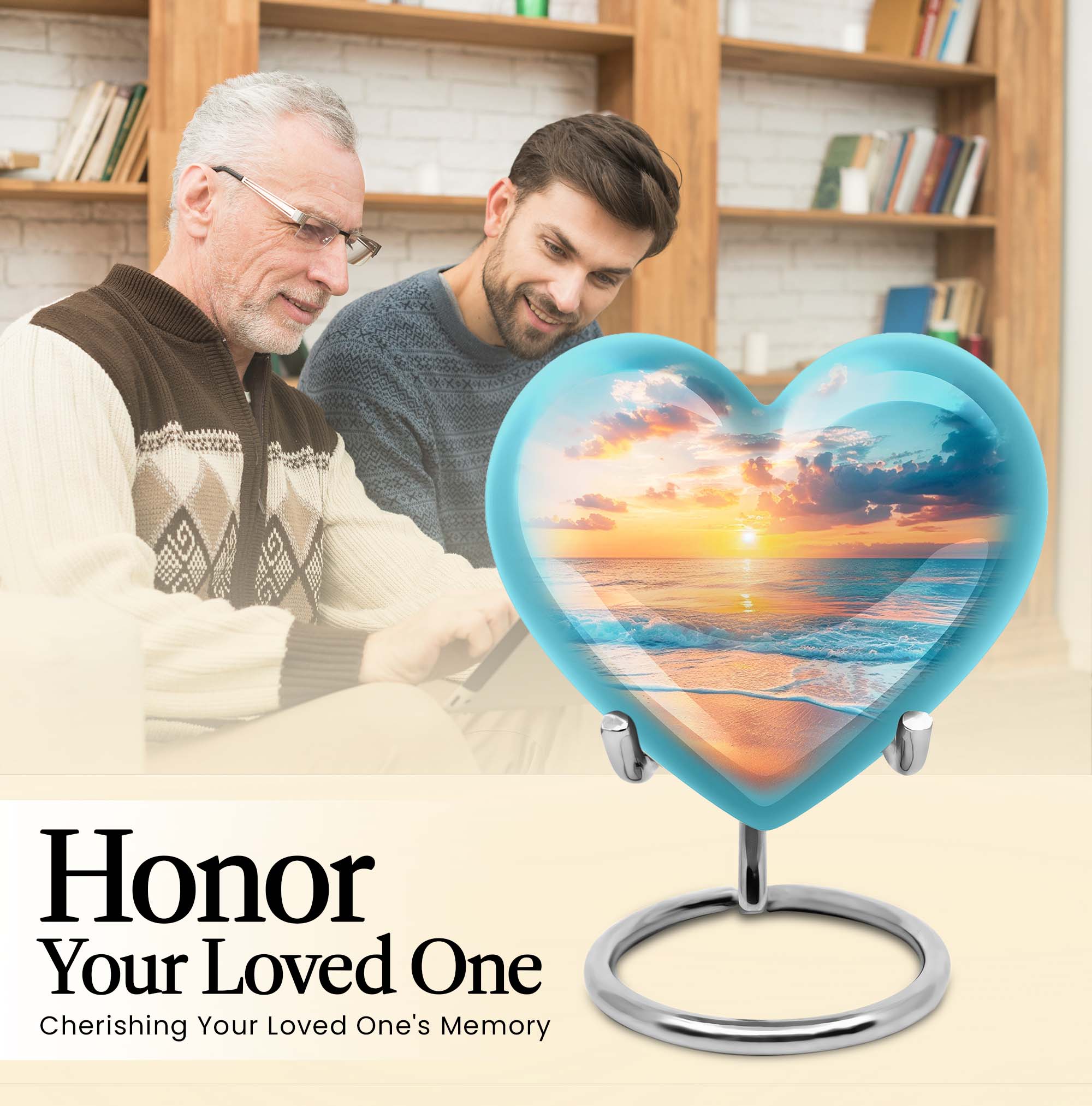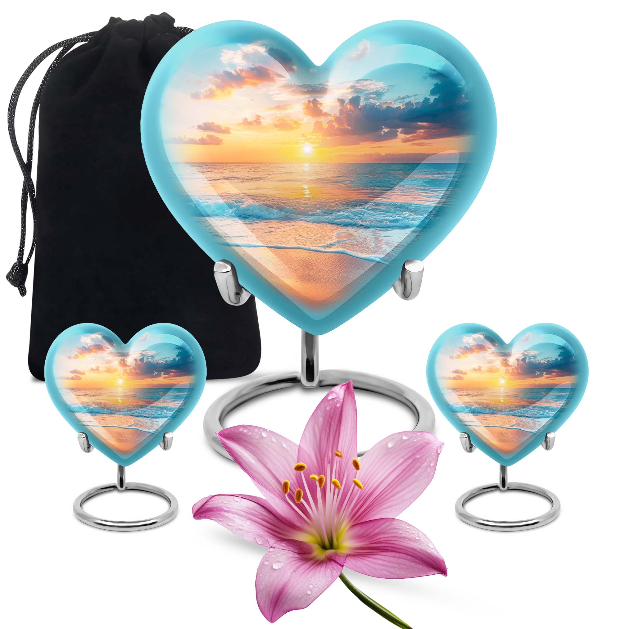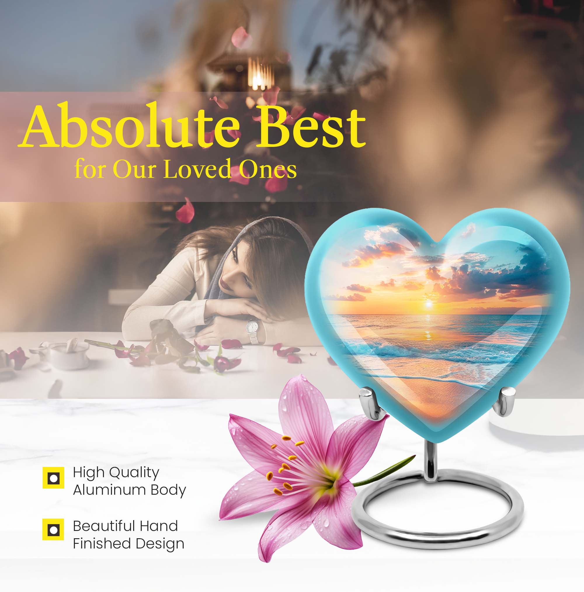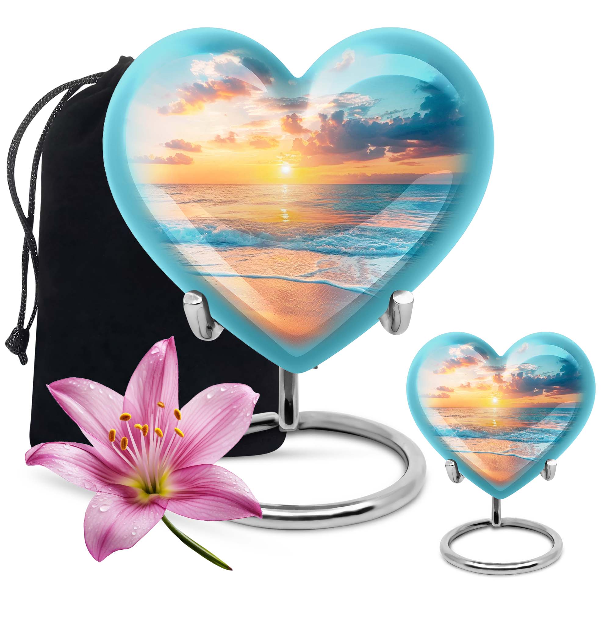 Cherish the memory of your loved ones with our unique 10 Inch Sunset Beach Urn, a standout choice in memorial urns, designed for adults and seniors. Crafted with passion and precision, this large urn sets a memorable tone with its wolf howling theme that mirrors the strength and resilience of the departed. Tailored intricately from durable aluminium, this funeral urn for ashes adult weighs a solid 3.3 pounds, standing 10 inches tall, which gives it a capacity to hold up to 200 cubic inches of ashes. Make it even more special by personalizing it with engraved names, adding a touch of familiarity and love to this solitary symbol of remembrance. For your convenience, our urn ash men is delivered with a velvet pouch, ensuring safe containment of the ashes. Explore the unfading charm of our Sunset Beach Urn, a perfect homage to the eternal journey of life.