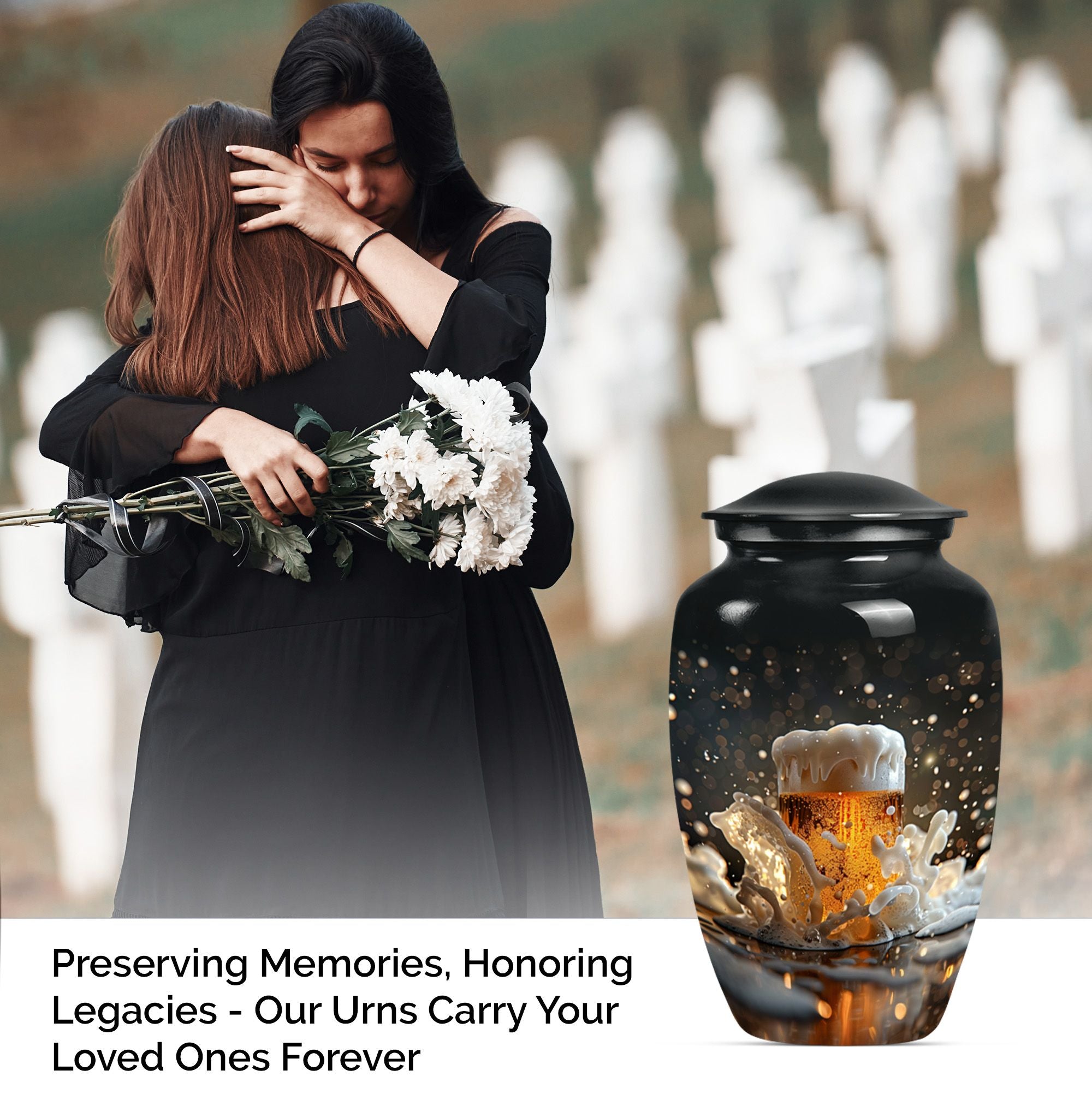 For people looking for a tasteful and lasting remembrance, this 10-inch themed aluminum memorial urn is the perfect solution. It seamlessly blends its singular aesthetic with functionality, creating a heartfelt tribute that is as unique as the person it commemorates. This funeral urn's weight of 3.3 pounds and a capacity of 200 cubic inches makes it a suitable large urn for containing ashes. With each purchase, you obtain a velvet pouch perfect for the safe containment of your loved one's ashes. A notable aspect is the option to personalize this urn with engraved names, thus making it a truly unique memorial piece. When it comes to memorial funeral urns for ashes, this urn, with its classic design and remarkable theme, stands as a shining exemplar. The distinctive approach of this urn makes it an unusual find among decorative urns and urns for cremation ashes of mothers and fathers. For those who seek to commemorate the uniqueness of their loved ones, this themed urn provides a peerless option.
