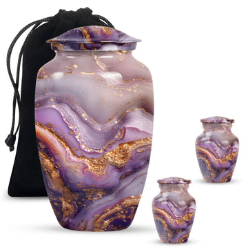Discover a peaceful and tasteful resting place for your loved ones with this 10-inch Vibrant Swirl Urn, exceptionally designed for those requiring cremation personalized urns for human ashes adult. Skillfully constructed from high-quality aluminum, it showcases an abstract theme in its classic urn design, setting apart from typical cremation urns. The urn weighs a substantial 3.3 pounds, projecting a hefty feel, and has a large urn's total capacity of 200 cubic inches, suitable to accommodate an adult's ashes with ease. Package contents include a magnificent velvet pouch adding an extra layer of importance to the containment of ashes. Also, the urn extends an option for customization where you can personalize it further with engraved names. Reflecting high standards in design and craft, this cremation large urn or urn ash burial urn makes an appealing option amongst urns for cremation ashes for men or personalized urns for cremation ashes mother.
