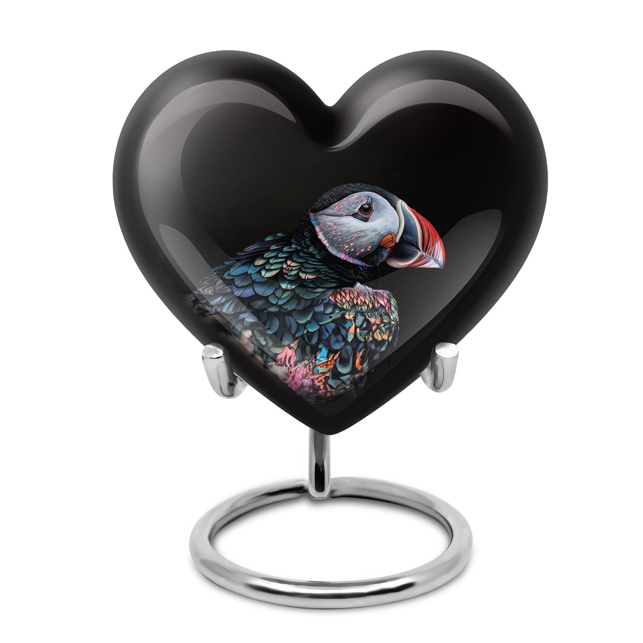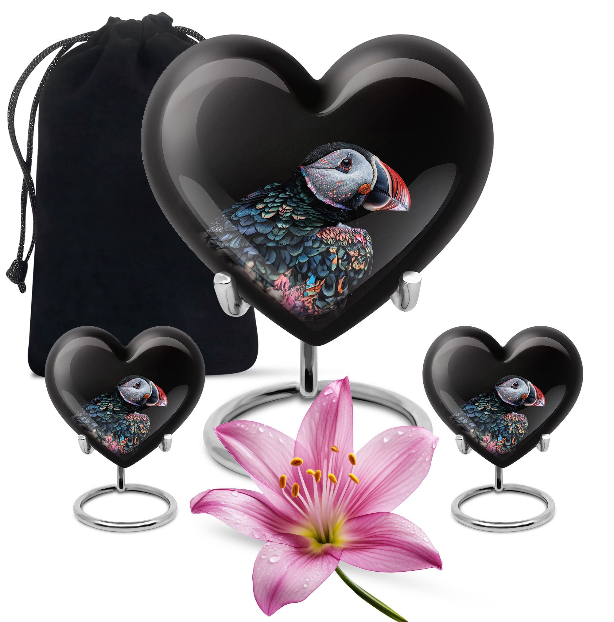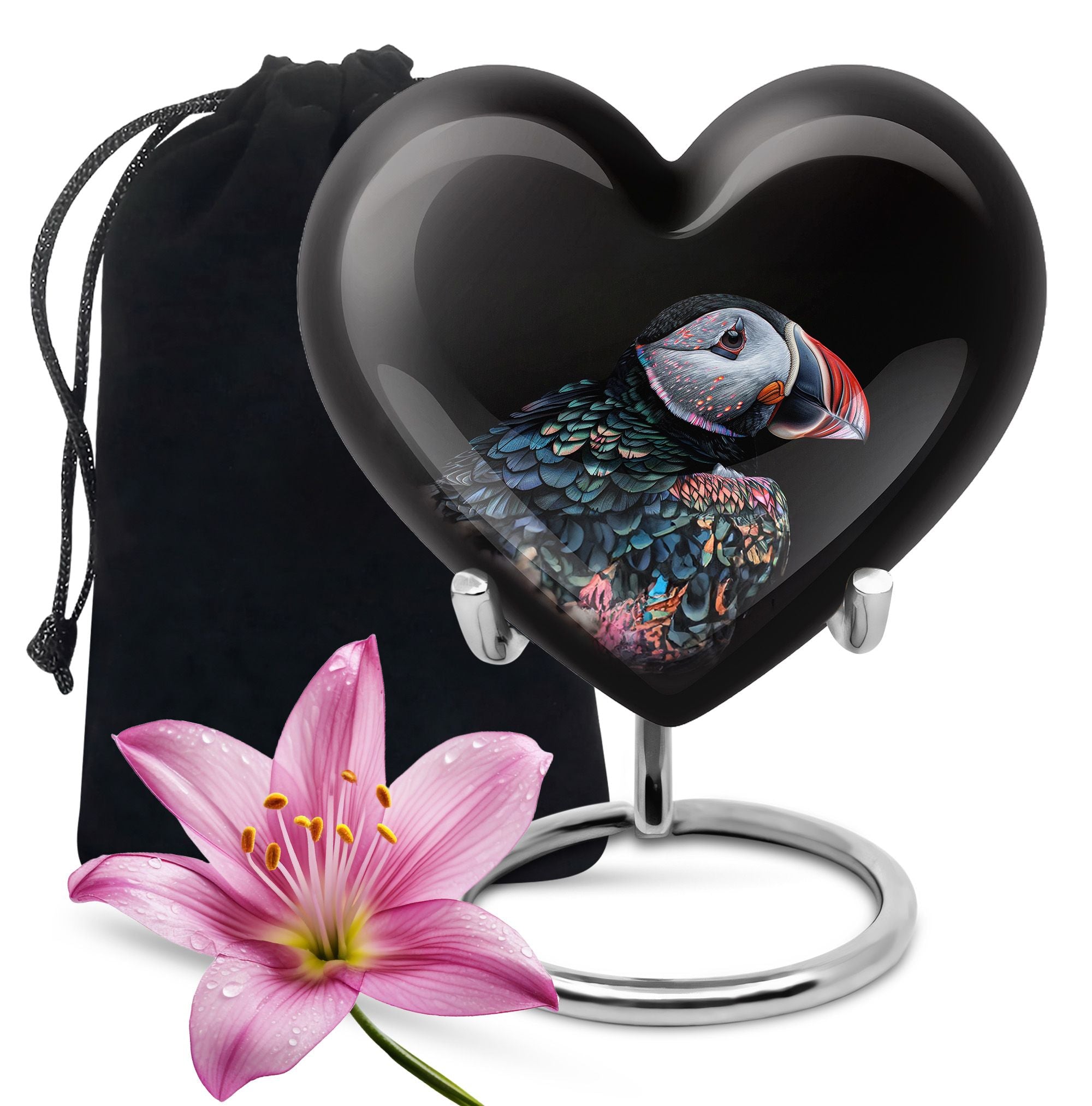 Presenting the Puffin Bird Urn, an exceptional choice for adults and seniors desiring a heartfelt, dignified vessel as a funeral urn for mom or loved ones. Defined by its Puffin Bird theme and heart shape, it perfectly embodies love and affection. This 10-inch large urn, crafted from robust aluminium, is timeless, enduring, and weighs just 3.3 pounds for comfortable handling. It can accommodate up to 200 cubic inches of ash, ensuring the memories of the departed peacefully rest. The urn comes packaged with a velvet pouch, adding an extra layer of reverence while containing the ashes. Benefit from the optional customization feature to make it personal. Personalize it by adding engraved names of the departed, adding a distinctive, commemorative touch to this cremation urn. Avoiding clichéd jargon, this urn reflects the softness yet strength of a puffin bird, simultaneously grand and touching. For memorial adult urn choices, this human urn for ash adult subtly bridges the gap between tribute and art, making it more than just earns for ashes but a symbol of remembrance. Consider these custom cremation urns, and you'll add a unique, loving testament to your loved one's life.