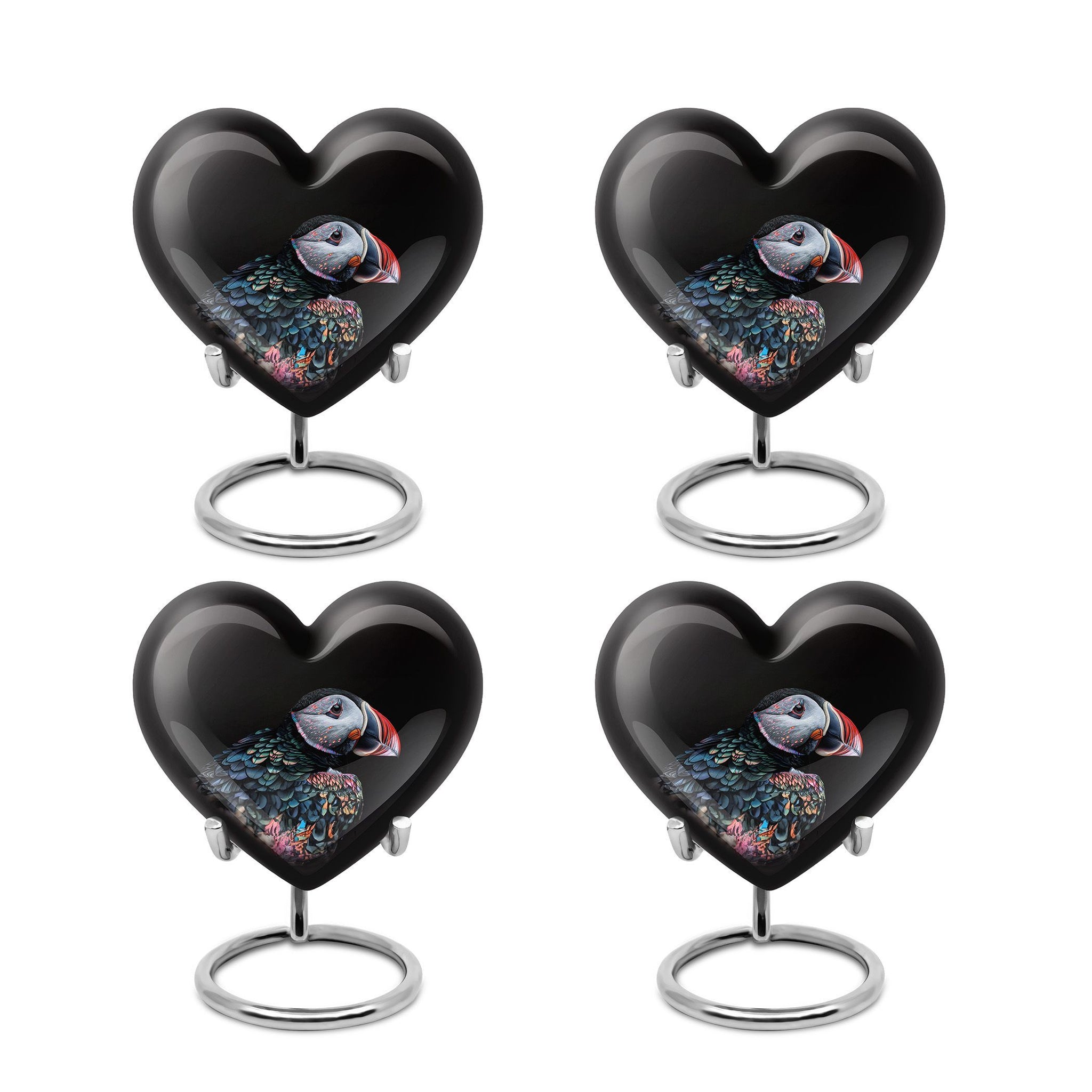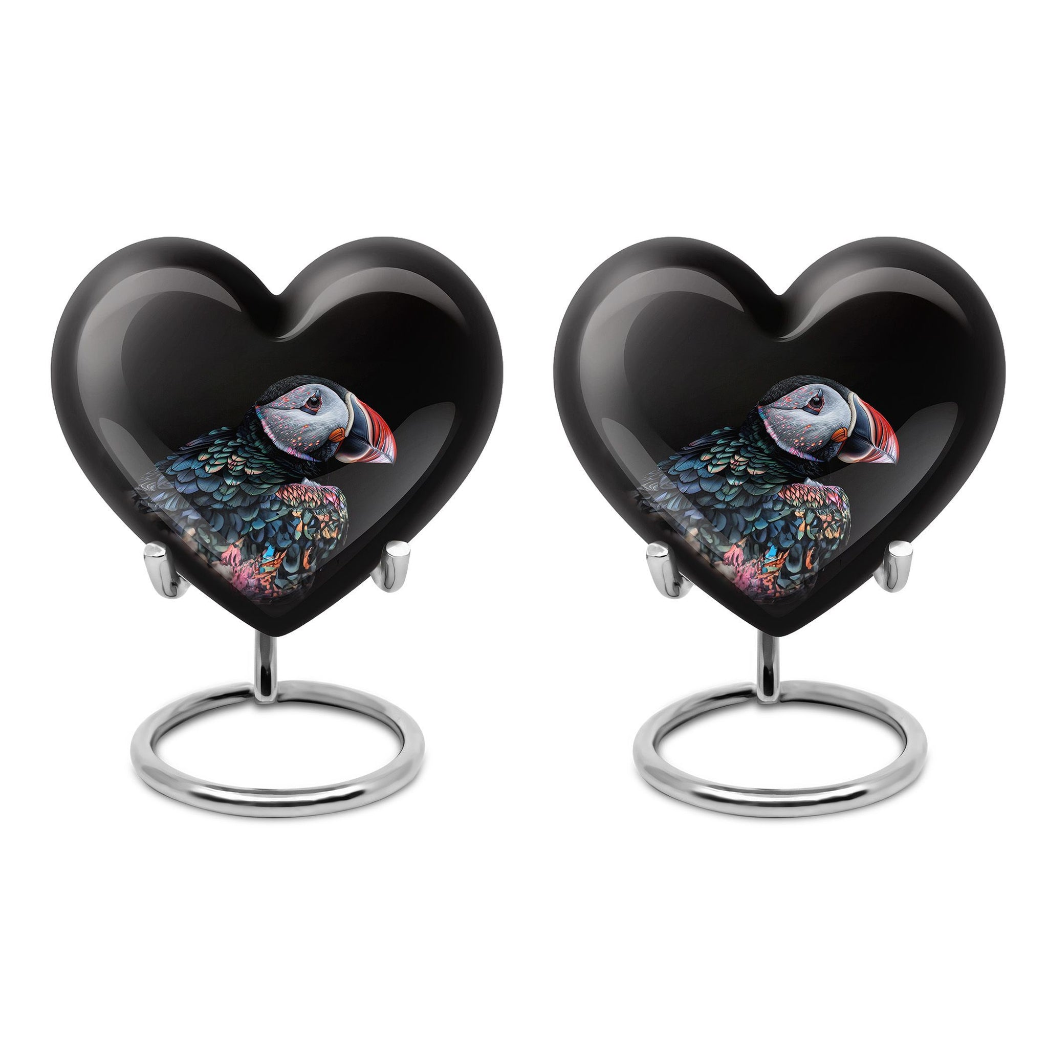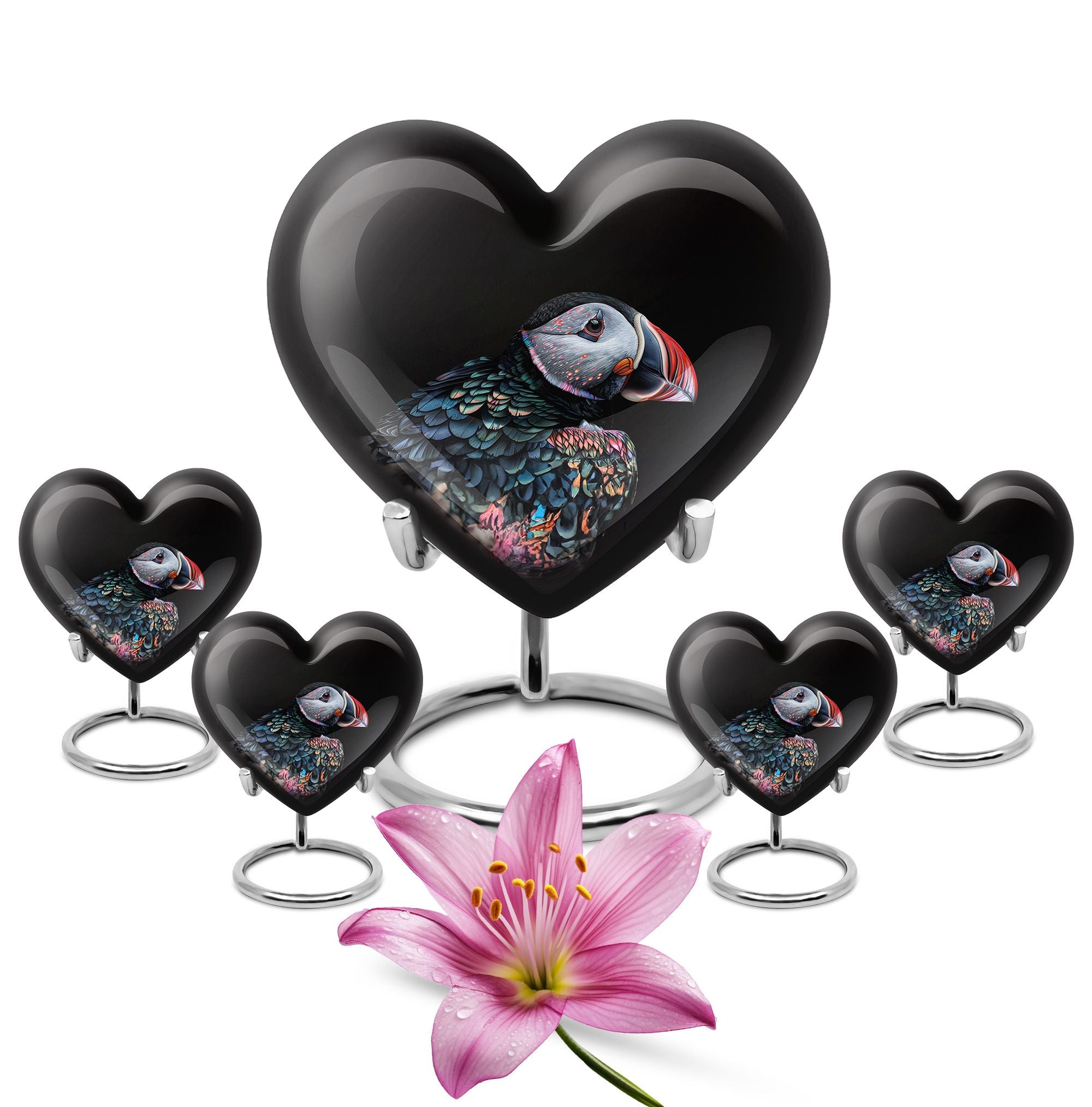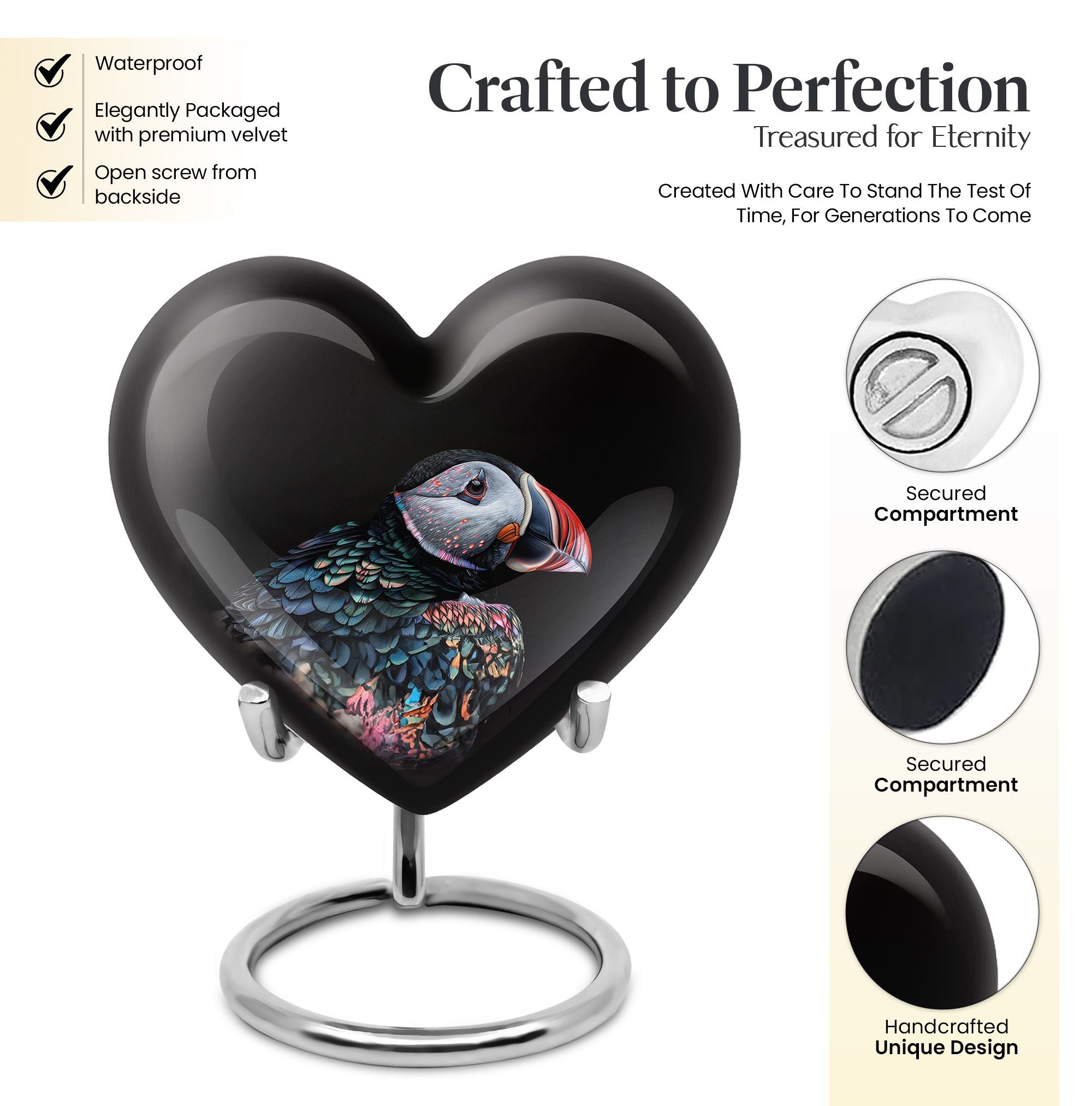 Presenting the Puffin Bird Urn, an exceptional choice for adults and seniors desiring a heartfelt, dignified vessel as a funeral urn for mom or loved ones. Defined by its Puffin Bird theme and heart shape, it perfectly embodies love and affection. This 10-inch large urn, crafted from robust aluminium, is timeless, enduring, and weighs just 3.3 pounds for comfortable handling. It can accommodate up to 200 cubic inches of ash, ensuring the memories of the departed peacefully rest. The urn comes packaged with a velvet pouch, adding an extra layer of reverence while containing the ashes. Benefit from the optional customization feature to make it personal. Personalize it by adding engraved names of the departed, adding a distinctive, commemorative touch to this cremation urn. Avoiding clichéd jargon, this urn reflects the softness yet strength of a puffin bird, simultaneously grand and touching. For memorial adult urn choices, this human urn for ash adult subtly bridges the gap between tribute and art, making it more than just earns for ashes but a symbol of remembrance. Consider these custom cremation urns, and you'll add a unique, loving testament to your loved one's life.