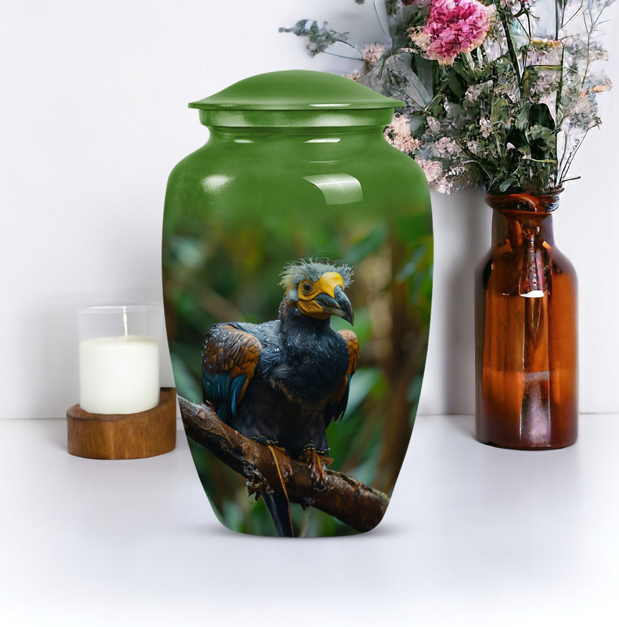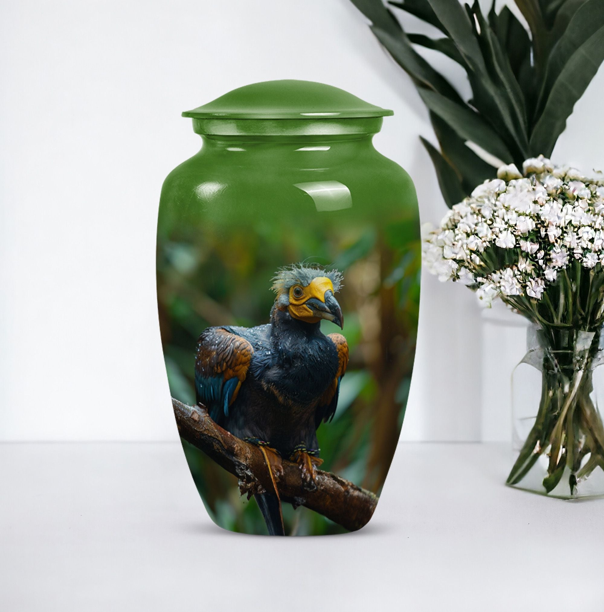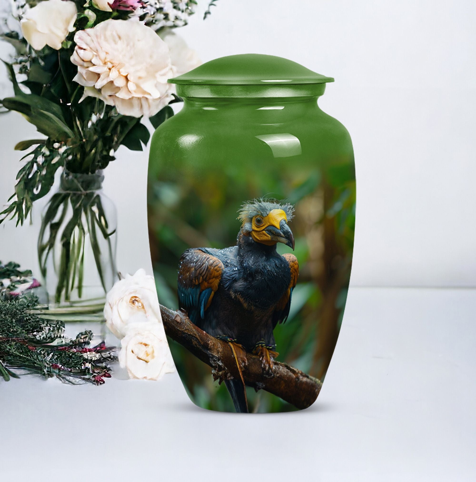 Experience the soft elegance of the 10-inch Puffin bird Urn, an ideal choice to cherish the remains of a beloved person you'd like to keep close to your heart. This large urn, weighing only 3.3 pounds, showcases an abstract theme and comes crafted from top-grade Aluminium that ensures long lasting durability. Its intricate creation effortlessly matches with the 'Classic Urn' type. A prominent feature of this burial cremation urn is its 200-cubic inch capacity, fitting in a substantial amount of ashes. The urn comes with a velvet pouch designed to safely contain the ashes, adding to the ceremonial aspect of the product. Not stopping at that, the personalization by engraved names makes it all the more special and meaningful. The Puffin Bird Urn, much more than just a 'cremation urn', becomes a poignant part of your life. For those seniors and adults in search of high-quality cremation urns, Adult Female Elegant Urn in Porcelain, or even metal funeral urns for human ashes adult, this could be your elegant choice.