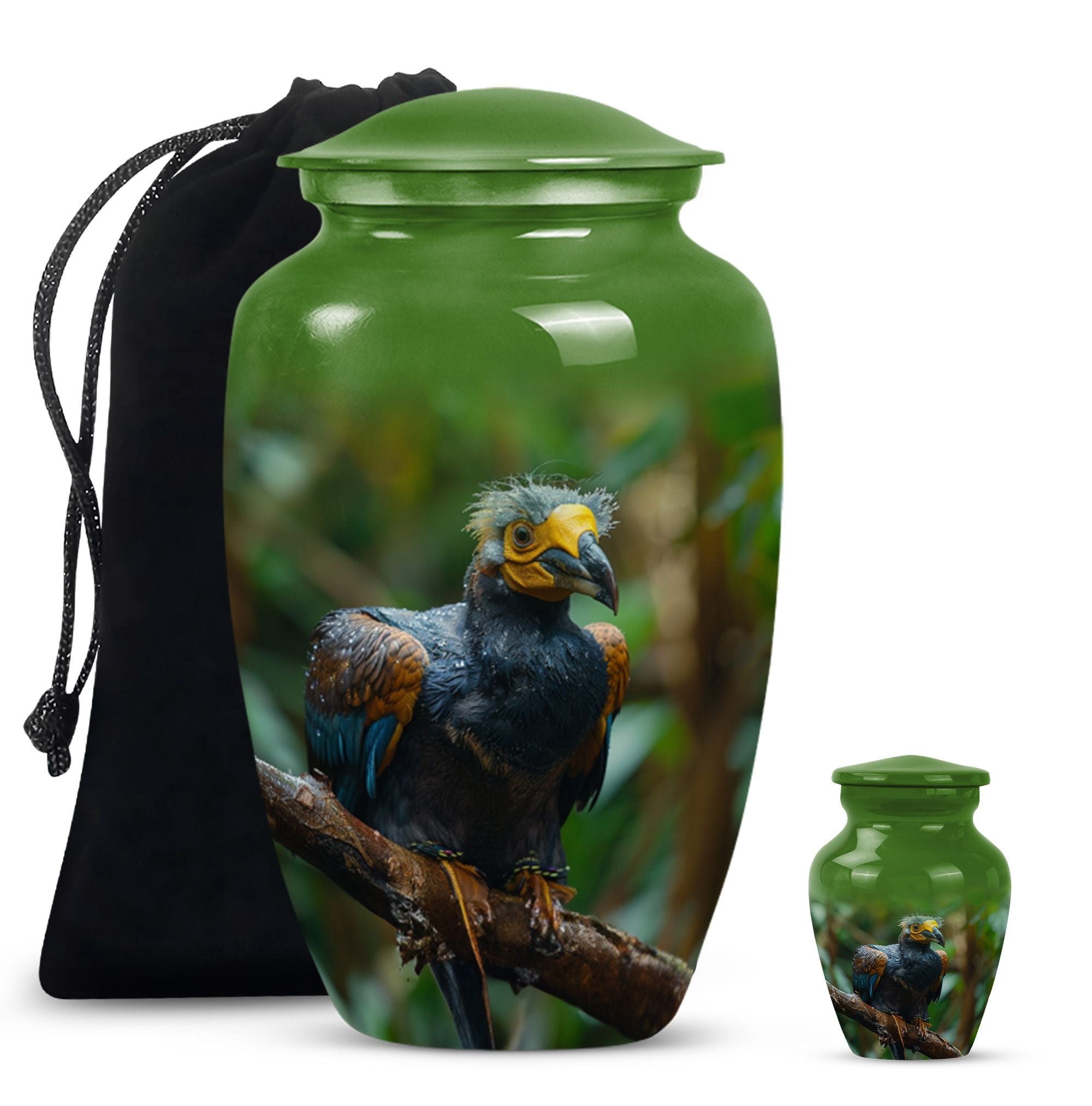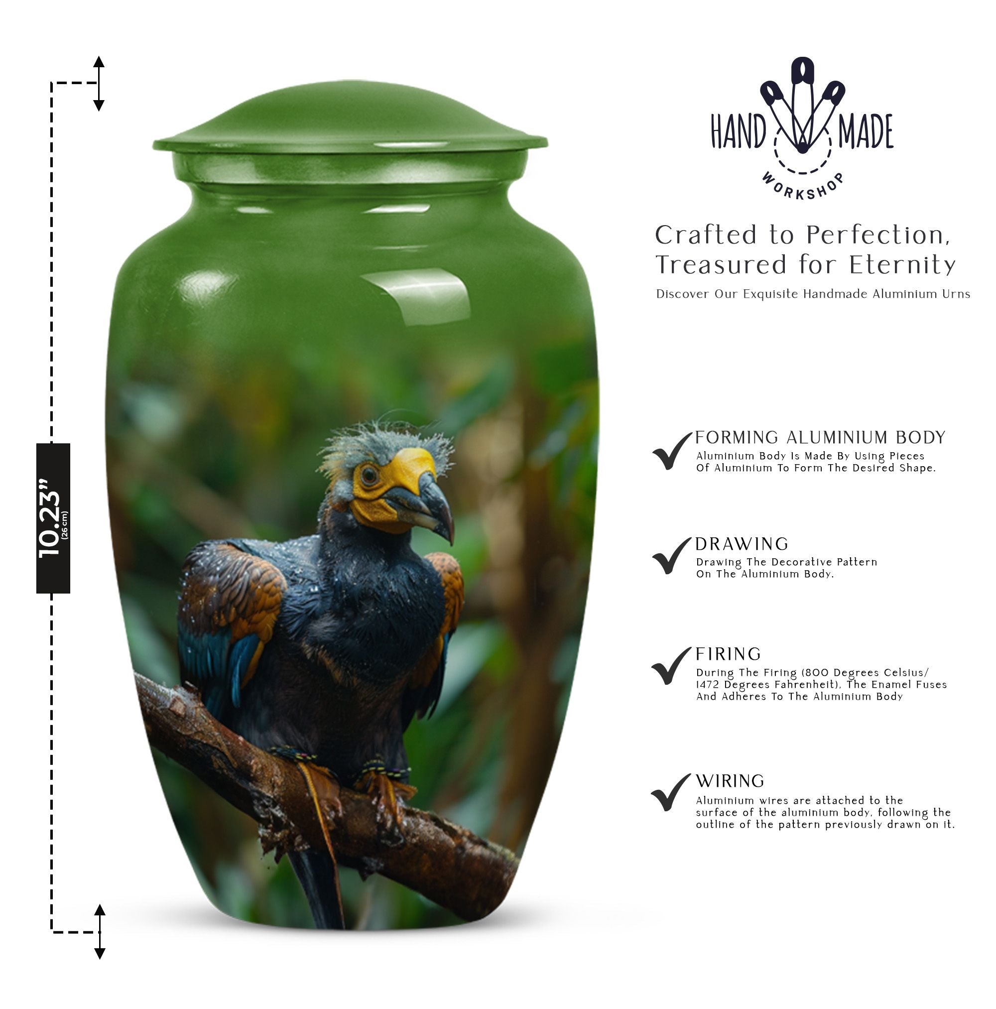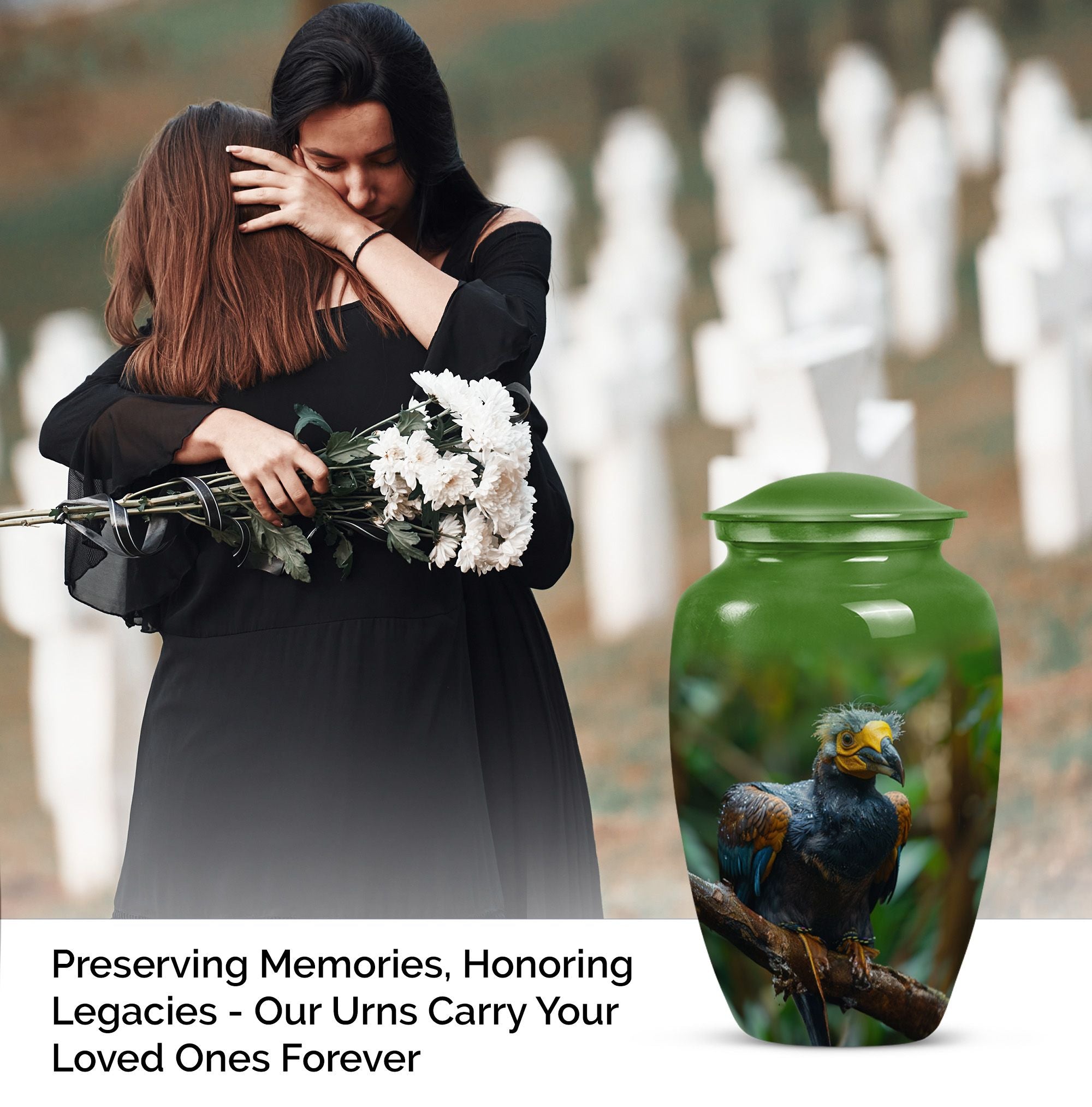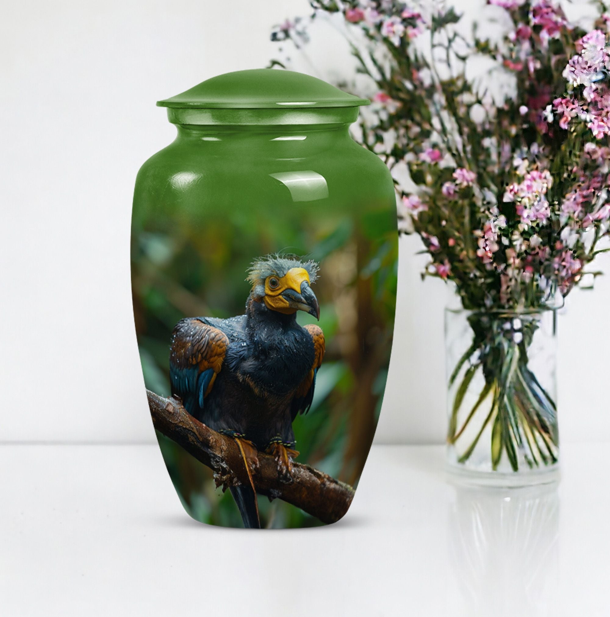 Experience the soft elegance of the 10-inch Puffin bird Urn, an ideal choice to cherish the remains of a beloved person you'd like to keep close to your heart. This large urn, weighing only 3.3 pounds, showcases an abstract theme and comes crafted from top-grade Aluminium that ensures long lasting durability. Its intricate creation effortlessly matches with the 'Classic Urn' type. A prominent feature of this burial cremation urn is its 200-cubic inch capacity, fitting in a substantial amount of ashes. The urn comes with a velvet pouch designed to safely contain the ashes, adding to the ceremonial aspect of the product. Not stopping at that, the personalization by engraved names makes it all the more special and meaningful. The Puffin Bird Urn, much more than just a 'cremation urn', becomes a poignant part of your life. For those seniors and adults in search of high-quality cremation urns, Adult Female Elegant Urn in Porcelain, or even metal funeral urns for human ashes adult, this could be your elegant choice.