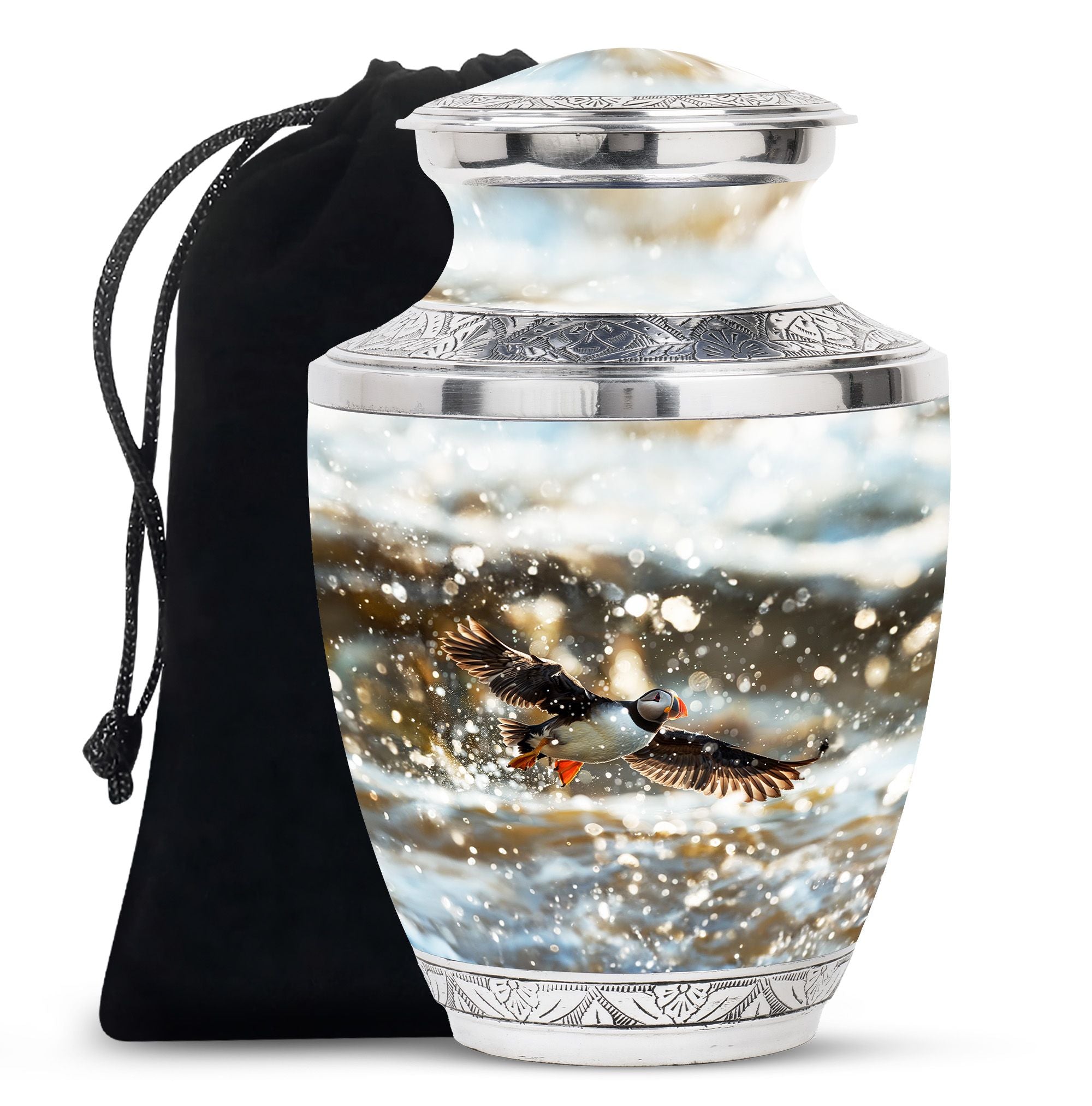With its heartfelt design and symbolic puffin motif, this urn celebrates life, love, and cherished memories. Perfect for urns ashes adult male, urns adult female, or any loved one whose memory deserves a special, enduring tribute.