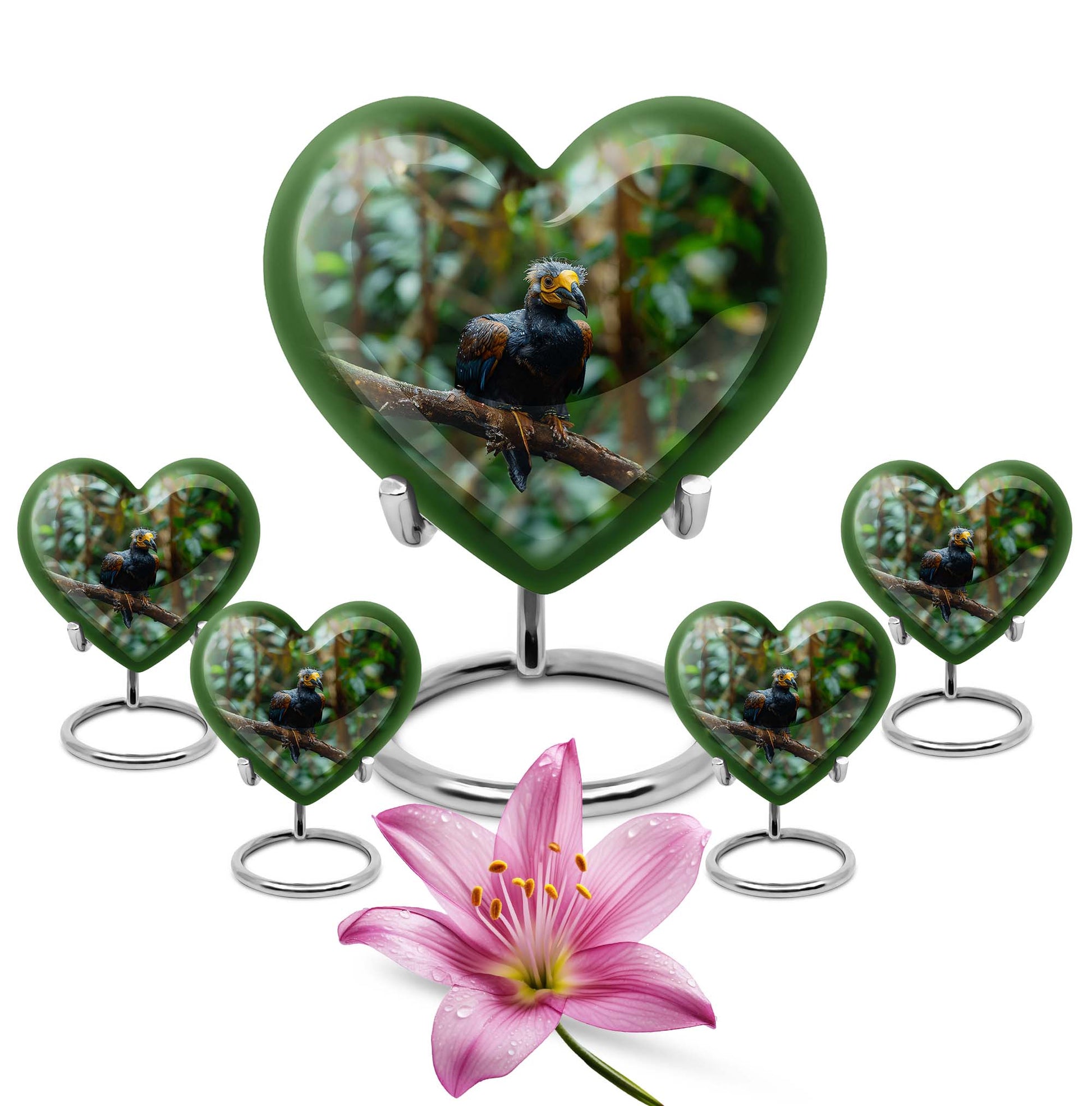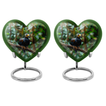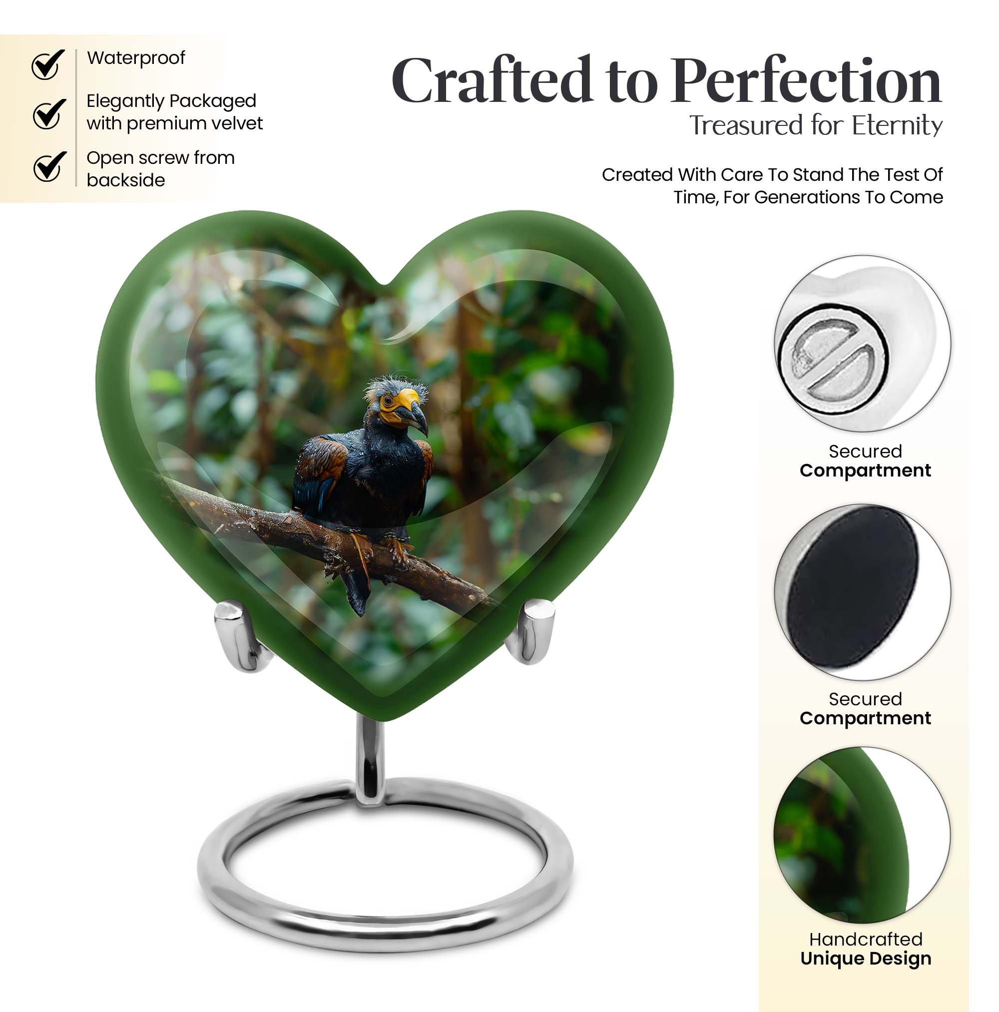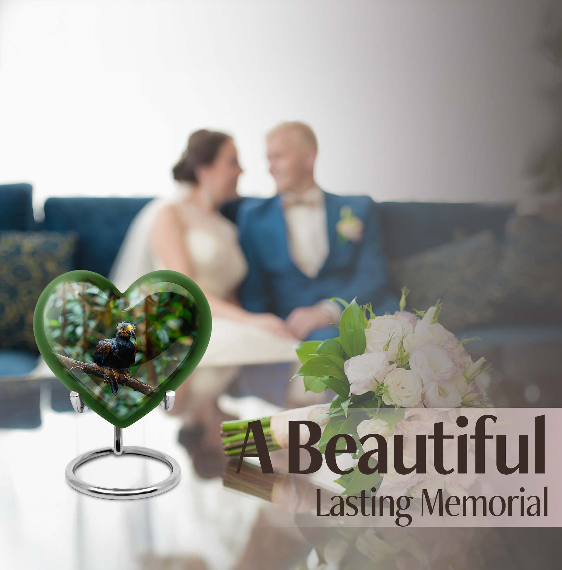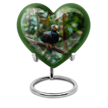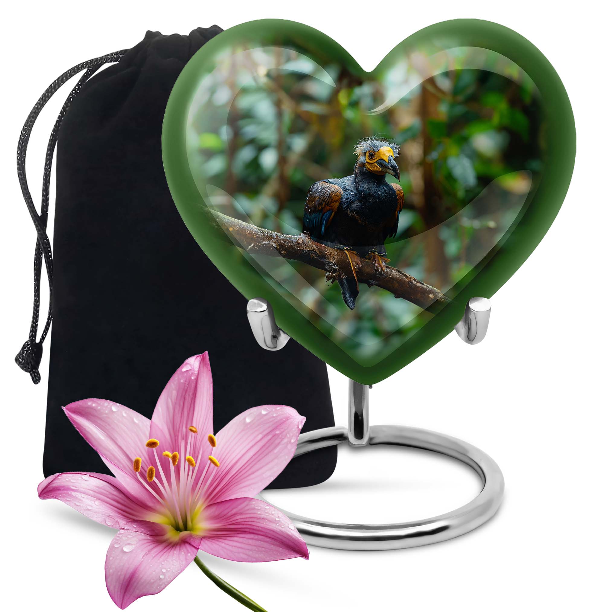 Cherish your loved ones with our exclusively crafted Puffin bird urn, an ideal choice among burial cremation urns for adults and seniors. This unique piece is not just a cremation urn but a work of art, boasting a graceful heart urn shape that is abstract in theme. With a generous size of 10 inches and a weight of 3.3 pounds, this large urn is created with optimum finish and precision. The urn is made from high-quality aluminum, promising a sturdy and enduring tribute.Furthermore, it has the capacity of 200 cubic inches to securely hold the precious ashes of your beloved. Each urn comes with a velvet pouch for safe containment of ashes, ensuring proper respect and dignity. The urn also offers an option for personalization with engraved names for a more intimate touch. Our Puffin bird Urn is the perfect memorial ceremony supply for those who appreciate beauty and elegance during a time of loss. Remember, our loved ones deserve nothing but the best memorial. Keywords: adult female elegant urn in porcelain, metal urn for burial, funeral urns for human ashes adult.