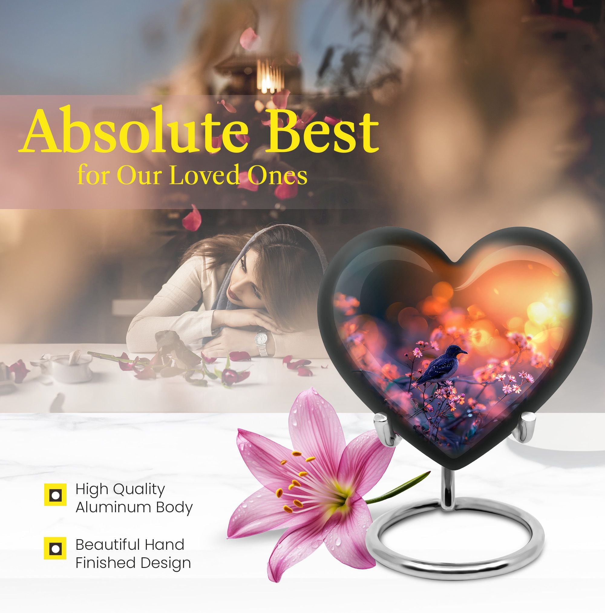 Discover a heartwarming way to pay respects to your loved one with our Puffin Bird Urn, a thoughtful symbol of everlasting love. Designed in a heart shape and crafted from high-quality aluminium, this 10-inch burial ashes urn is not only sturdy but also exudes a touch of grace and reverence. With a serene puffin bird theme, the urn is capable of holding up to 200 cubic inches of ashes, fitting for adults and seniors. Weighing in at just 3.3 pounds, the urn is effortlessly manageable in times of ceremonial proceedings. A bonus feature is a personalized option, allowing you to engrave names in memory of the departed. This offering comes complete with a velvety pouch that provides a dignified containment for the ashes. Our Puffin Bird Urn is the perfect testament to your devotion, serving as a reminder of a life lived, loved, and cherished. Recommended keywords for further search include 'cremation urns for adult ashes', 'urn human ash humans' and 'cremation funeral urns'.