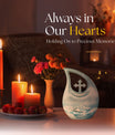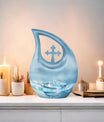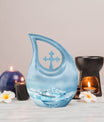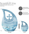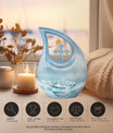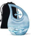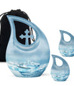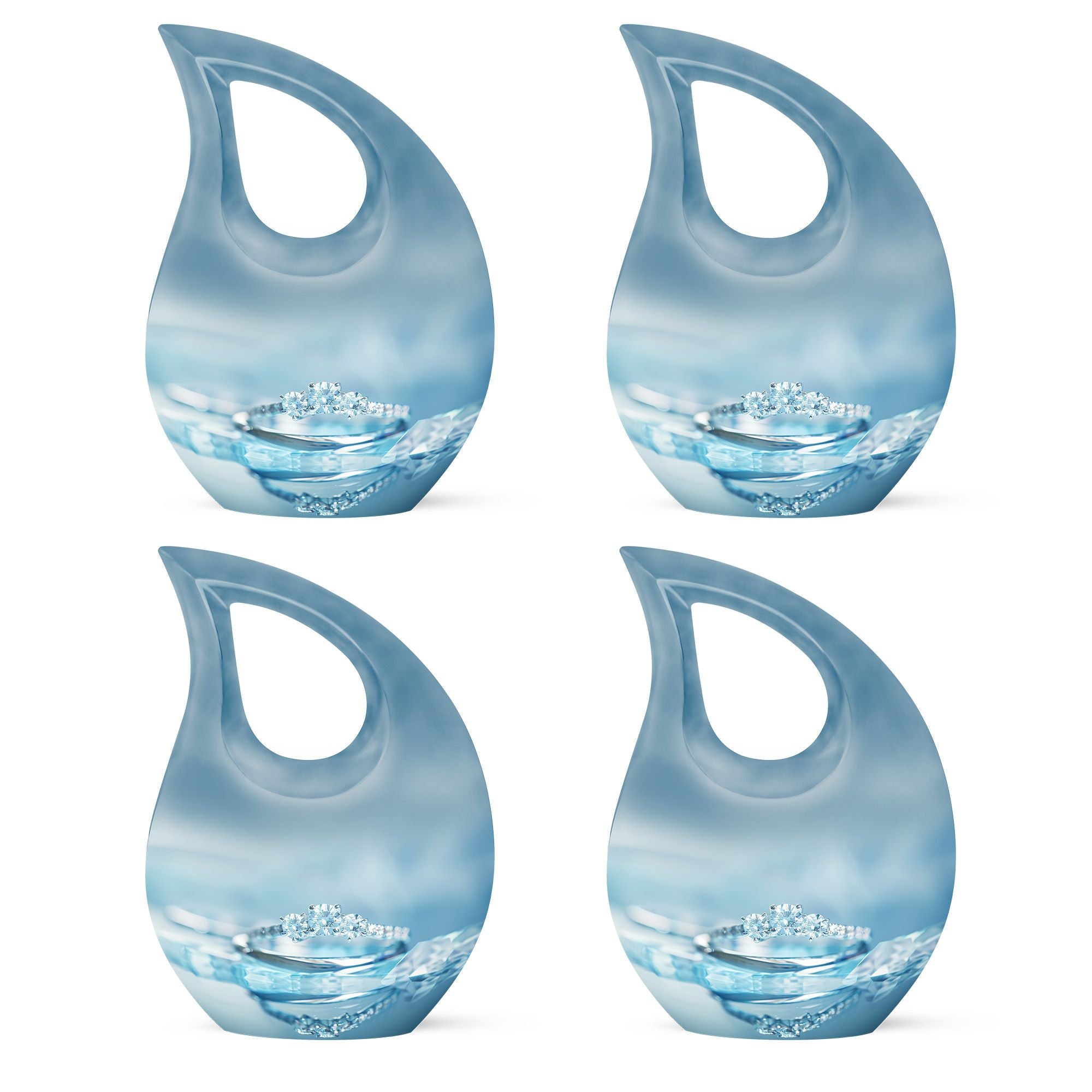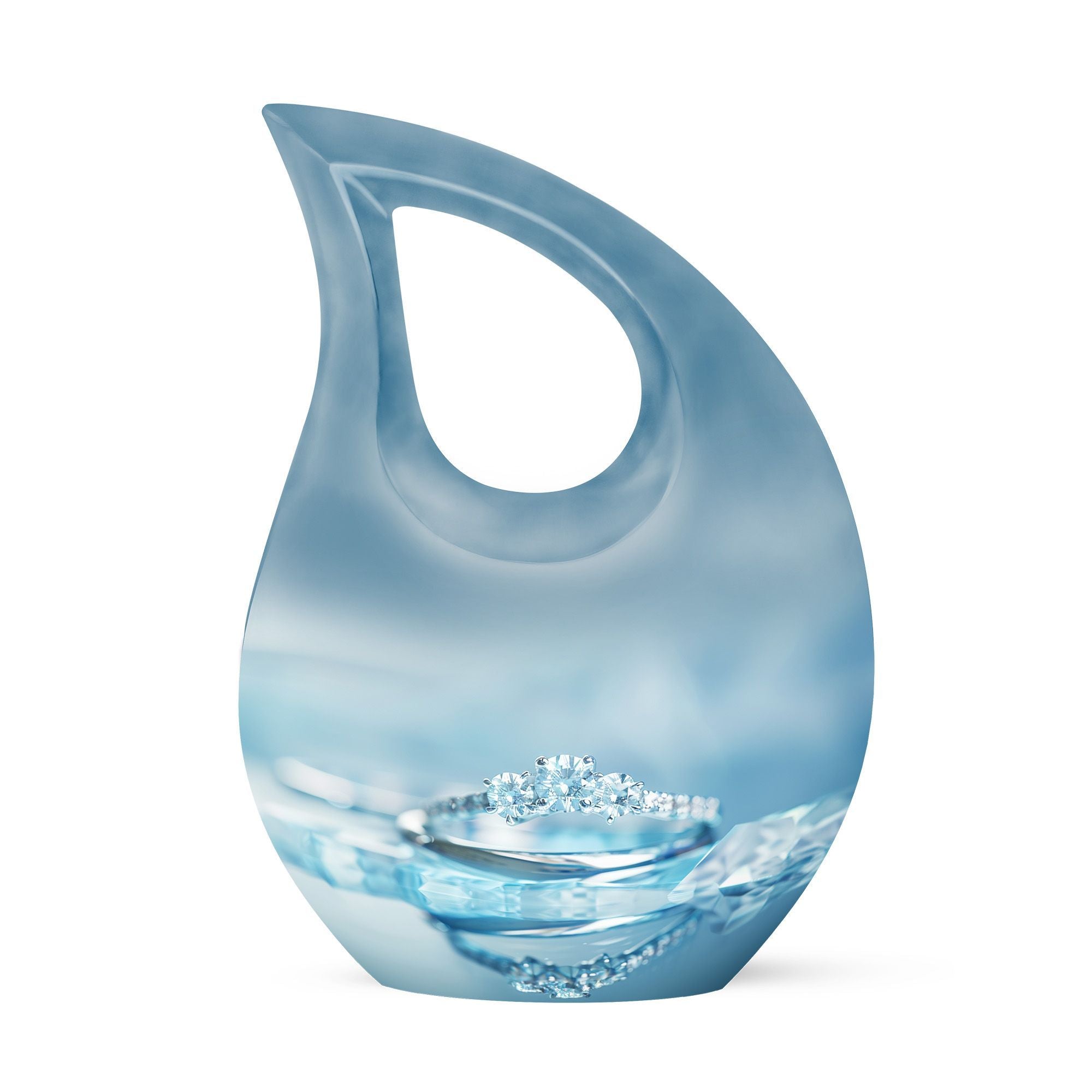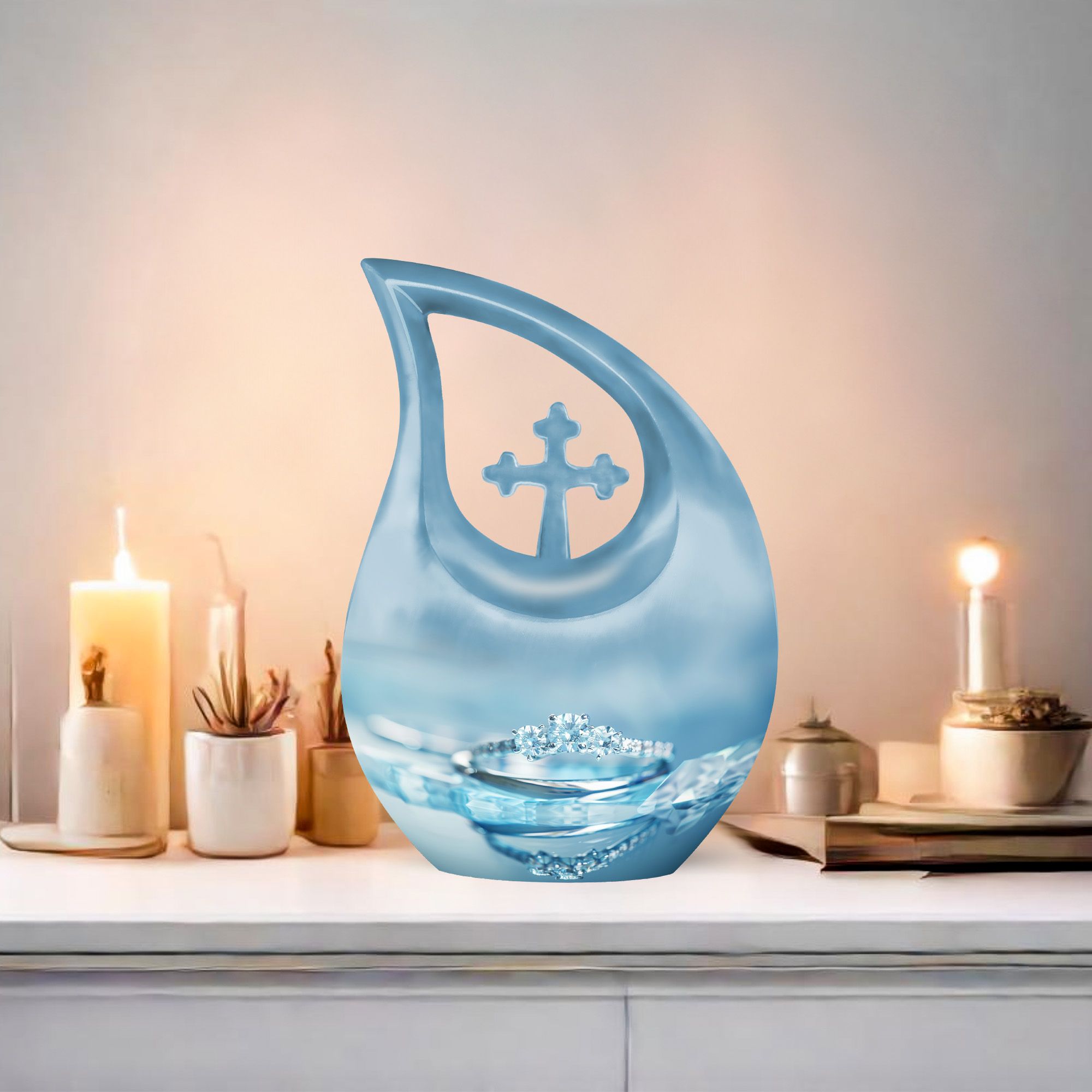 Presenting our treasured 10-inch Ring Urn, a vital choice for a precious remembrance. Distinguished from the common urns, this piece brings to light a unique 'Cross Drop' theme, illustrating a subtle connection between the worshipped realms. Cast from sturdy aluminium, this 'Large Urn' weighs 3.3 pounds, ensuring its durability and lastingness. Holding up to 200 cubic inches capacity, the urn accommodates ashes of adults keeping their spirit eternally alive. The package also includes a velvety pouch ideal for safeguarding the residual ashes. Further, we offer the option to customize this funeral urn by personalizing it with engraved names, giving a poignant touch to this memorial tribute. Ideal for a funeral ceremony of any faith, these urns seamlessly adapt to become miniature urns. So, remember your loved one with this exquisite Ring Urn, a class above the standard memorial urns.