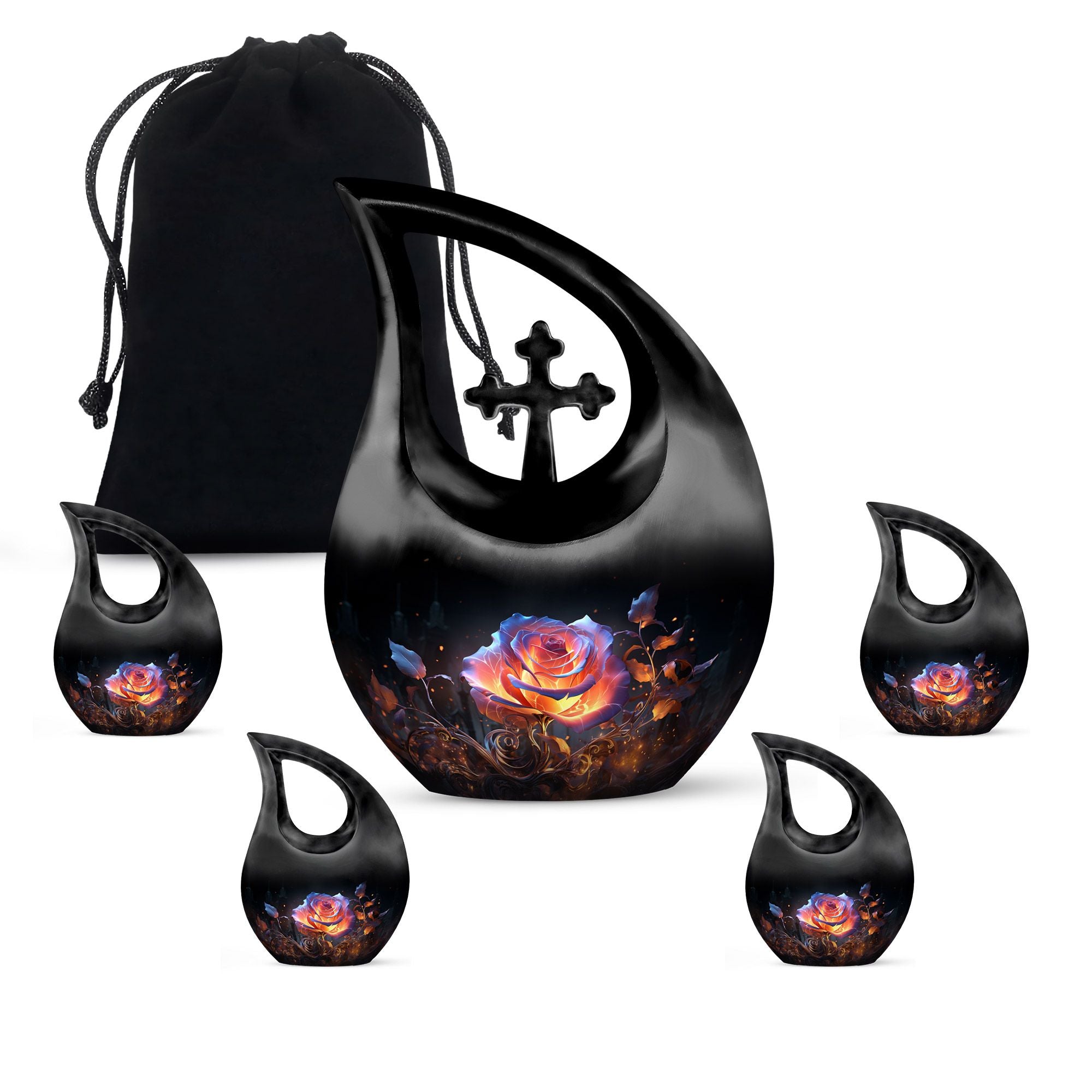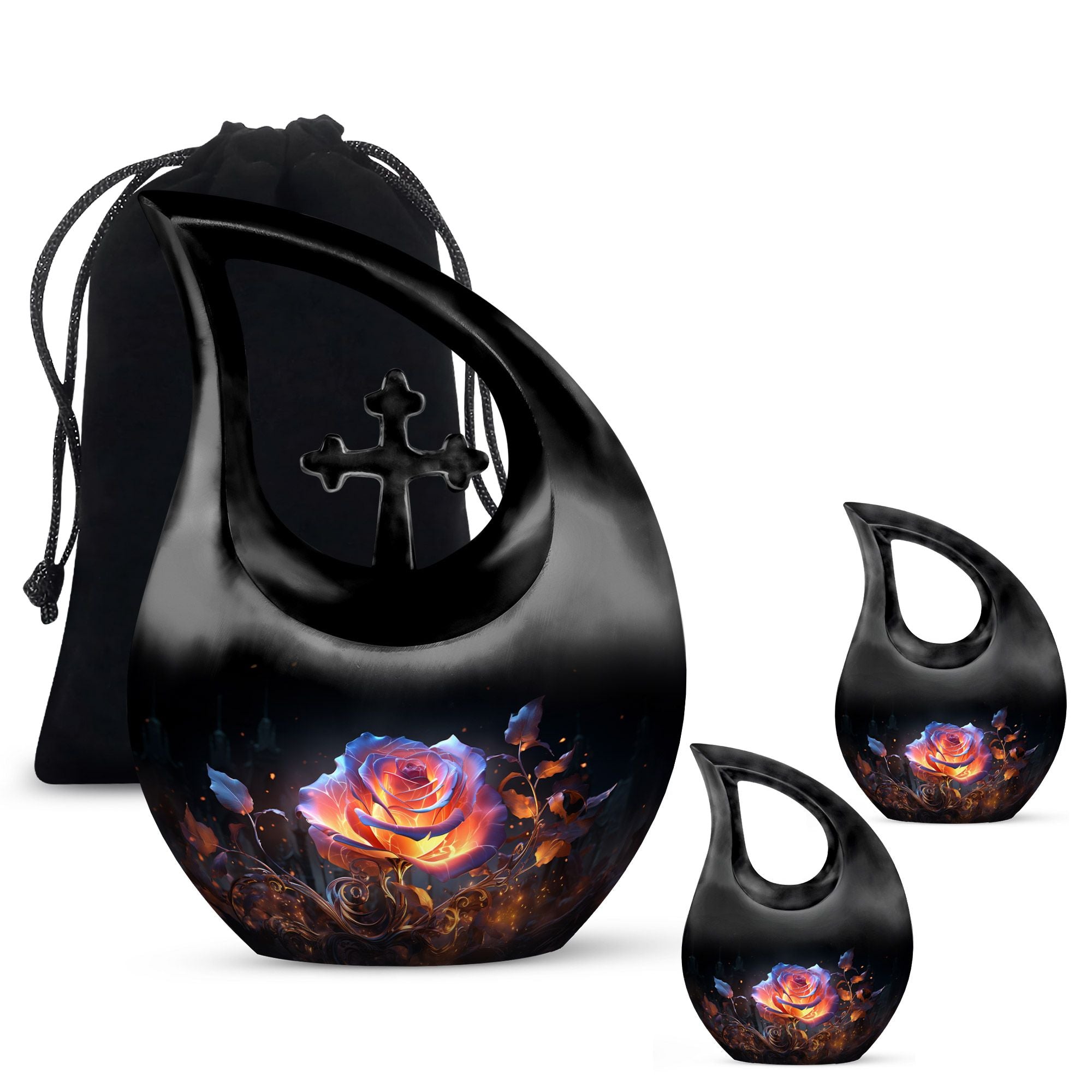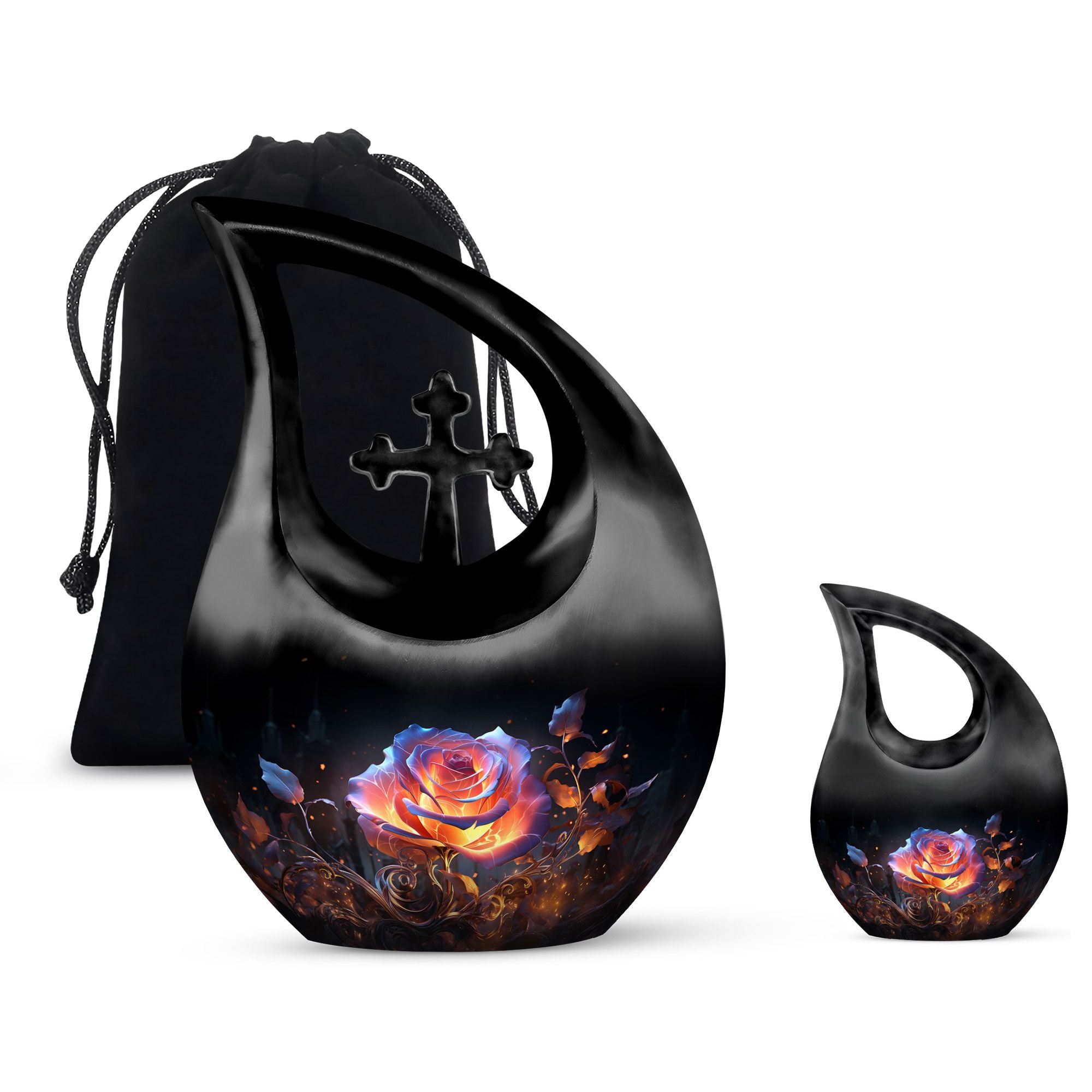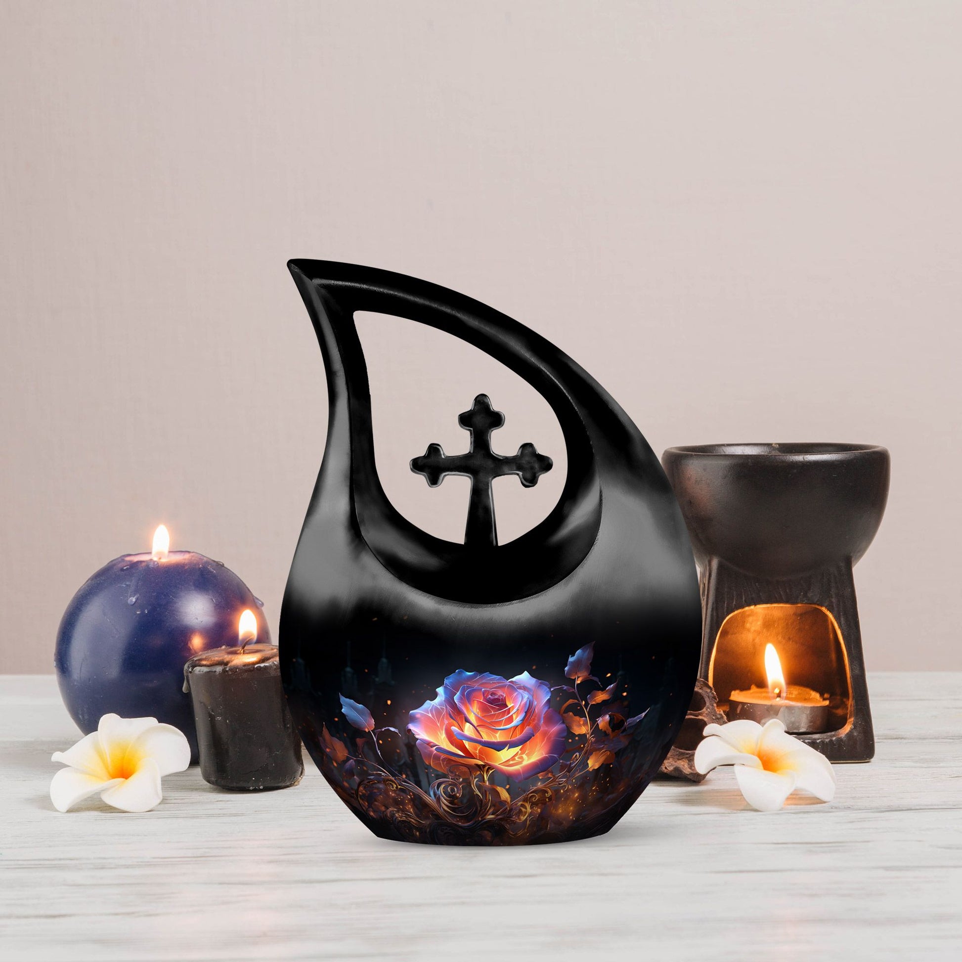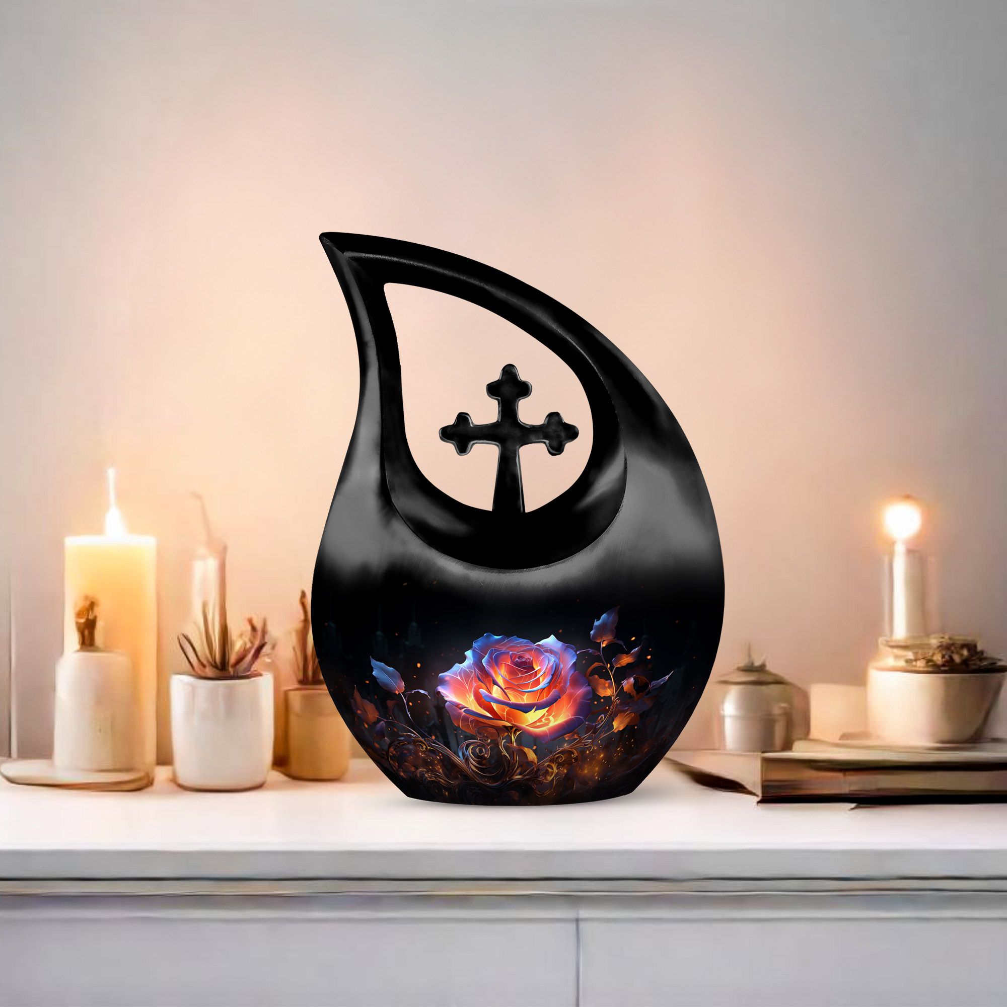 Celebrate the enduring spirit of a loved one with our Black Cremation Urn for Human Ashes. This elegant rose and cross memorial urn represents everlasting love, strength, and faith — making it a heartfelt tribute for both men and women. Thoughtfully designed, it serves as a dignified way to preserve and honor precious memories for generations.