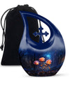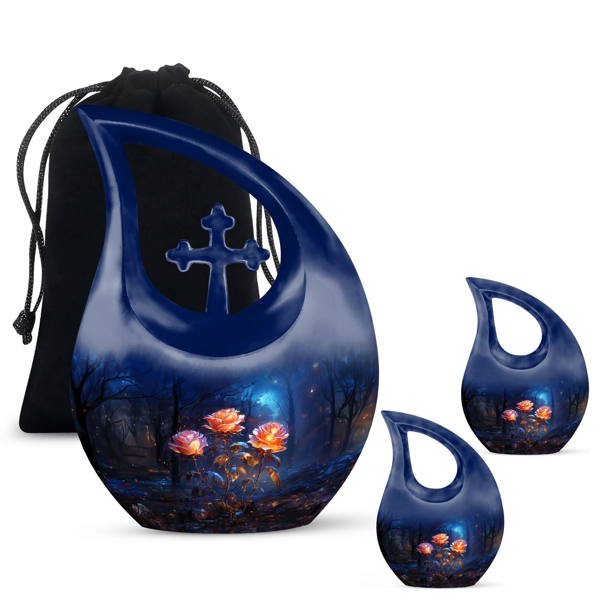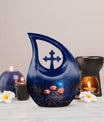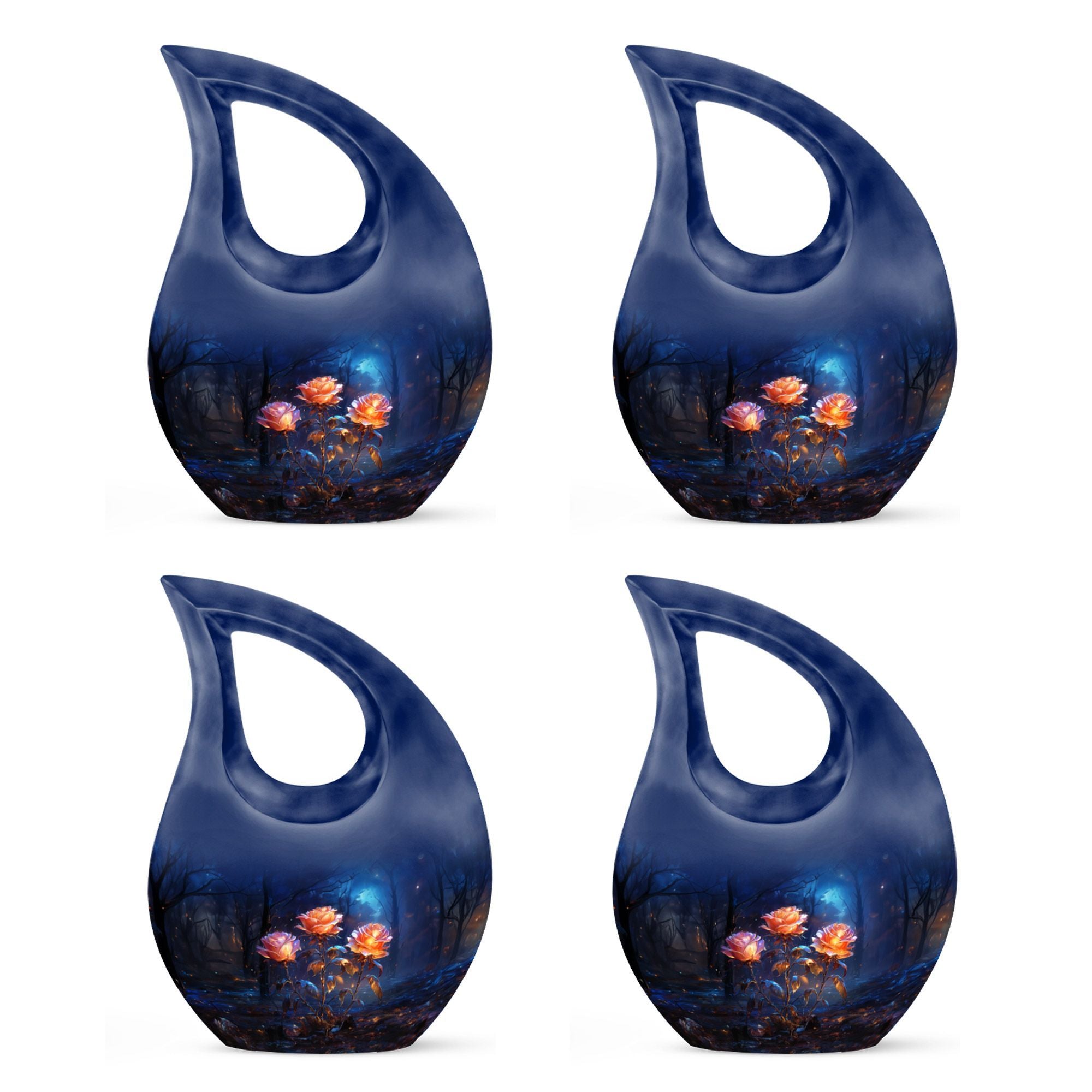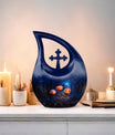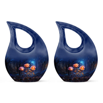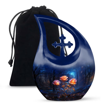 Expertly handcrafted from premium aluminum, this large cremation urn features a rich dark blue teardrop shape adorned with radiant glowing roses — a design that signifies eternal love and remembrance. Whether you’re honoring an urn large adult male or selecting a large urn for adult ashes, its combination of artistry and durability ensures it remains a lasting keepsake. This piece stands among the most refined adult urns for human ashes large, blending elegance with heartfelt symbolism.