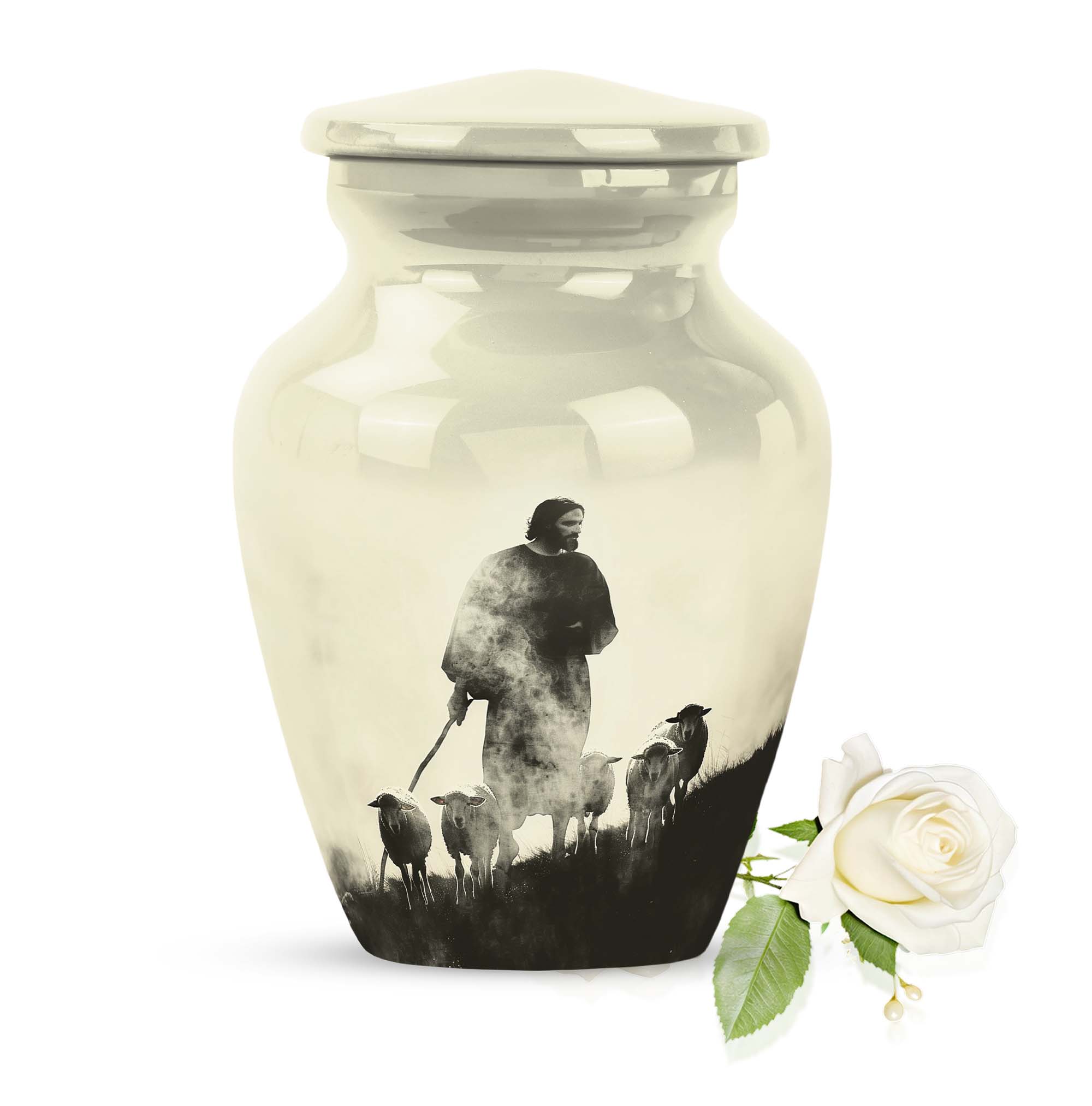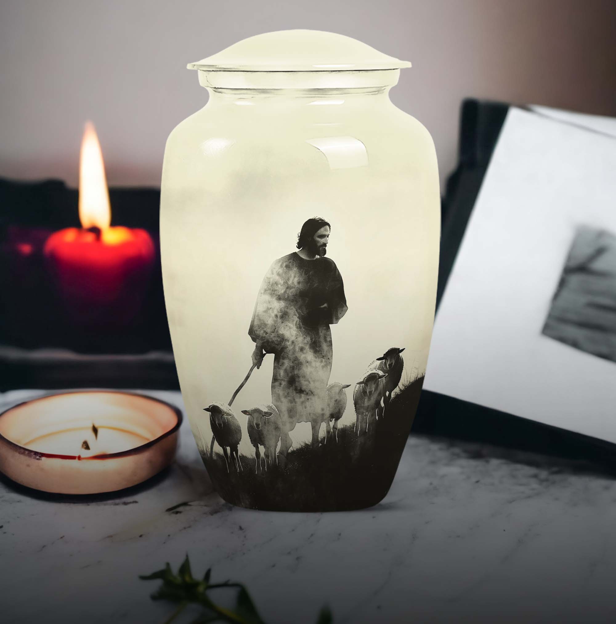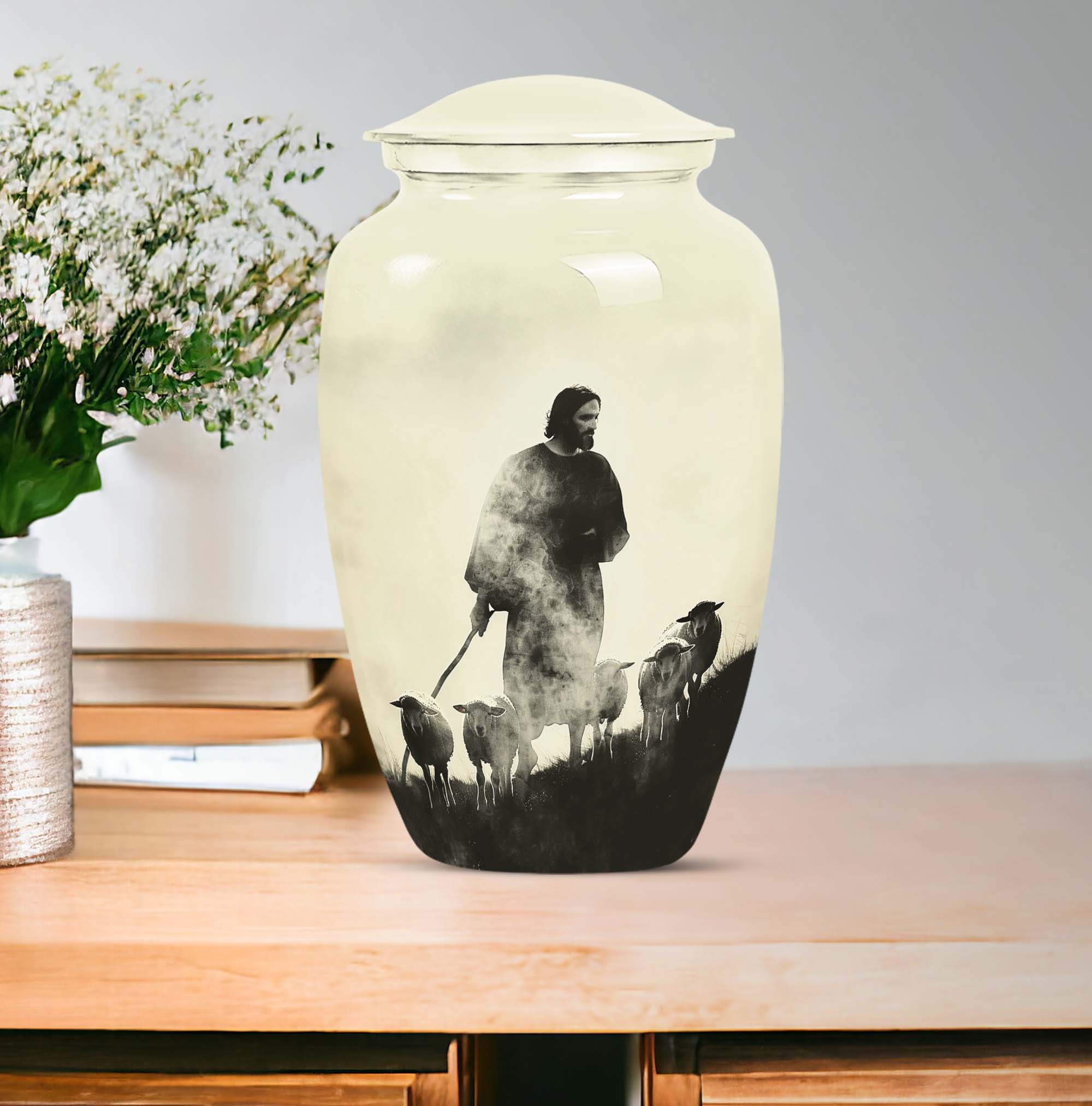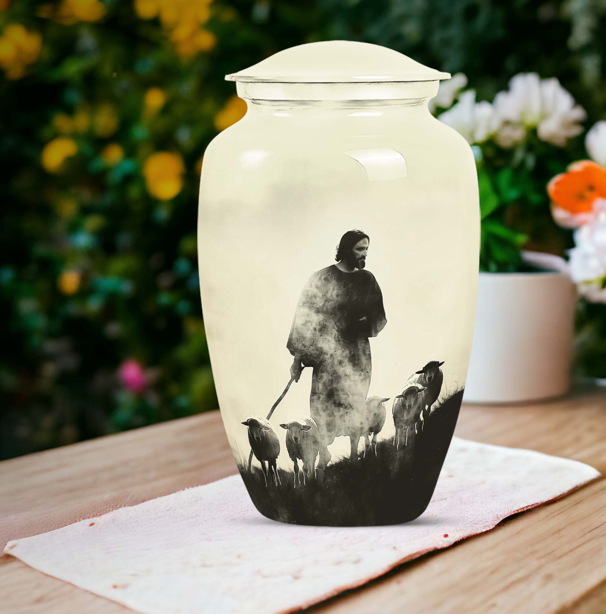 Paying tribute to the love shared with your dear departed is now more poignant with our Shepherd Urn, a large and sturdy resting place for the ashes of a beloved adult female. Crafted in high-quality Aluminium, this memorial urn weighs a solid 3.3 pounds and stands majestically at 10 inches high, and handles large ashes up to 200 cubic inches. Its abstract theme adds a touch of subtly artistic and classic grace to any room where it may be displayed. For a more personal touch, this urn can be customized with engraved names, adding another layer of sincerity to your remembrance. The urn comes with a velvet pouch, perfect for the safe containment of precious remains. Suitable not only as a cremation urn but also as a unique shaped jar. This tasteful and timeless piece is more than a memorial urn, it's a testament to unconditional love and fond memories. Don't just remember your loved ones - cherish them, with our Shepherd Urn.