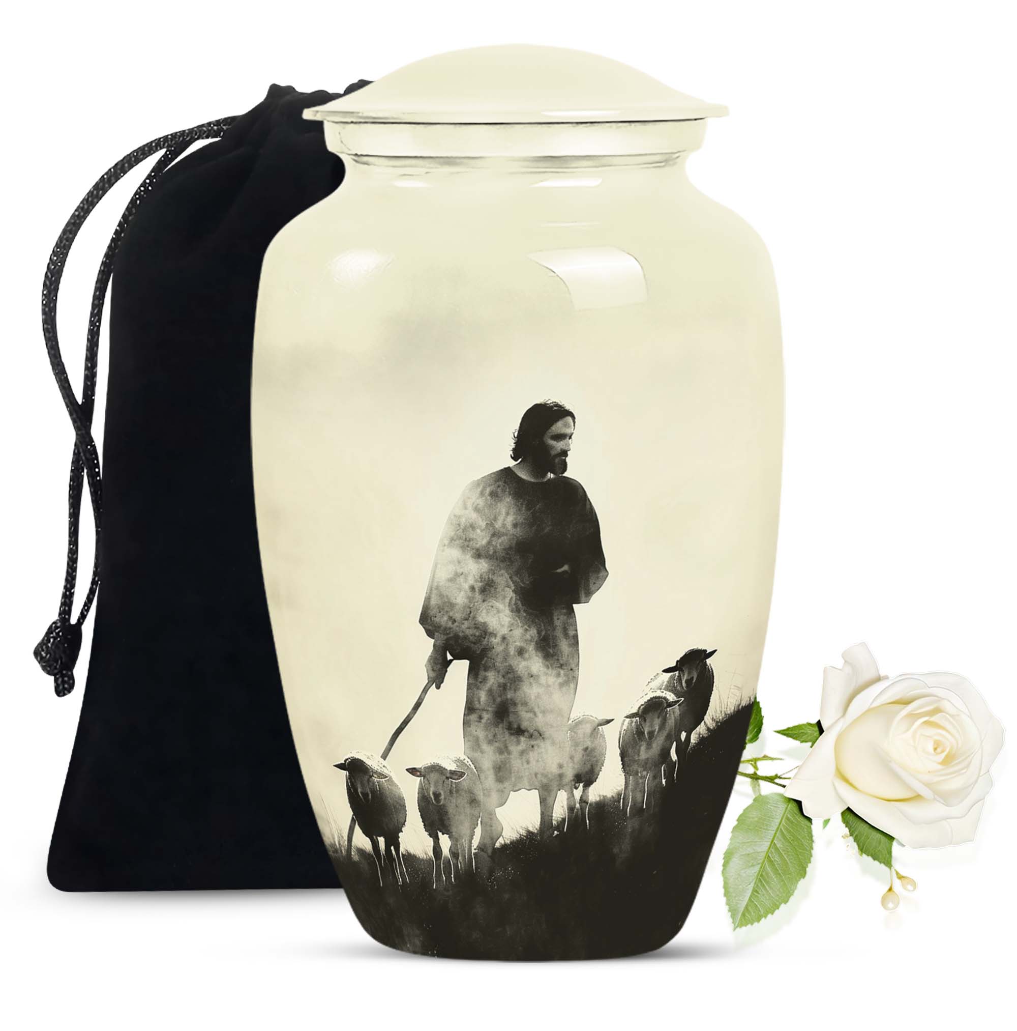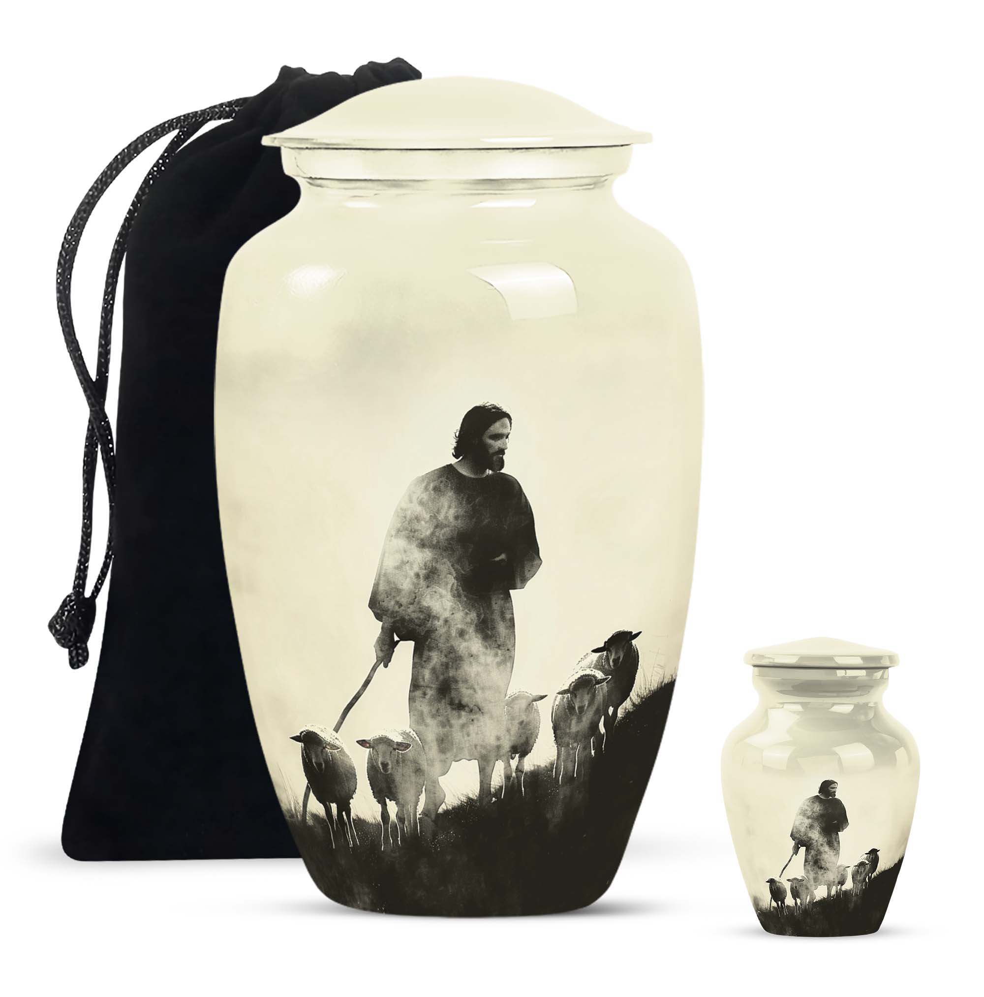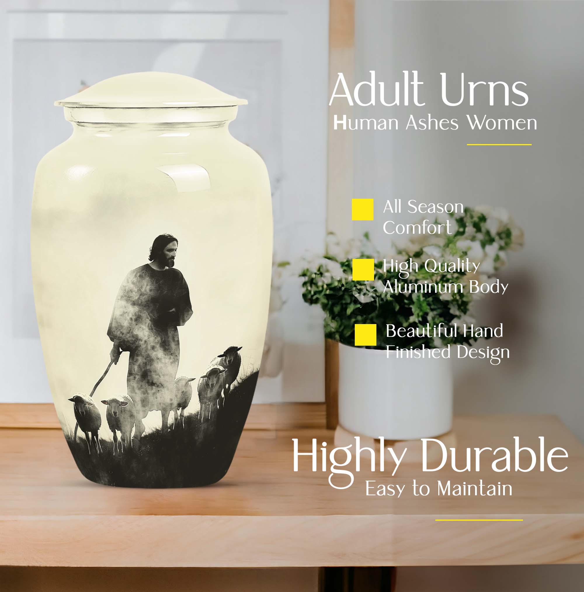 Paying tribute to the love shared with your dear departed is now more poignant with our Shepherd Urn, a large and sturdy resting place for the ashes of a beloved adult female. Crafted in high-quality Aluminium, this memorial urn weighs a solid 3.3 pounds and stands majestically at 10 inches high, and handles large ashes up to 200 cubic inches. Its abstract theme adds a touch of subtly artistic and classic grace to any room where it may be displayed. For a more personal touch, this urn can be customized with engraved names, adding another layer of sincerity to your remembrance. The urn comes with a velvet pouch, perfect for the safe containment of precious remains. Suitable not only as a cremation urn but also as a unique shaped jar. This tasteful and timeless piece is more than a memorial urn, it's a testament to unconditional love and fond memories. Don't just remember your loved ones - cherish them, with our Shepherd Urn.