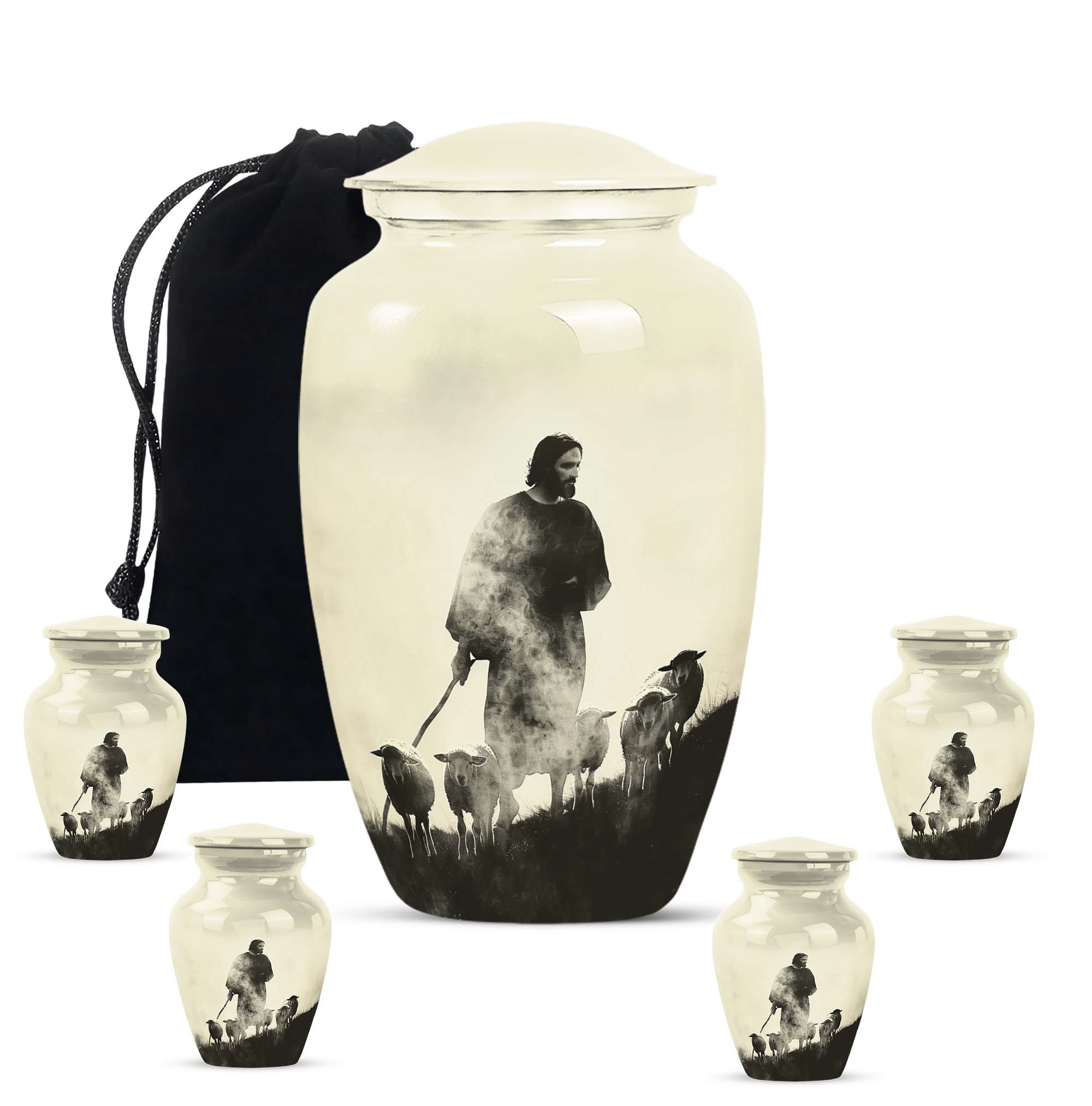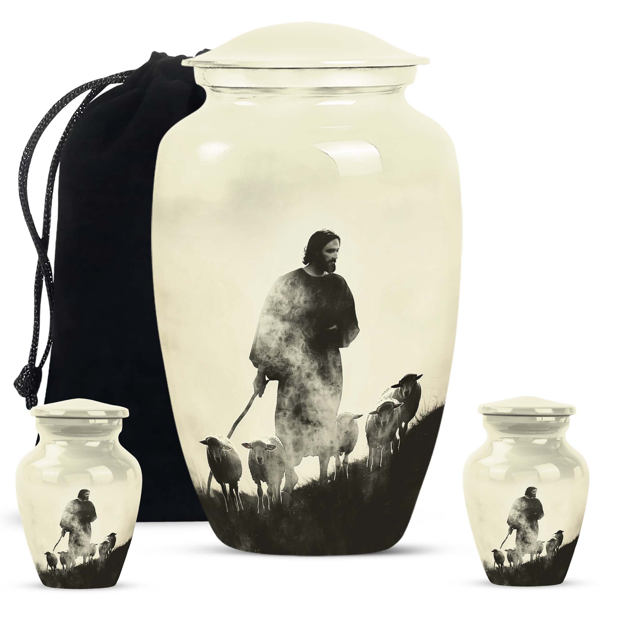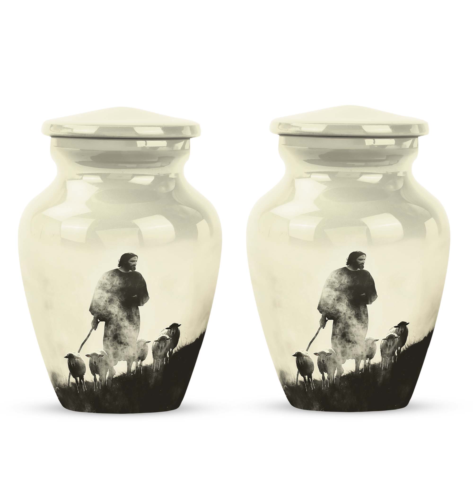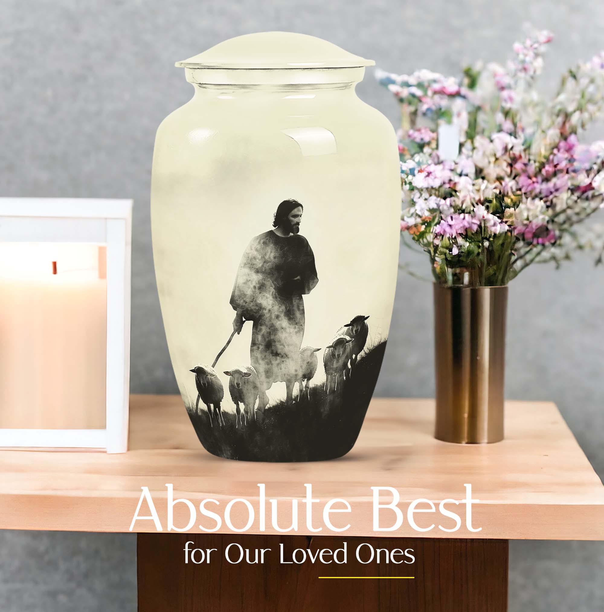 Paying tribute to the love shared with your dear departed is now more poignant with our Shepherd Urn, a large and sturdy resting place for the ashes of a beloved adult female. Crafted in high-quality Aluminium, this memorial urn weighs a solid 3.3 pounds and stands majestically at 10 inches high, and handles large ashes up to 200 cubic inches. Its abstract theme adds a touch of subtly artistic and classic grace to any room where it may be displayed. For a more personal touch, this urn can be customized with engraved names, adding another layer of sincerity to your remembrance. The urn comes with a velvet pouch, perfect for the safe containment of precious remains. Suitable not only as a cremation urn but also as a unique shaped jar. This tasteful and timeless piece is more than a memorial urn, it's a testament to unconditional love and fond memories. Don't just remember your loved ones - cherish them, with our Shepherd Urn.