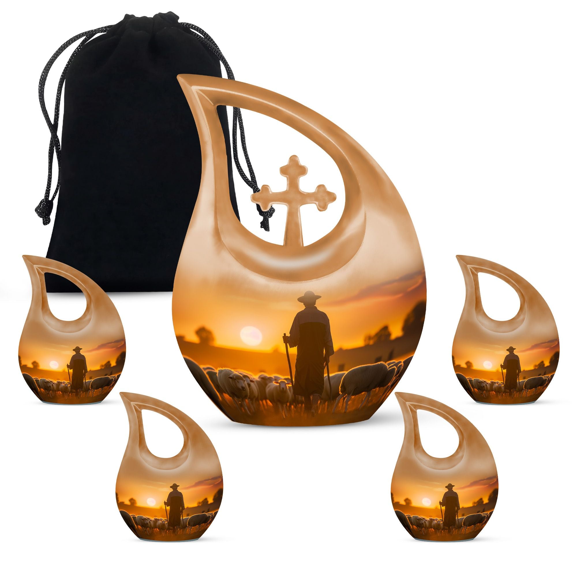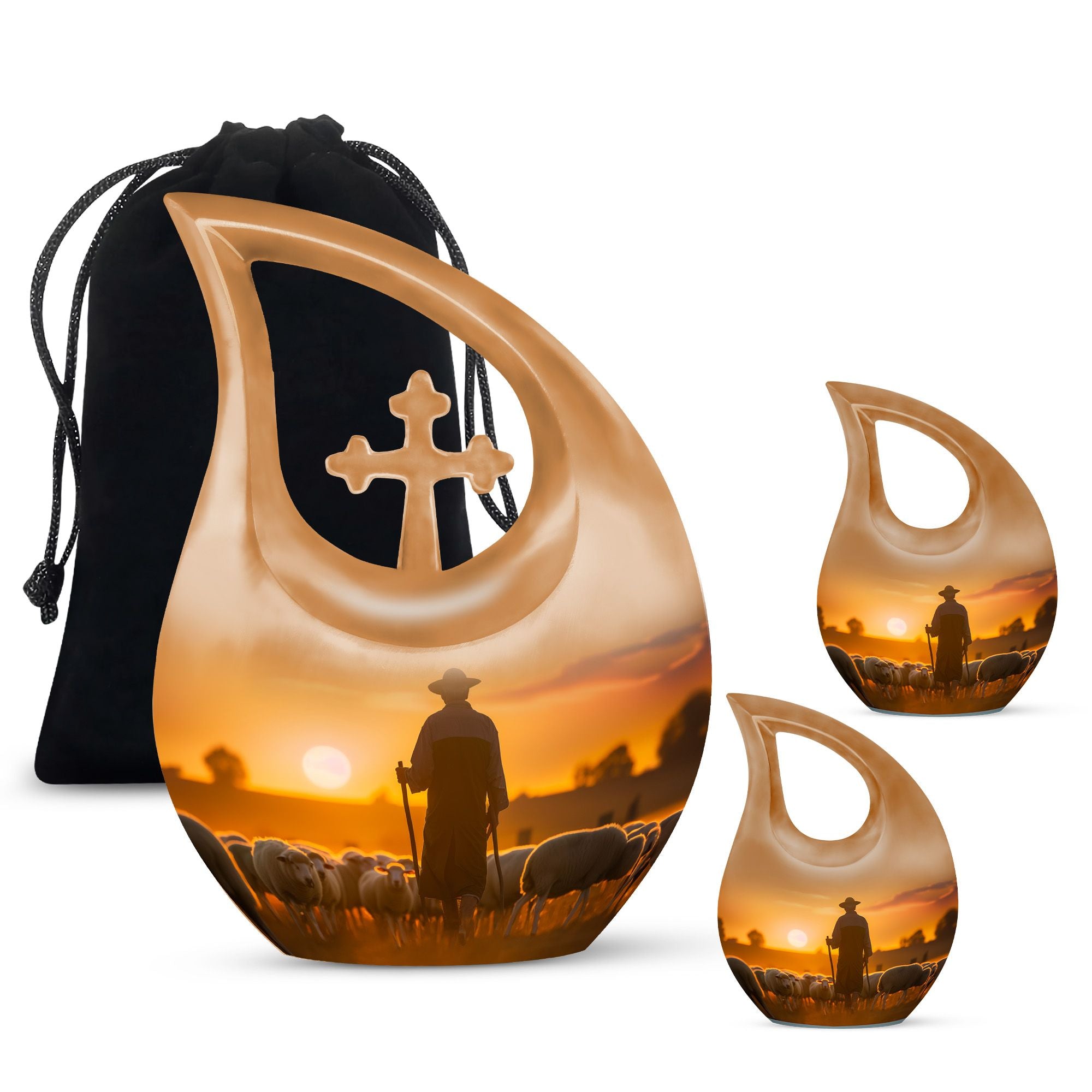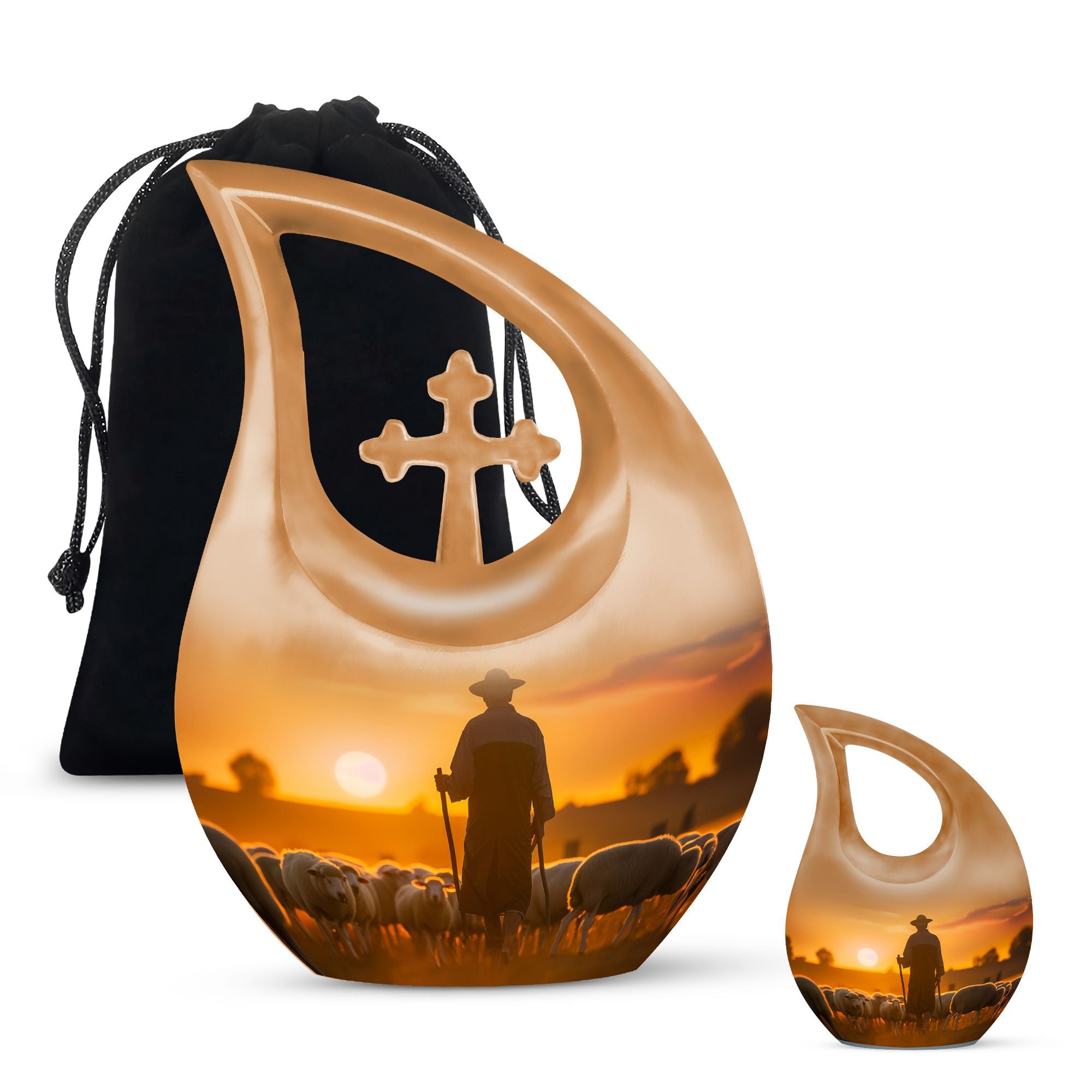 The Shepherd Burial Urn is a tender and comforting tribute, created to honor the loving memory of Mom, Dad, or any cherished family member. Its peaceful artwork symbolizes guidance, protection, and eternal rest—making it a meaningful choice for families seeking a small ashes keepsake or heartfelt small memorial urns to hold a portion of their loved one’s remains.