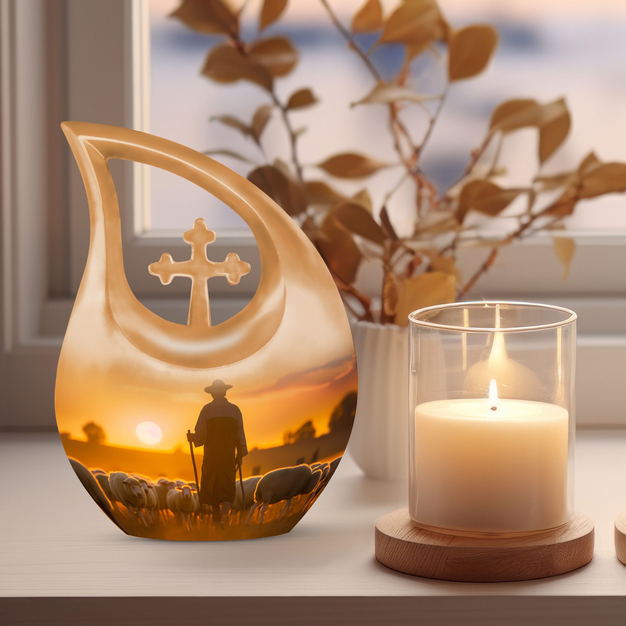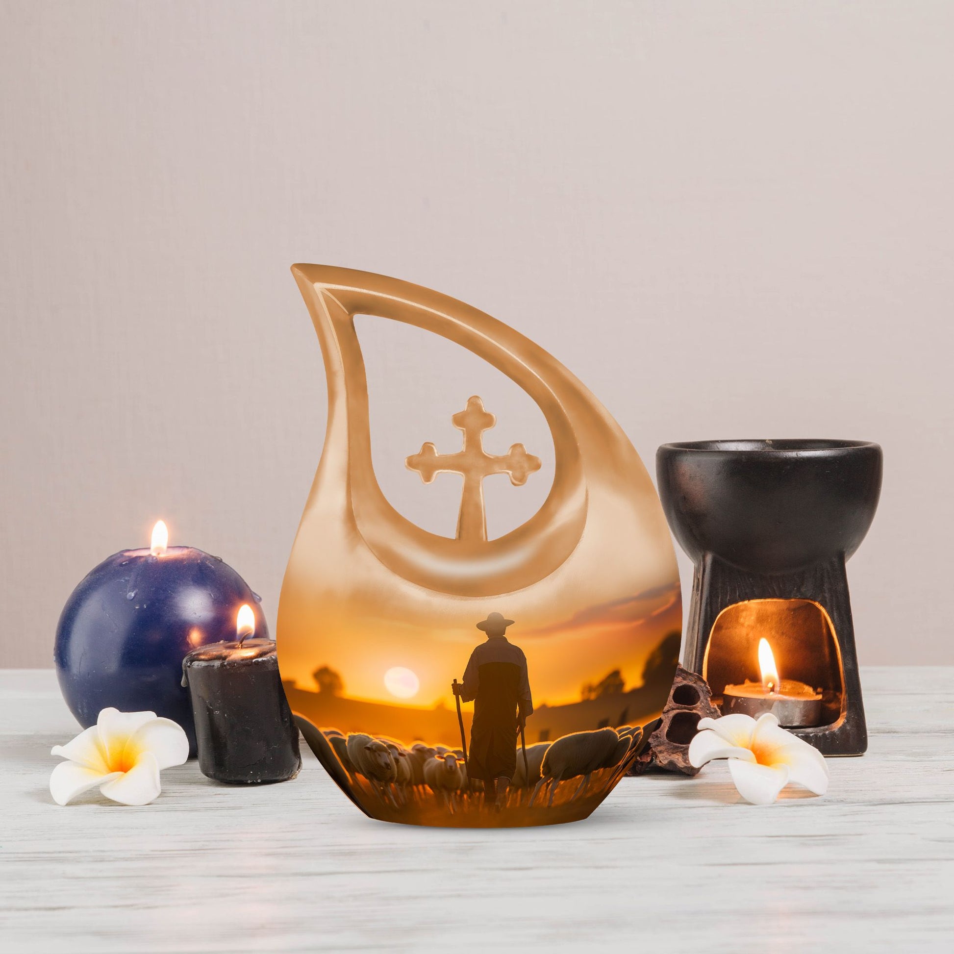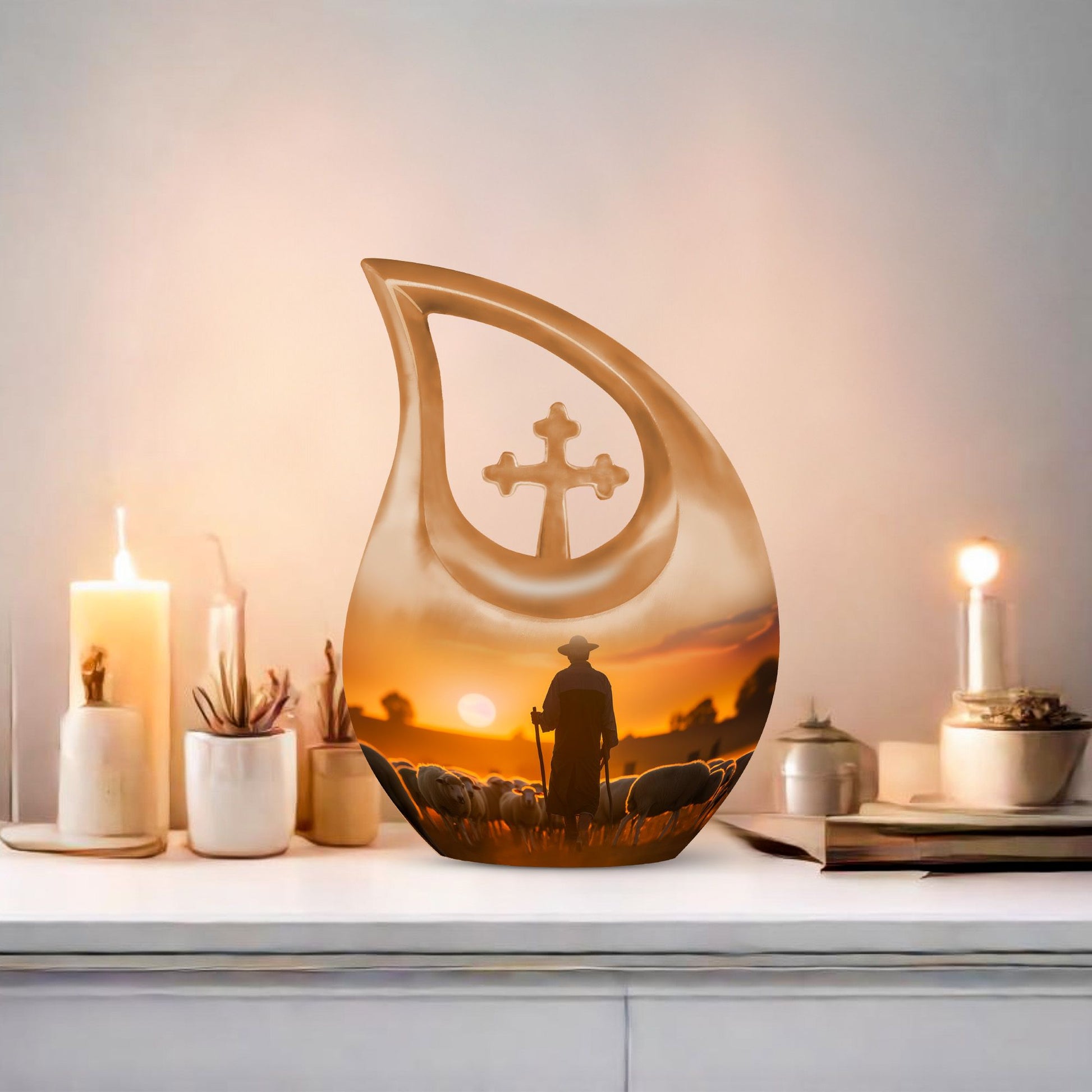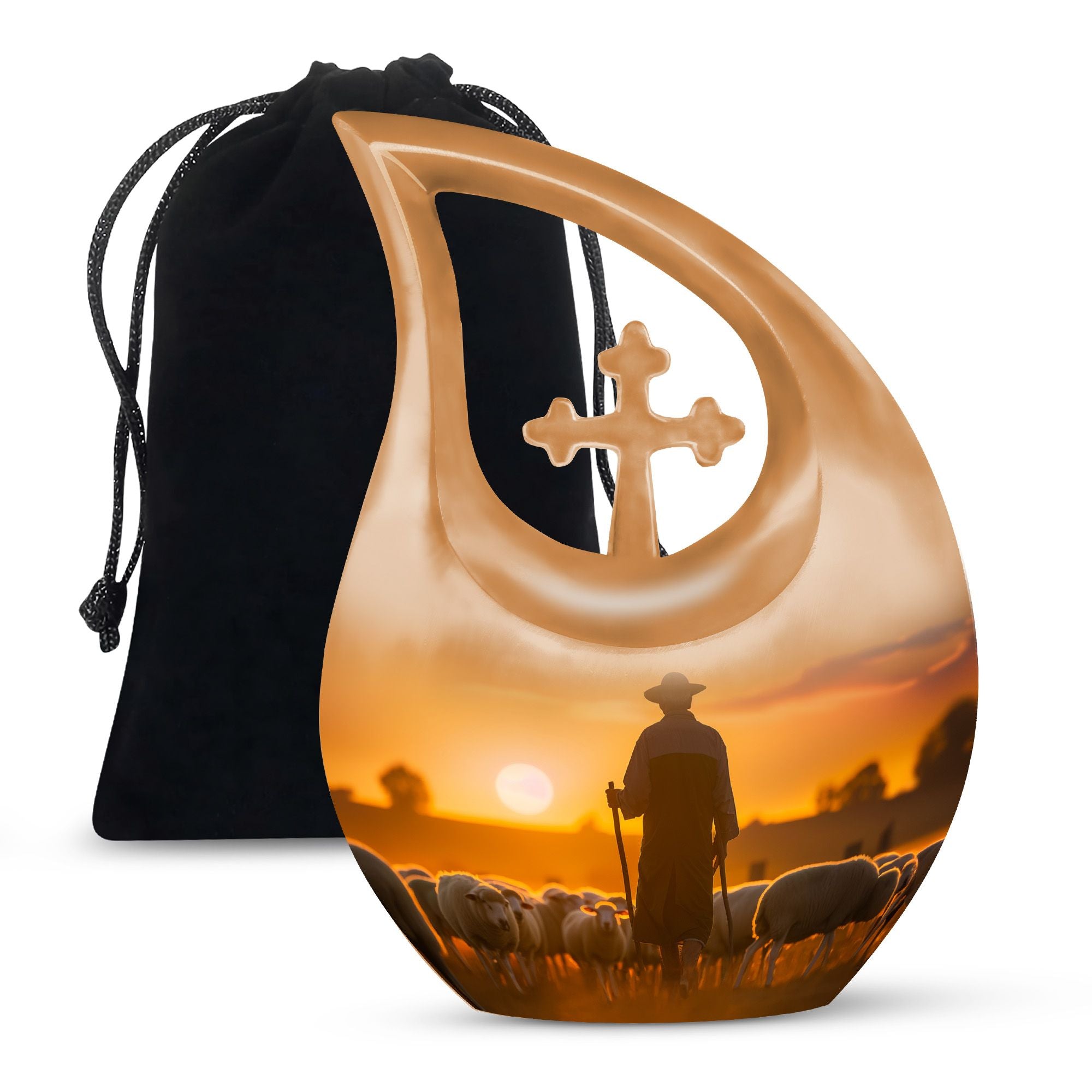 The Shepherd Burial Urn is a tender and comforting tribute, created to honor the loving memory of Mom, Dad, or any cherished family member. Its peaceful artwork symbolizes guidance, protection, and eternal rest—making it a meaningful choice for families seeking a small ashes keepsake or heartfelt small memorial urns to hold a portion of their loved one’s remains.