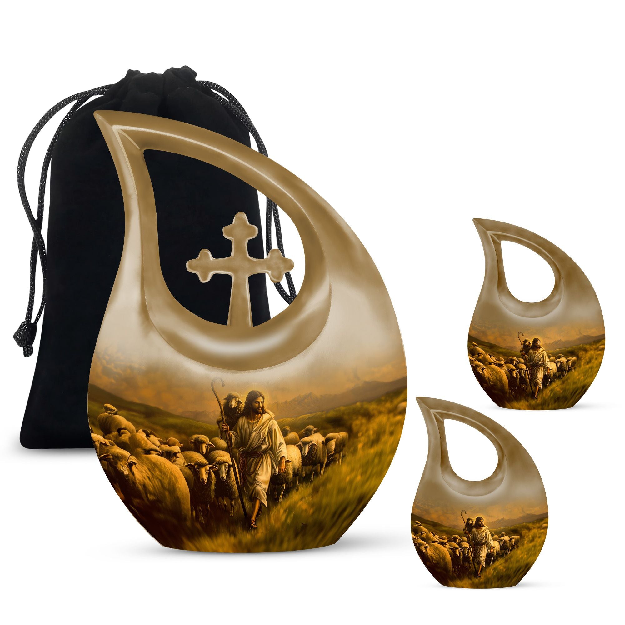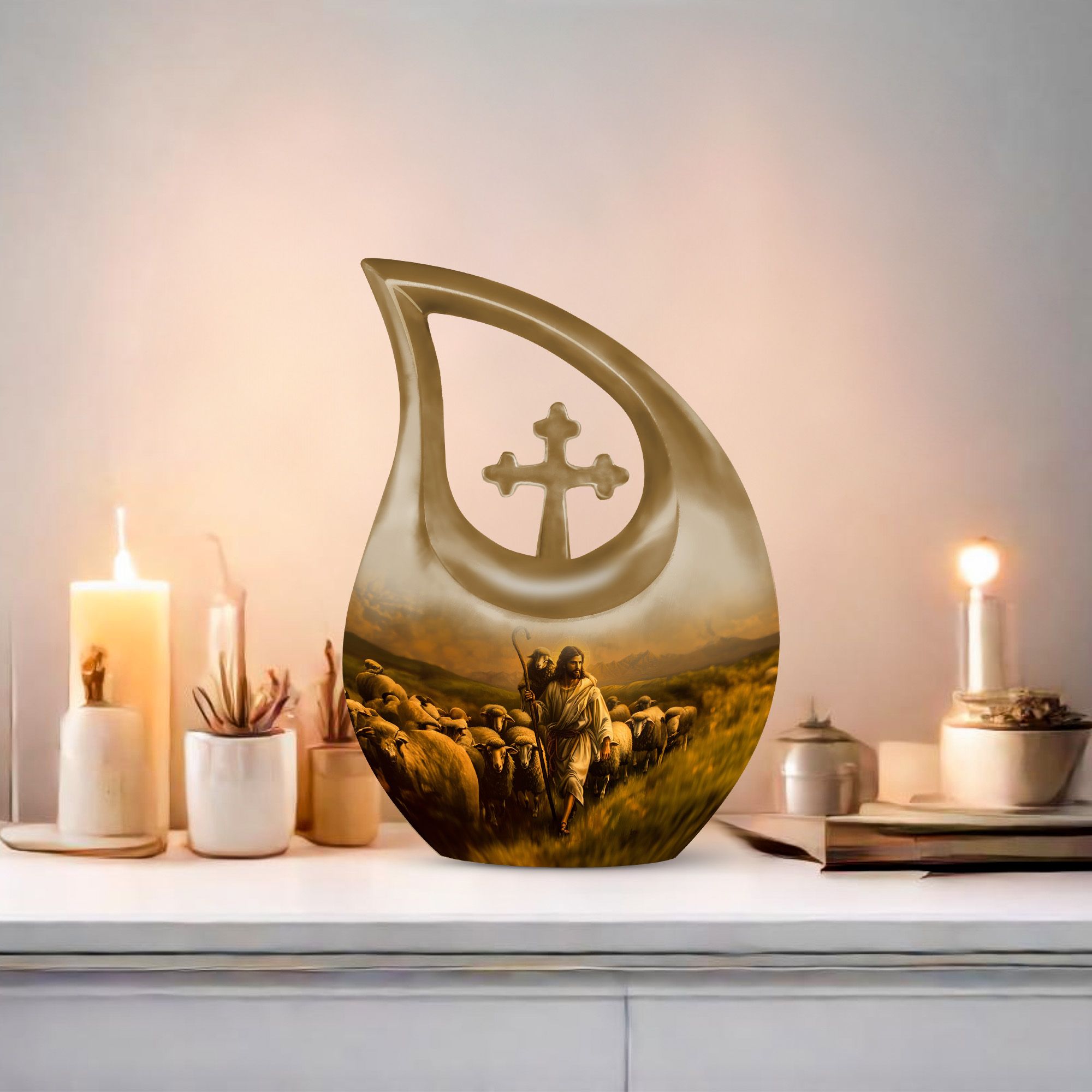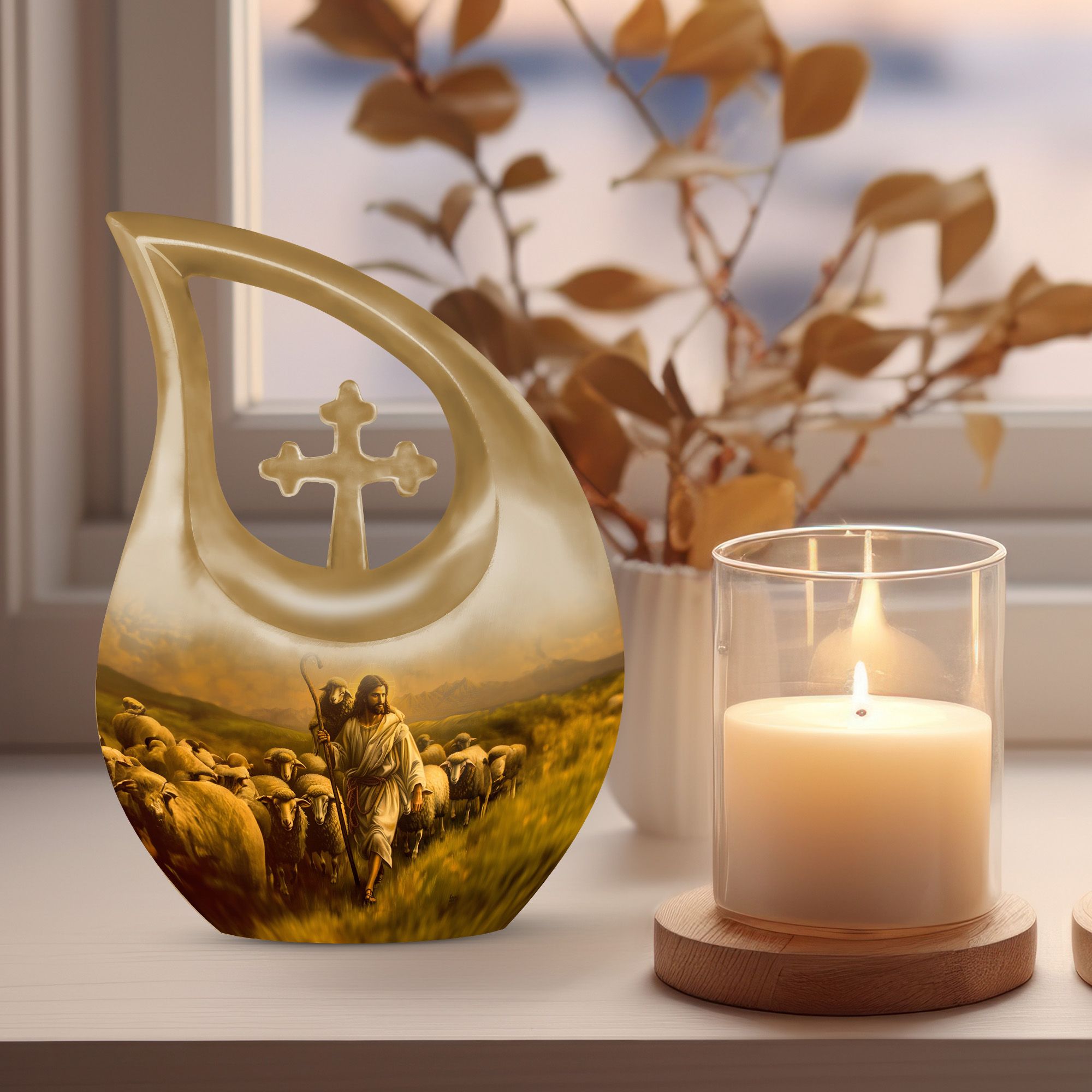 The Shepherd Memorial Urn is a heartfelt tribute crafted to honor the memory of someone deeply cherished. Designed with comforting pastoral artwork, this small memorial piece offers families a peaceful way to preserve ashes, whether they need an urn for human ashes for men or an urn for adult female ashes with timeless elegance.