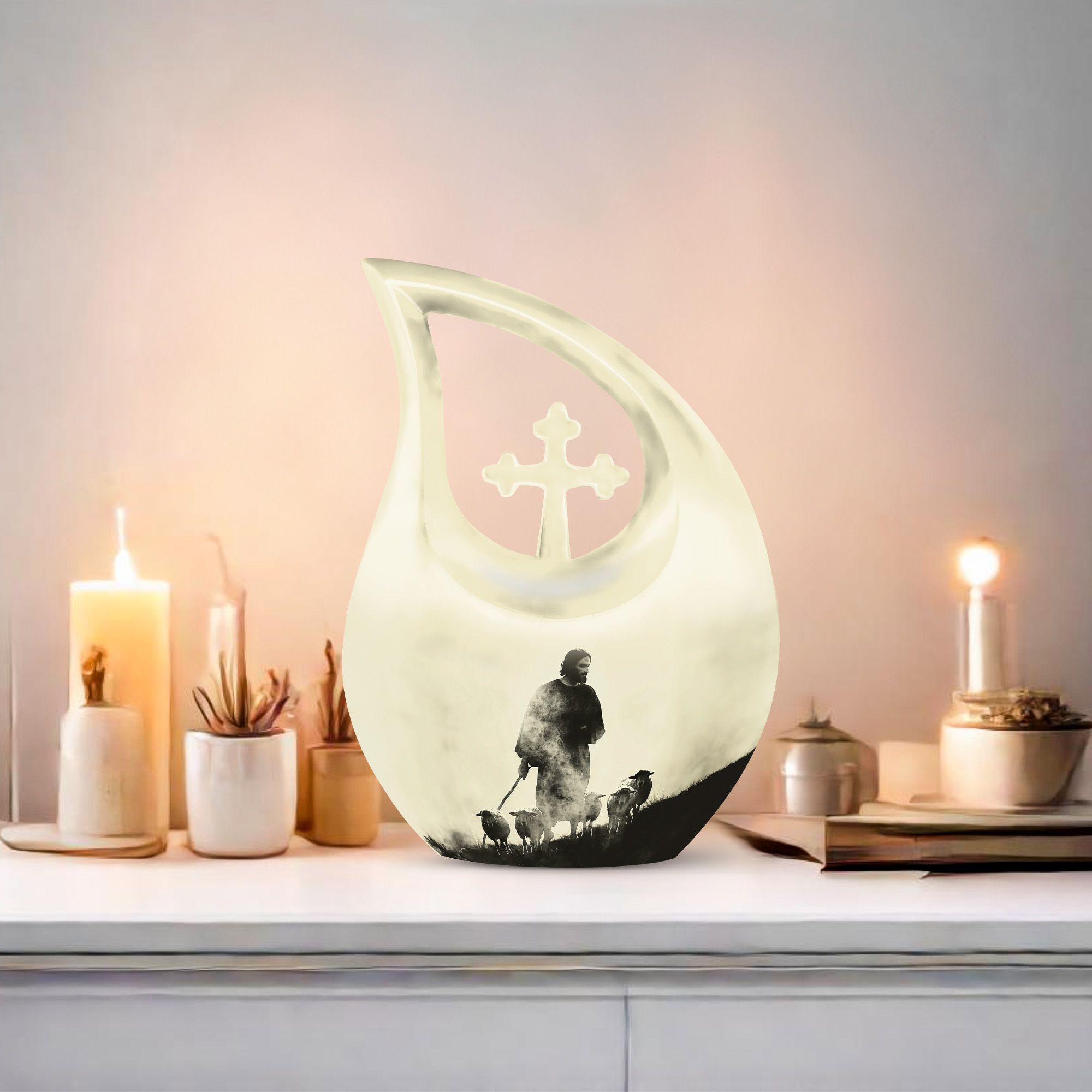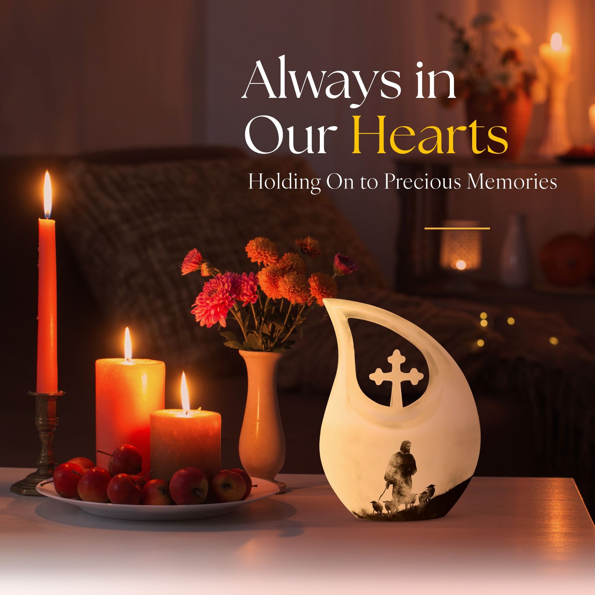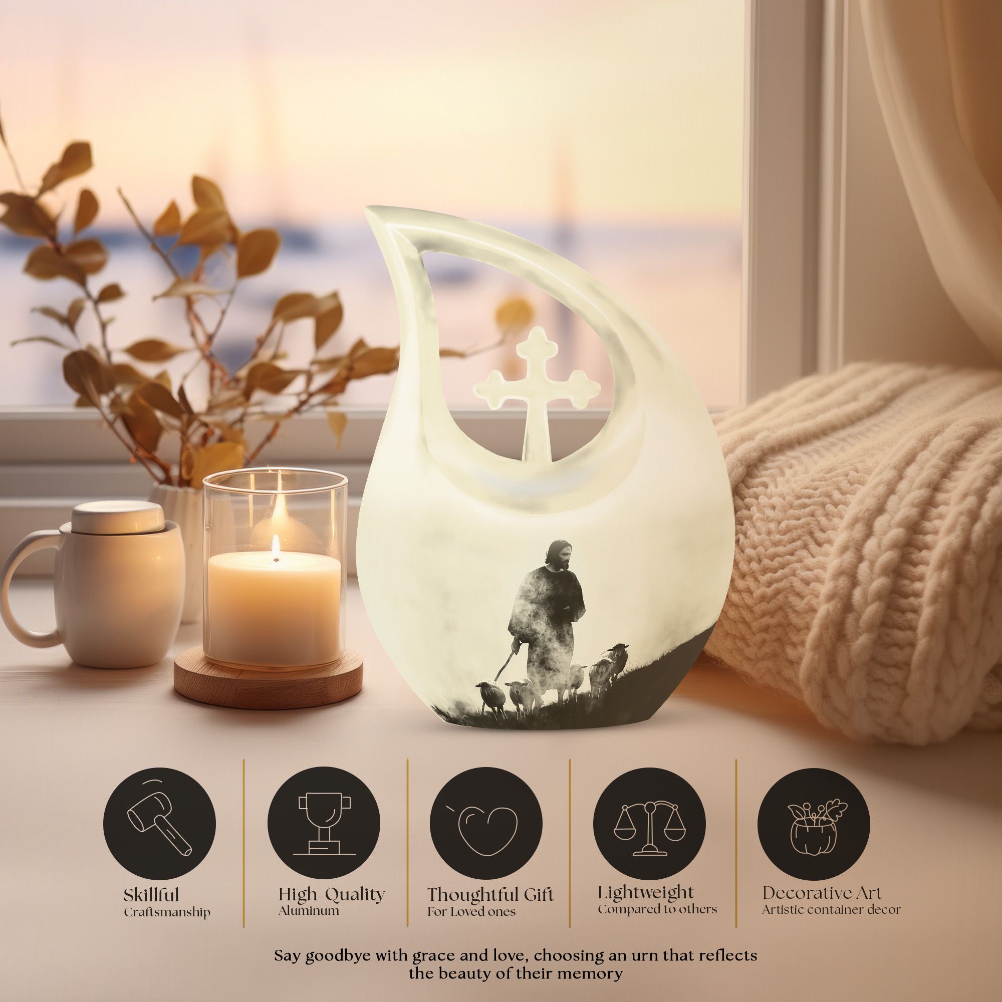 The Shepherd Cremation Urn offers a peaceful and faith-inspired tribute, symbolizing guidance, compassion, and eternal rest. Designed to honor the memory of a cherished loved one, it provides comfort for families seeking a heartfelt urn for ashes for women, cremation urns for men, or a meaningful, beautifully crafted memorial.