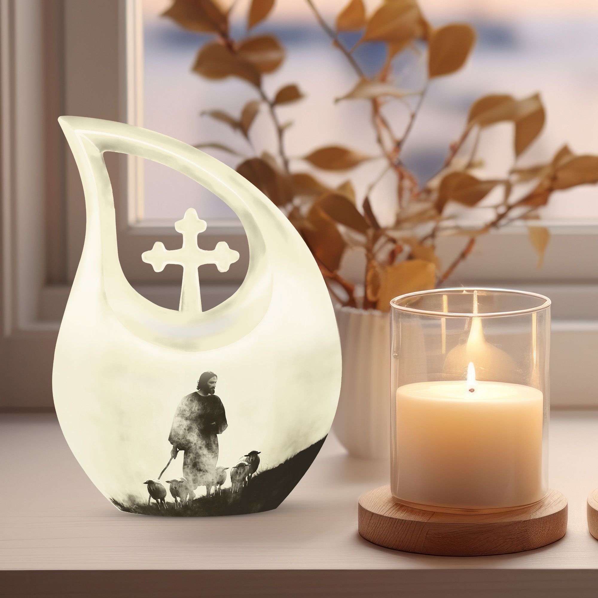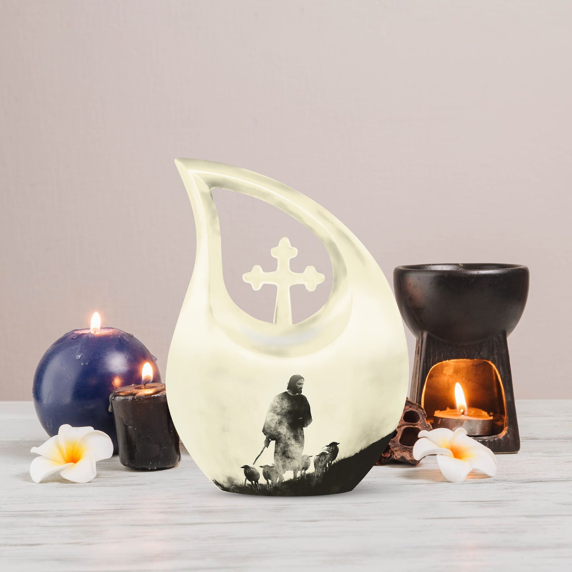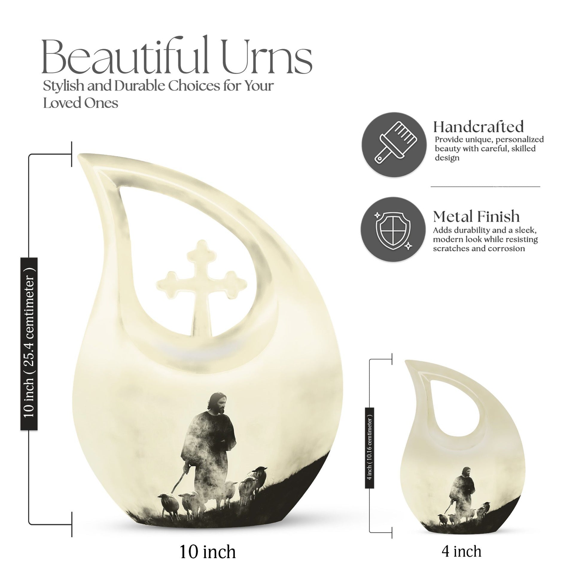 The Shepherd Cremation Urn offers a peaceful and faith-inspired tribute, symbolizing guidance, compassion, and eternal rest. Designed to honor the memory of a cherished loved one, it provides comfort for families seeking a heartfelt urn for ashes for women, cremation urns for men, or a meaningful, beautifully crafted memorial.