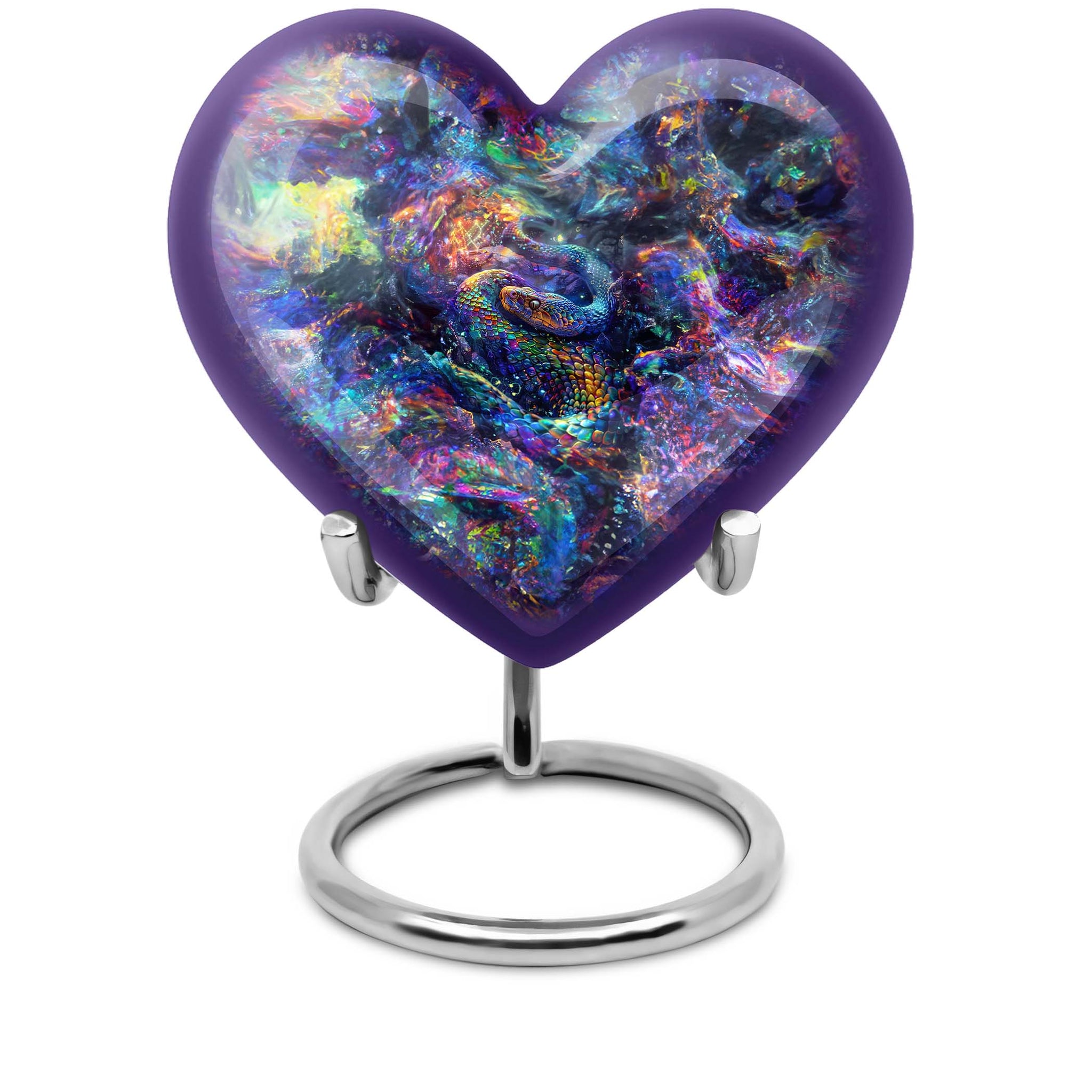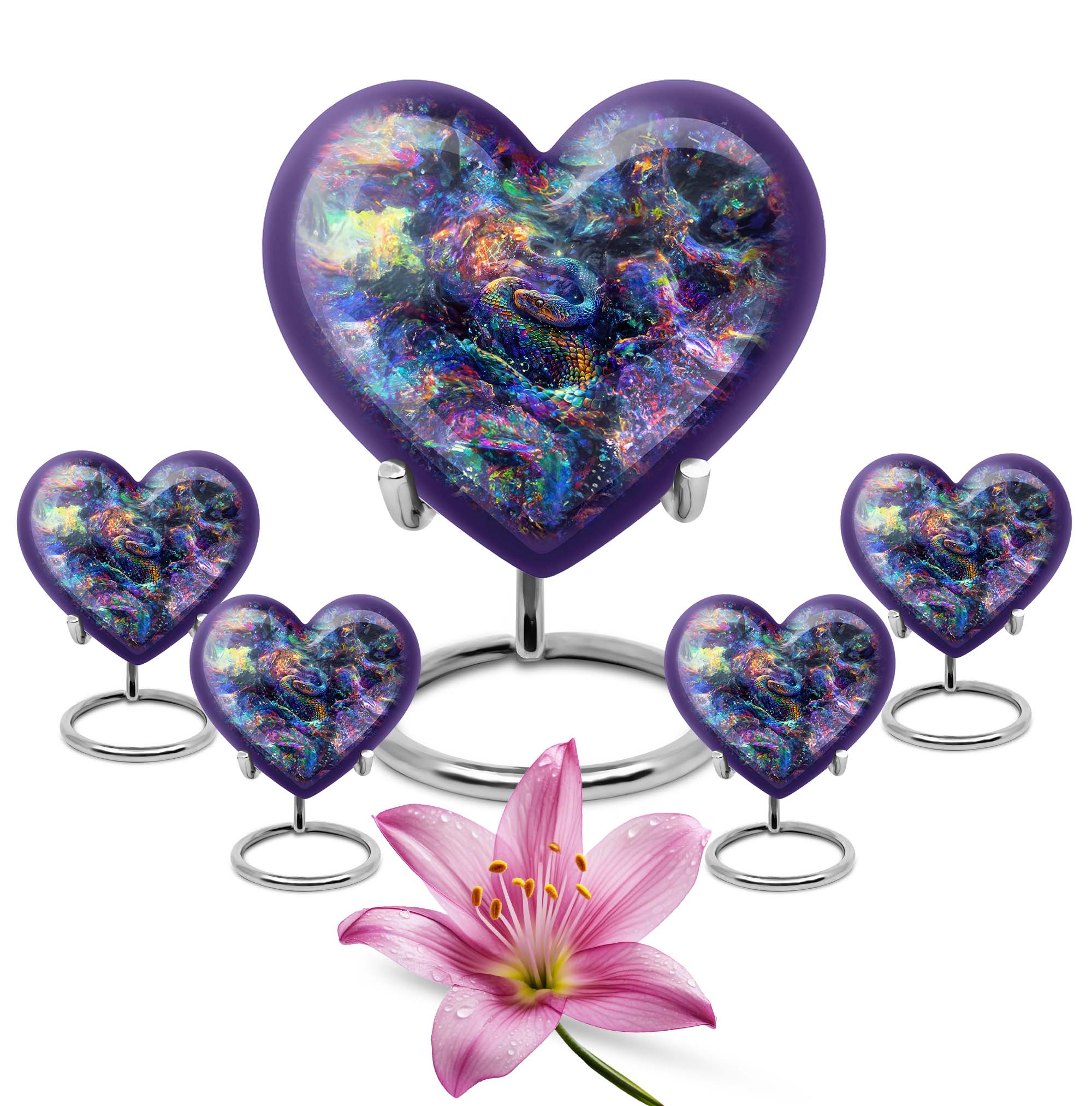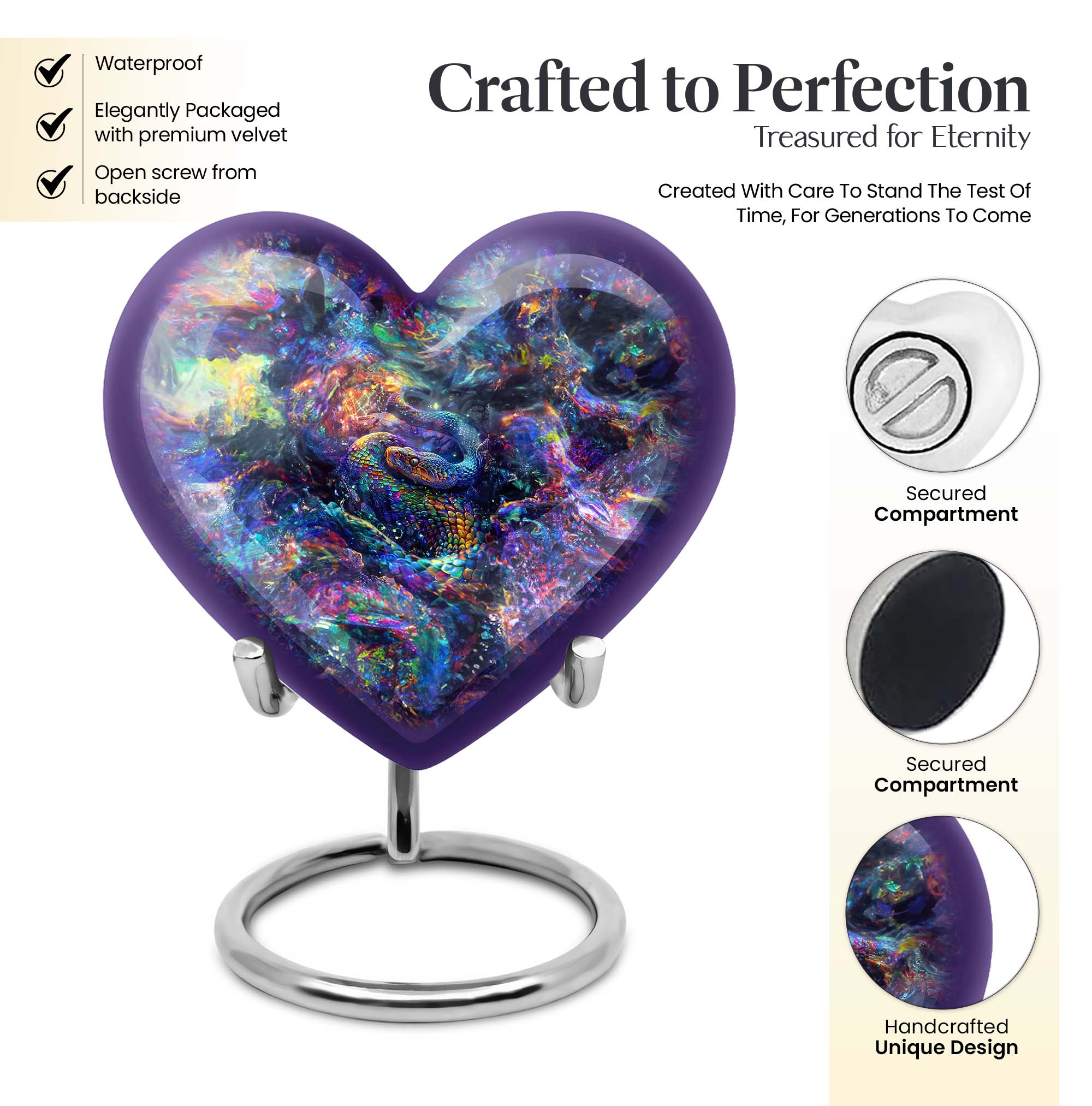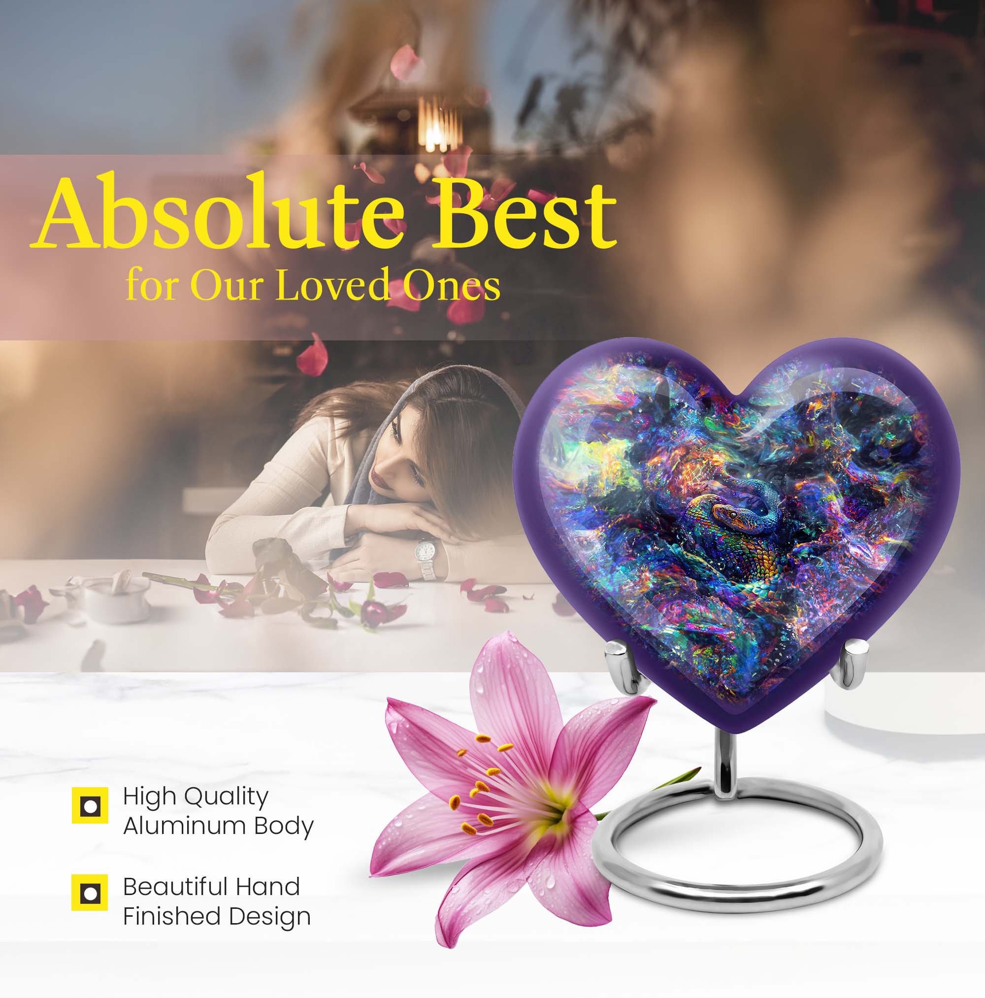 Indulge in the austere serenity that this exceptional, heart-shaped snake urn brings. As a symbol of eternal love and remembrance, this large urn, crafted from durable aluminium, serves as the perfect resting place for your departed loved ones. Measuring adequatly at 10 inches in height and weighing 3.3 pounds, it offers a substantial capacity of 200 cubic inches. Perfect for memorial ceremonies for adults, this burial urn for ashes ensures their lasting memory is preserved. The container arrives accompanied by a delicate velvet pouch, meant for secure containment of the ashes. For a unique touch, you have the choice to personalize this urn with engraved names. Its abstract theme adds to its inherent charm. The snake urn serves as a fitting tribute, an echo of our endless love and respect. Allowing for a rich landscape of memories in featuring it, the urn seamlessly blends practicality with sentimentality.