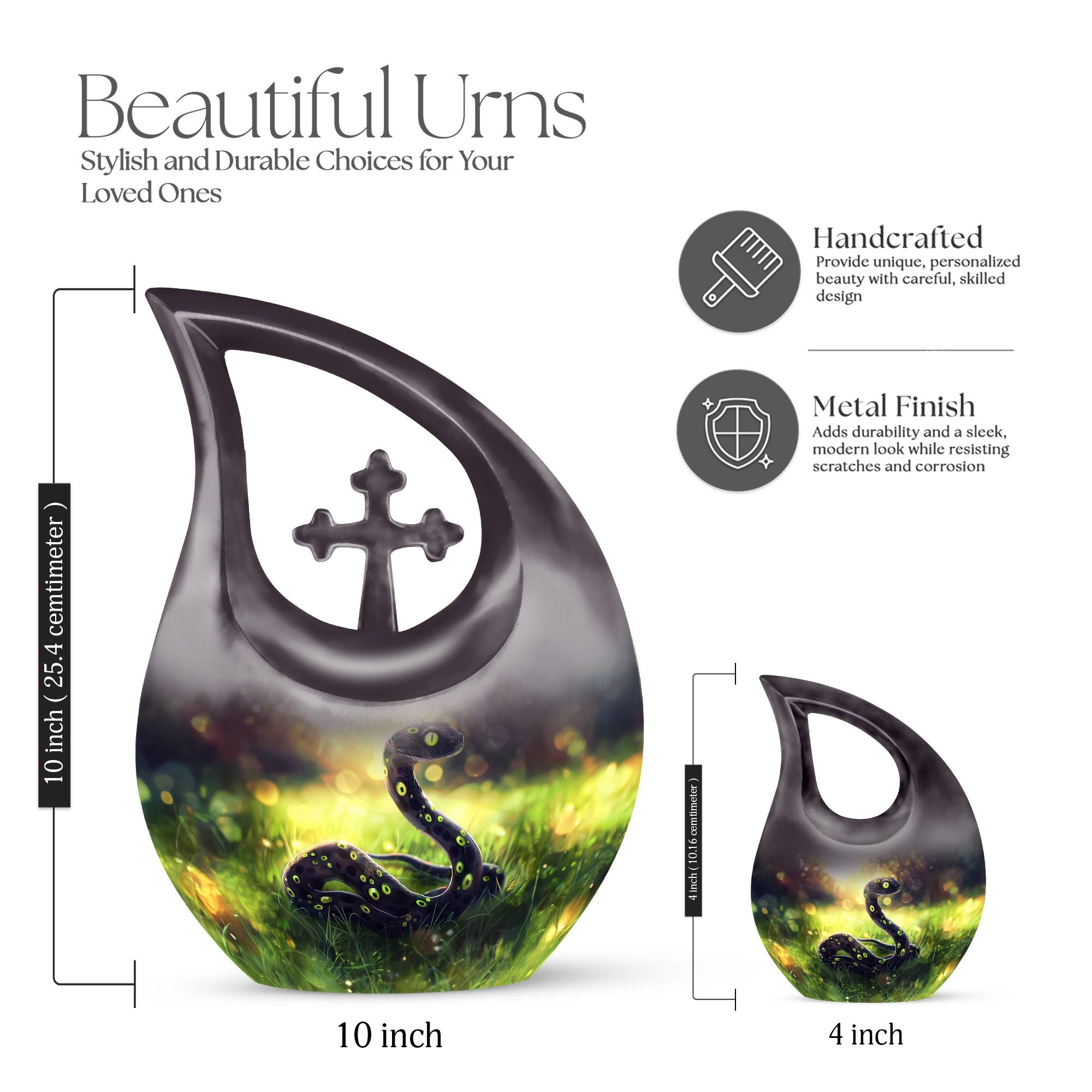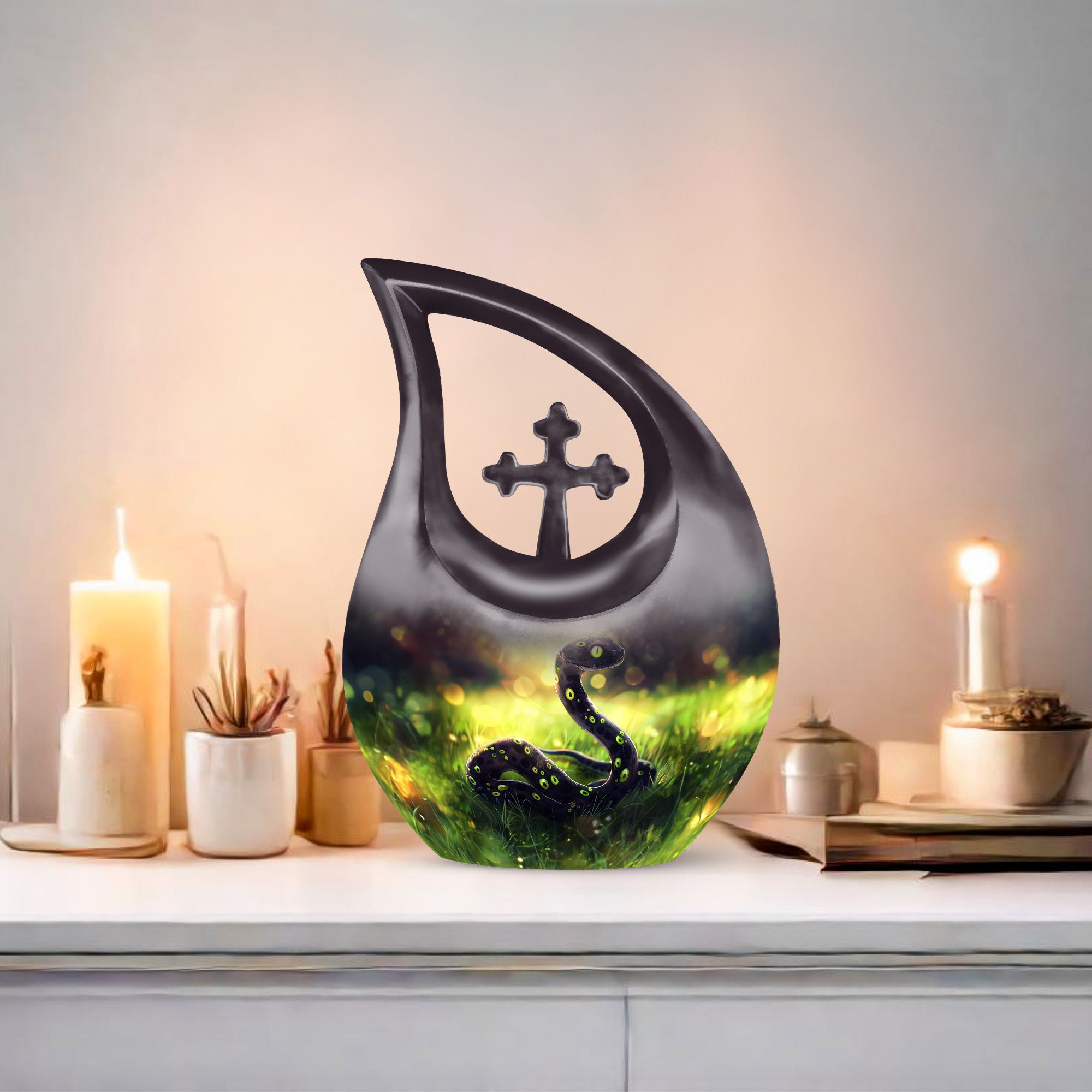 Handcrafted from durable aluminium, this urn features a striking snake motif symbolizing renewal, eternity, and guardianship. Its bold design and solid construction make it an ideal Large Funeral Urn and a reliable Cremation Urn Large for families seeking beauty with purpose. With generous capacity, it meets the needs of a Cremation Urn Adult Large, Large Cremation Urns For Human Ashes, and a dignified Large Cremation Urn suitable for home display or burial. This piece is also well-suited as an Urn Large Adult Male or Large Urn For Adult Ashes, offering lasting peace of mind.