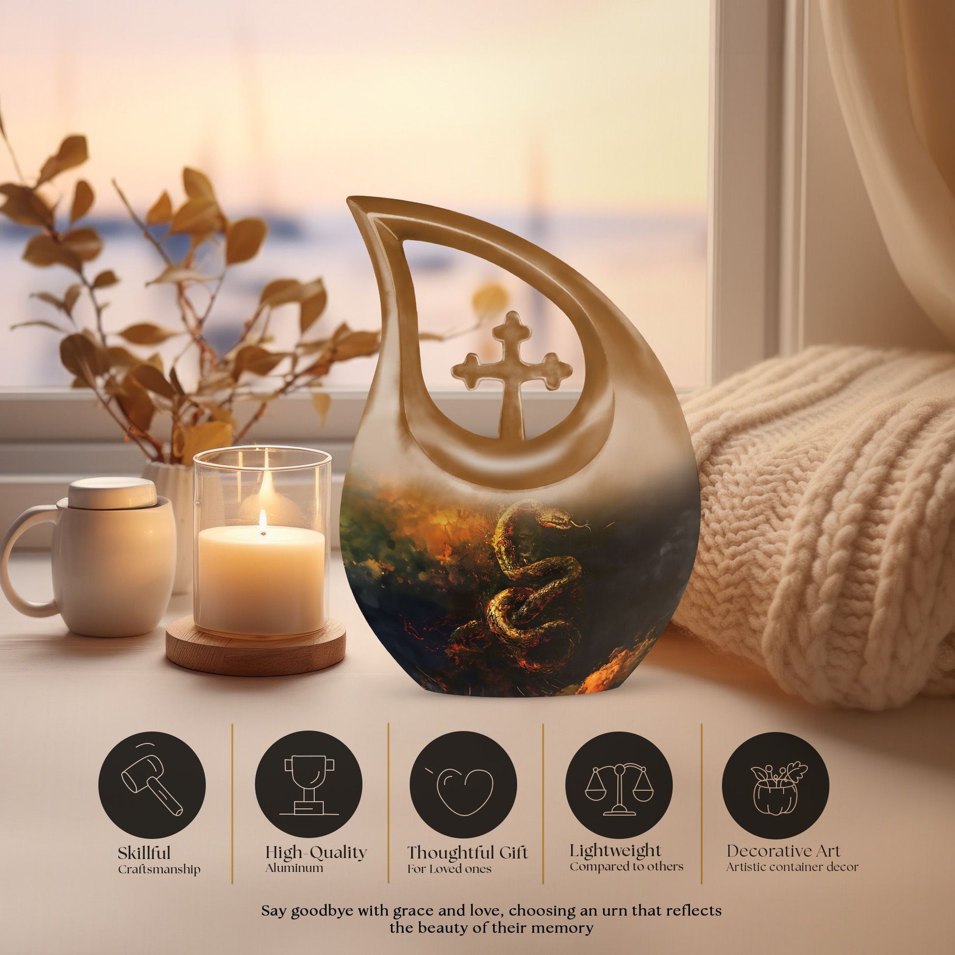 Honoring the lives and memories of mom and dad, this snake memorial urn offers a symbolic and meaningful tribute. The snake represents transformation, eternity, and renewal, making this urn a thoughtful choice for families seeking urns for human ashes women or urns for adults men who value symbolism and lasting connection.