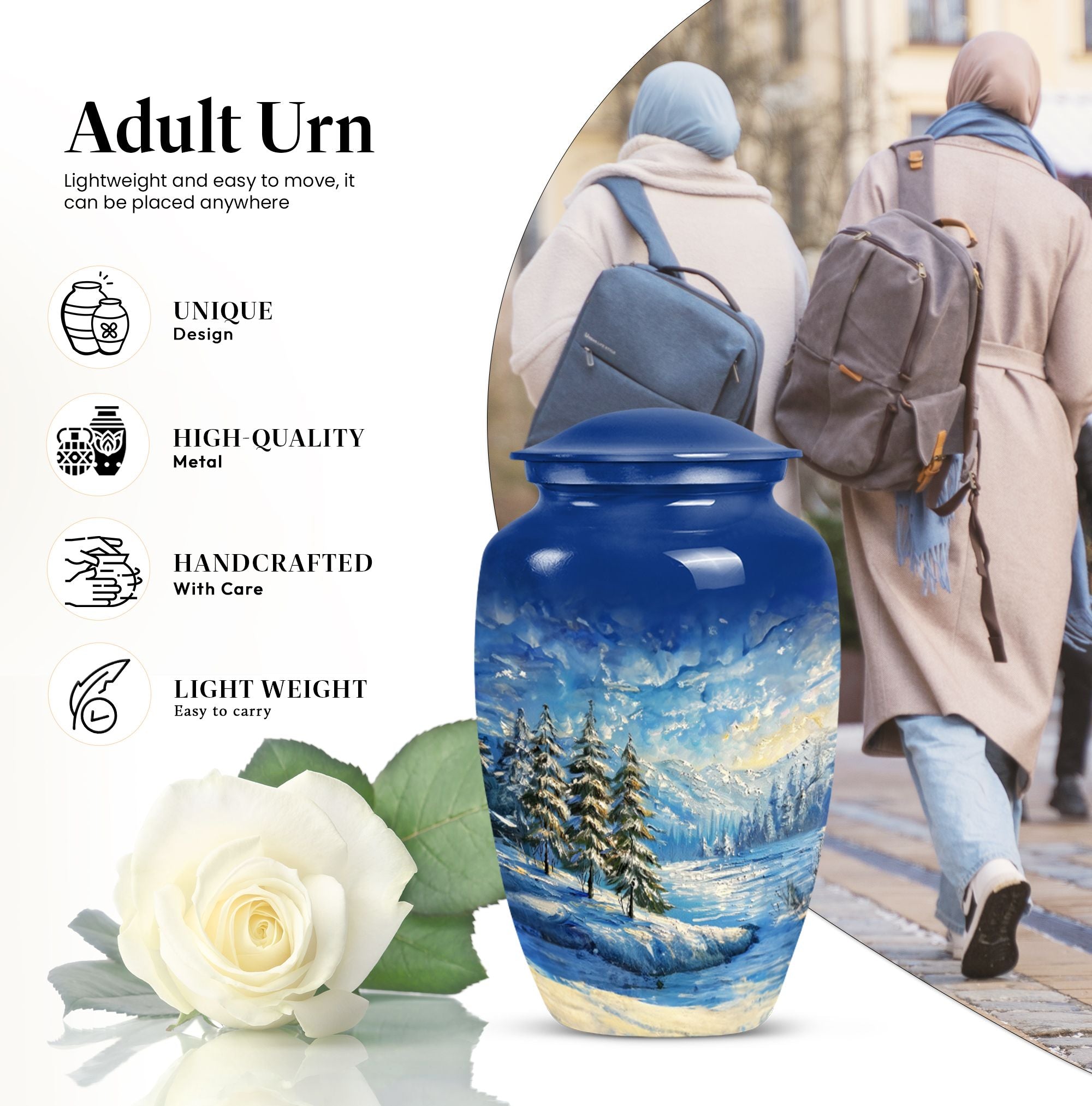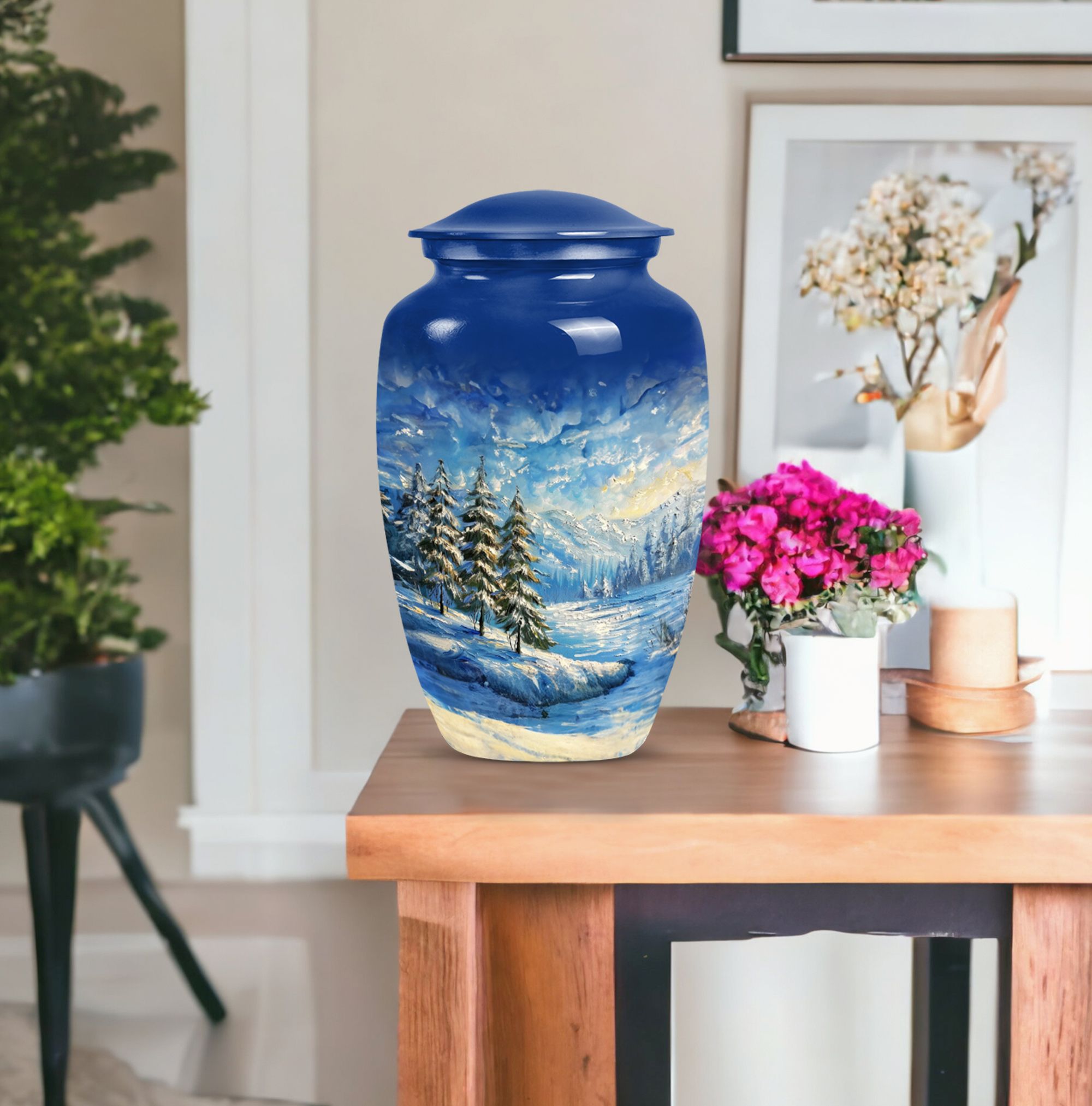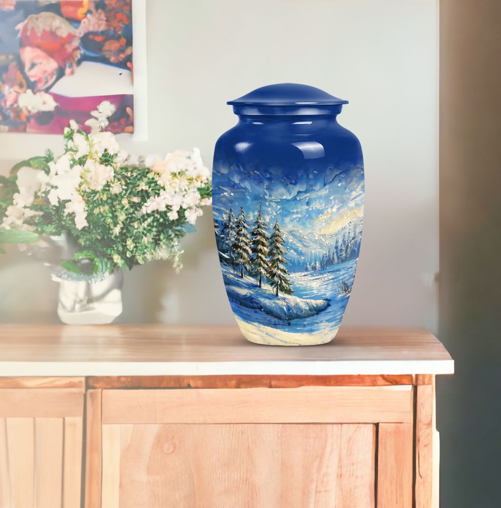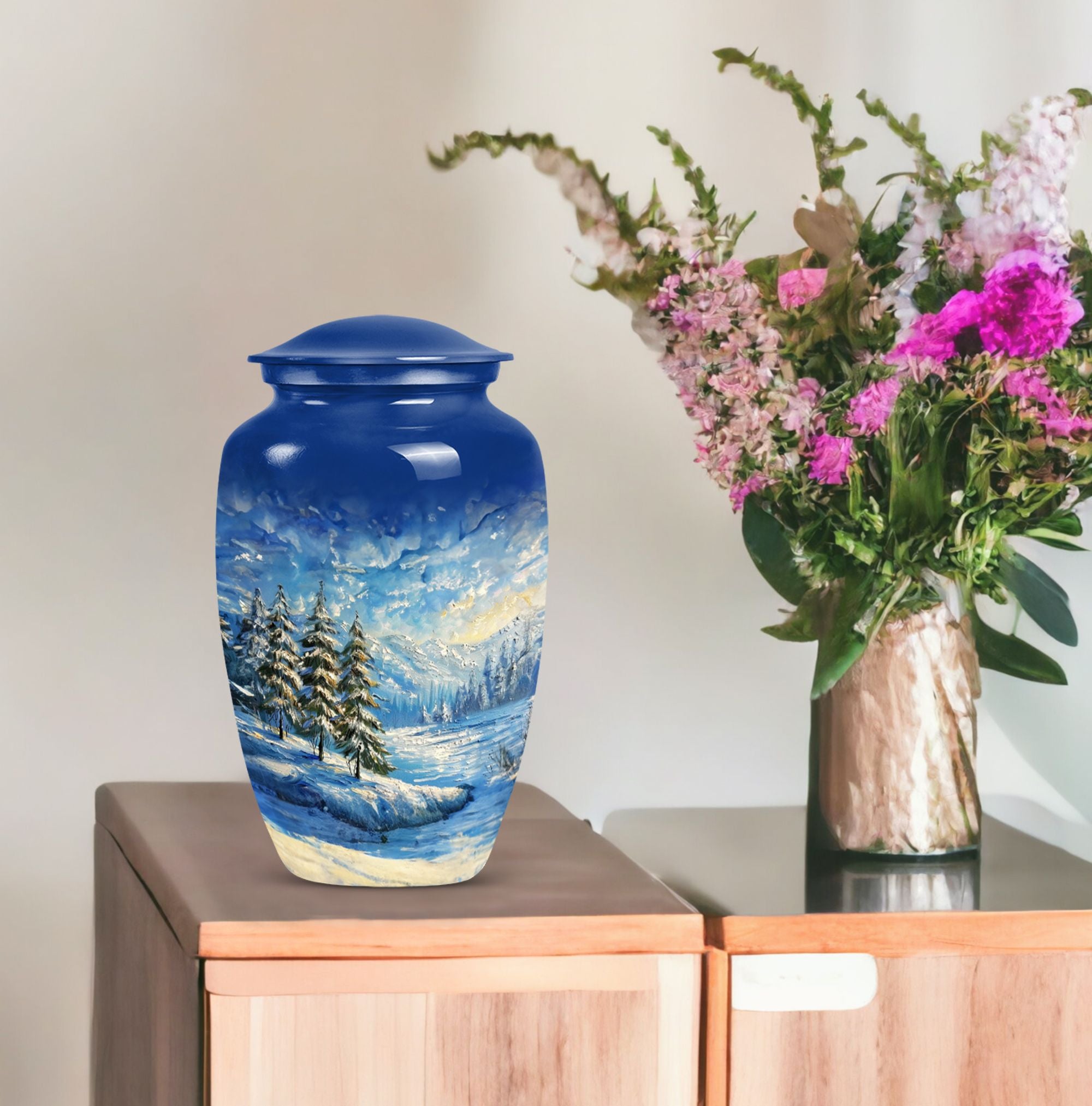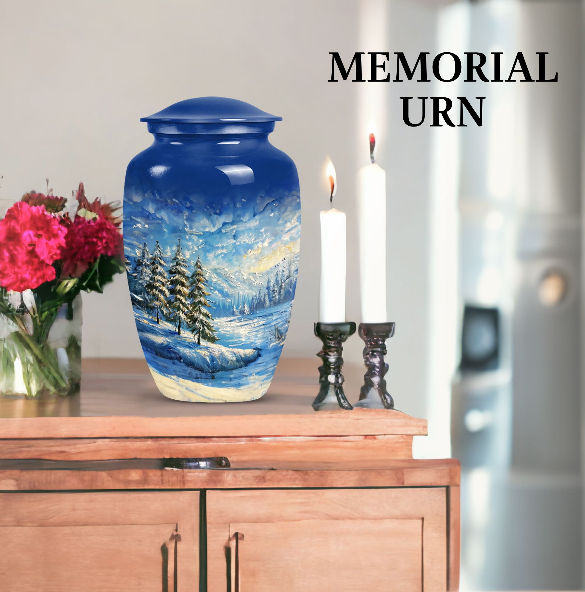Celebrate a life uniquely with the Snowflakes Cremation Urn, where artistry and remembrance meet, making it one of the most cherished unique urns for human ashes or large decorative urns for human ashes available.