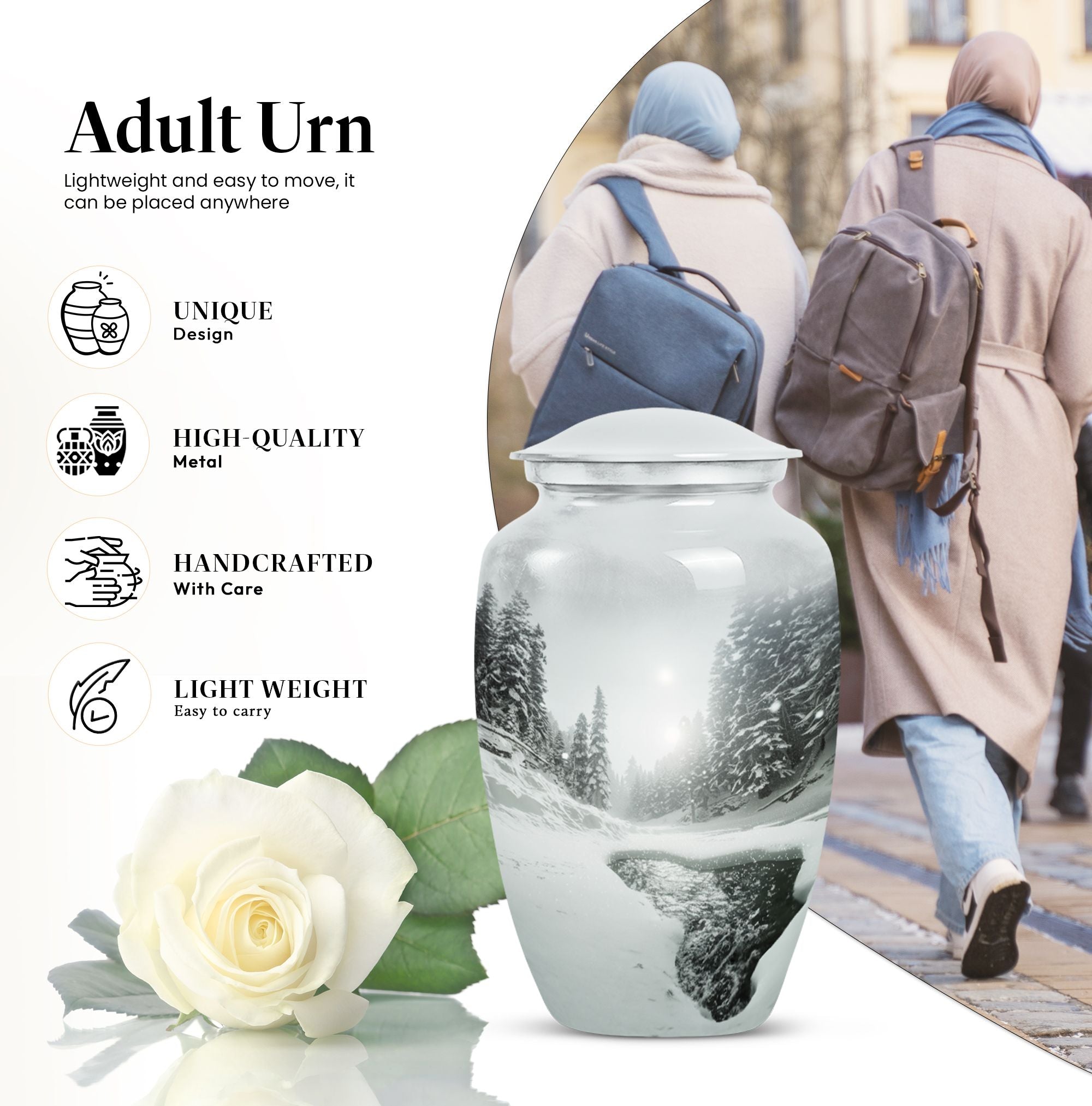 The Snowflake Funeral Urn is a symbolic and heartfelt way to honor a life lived. As a funeral urn for women, urn for women & men, or adult urn for men & women, it embodies love, memory, and dignity in every detail.