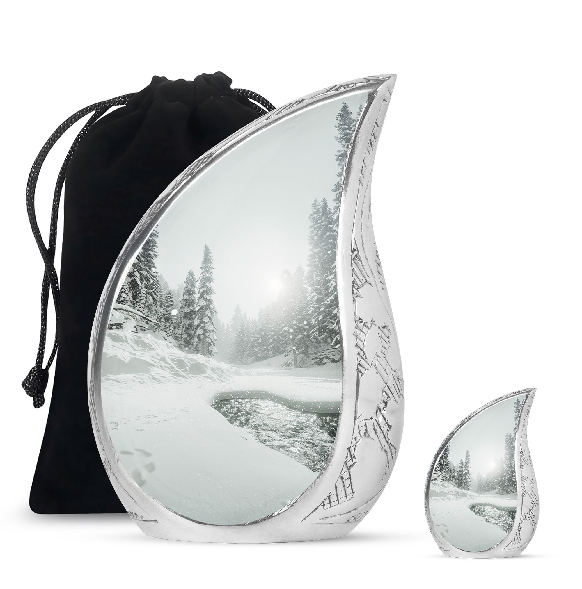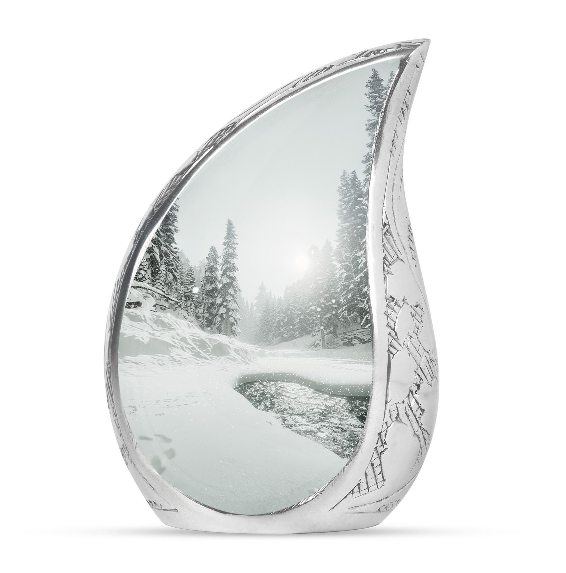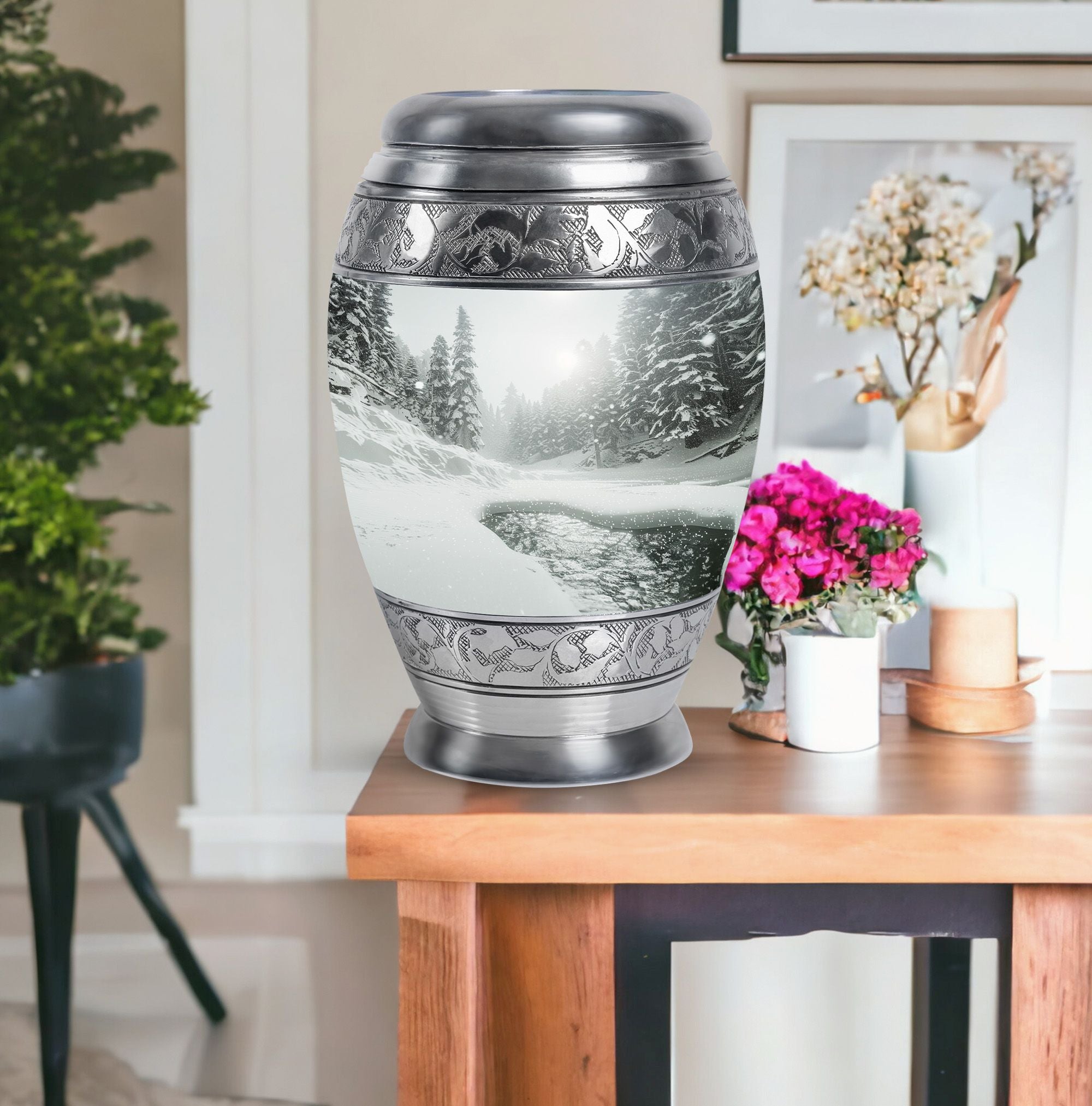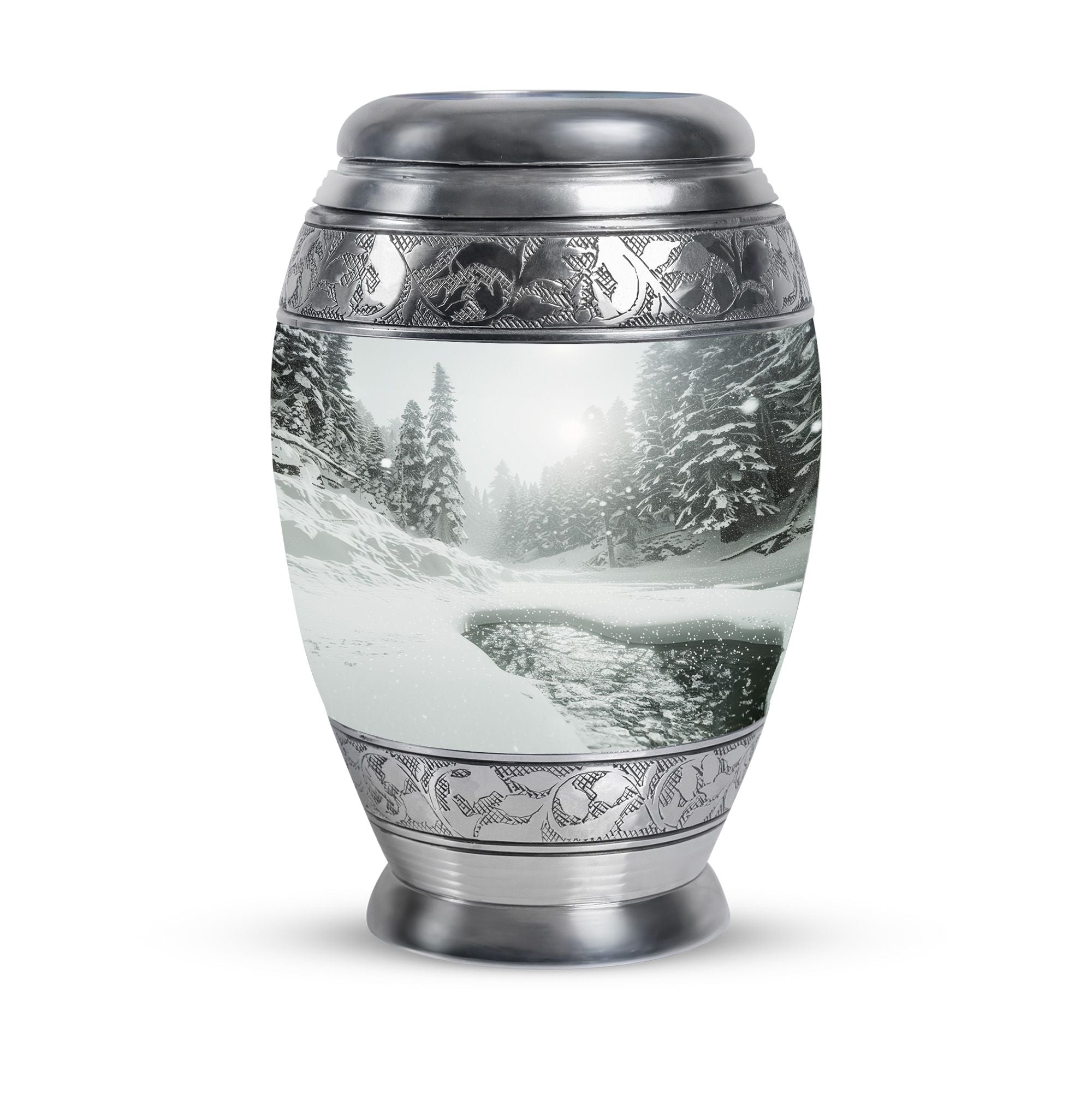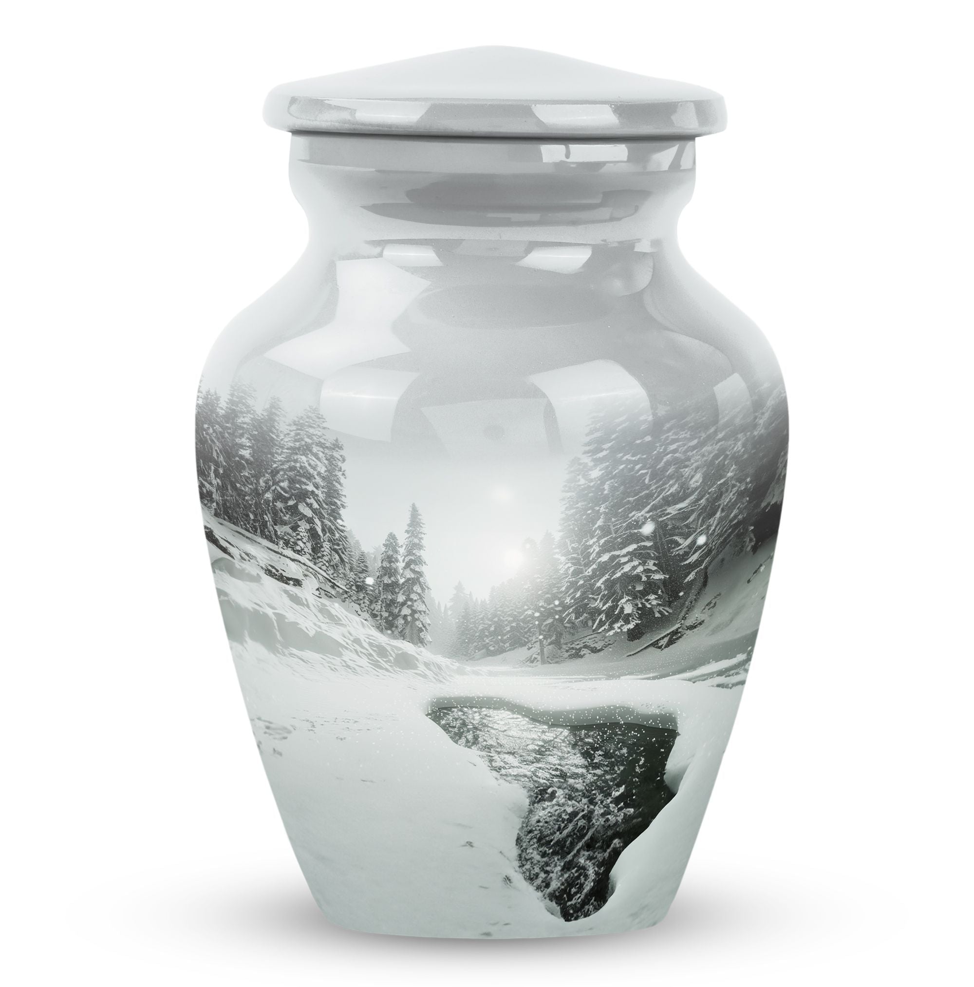 The **Snowflakes Urn for Ashes** represents the **delicate, fleeting beauty of life, honoring a loved one with a design as unique as their presence**.