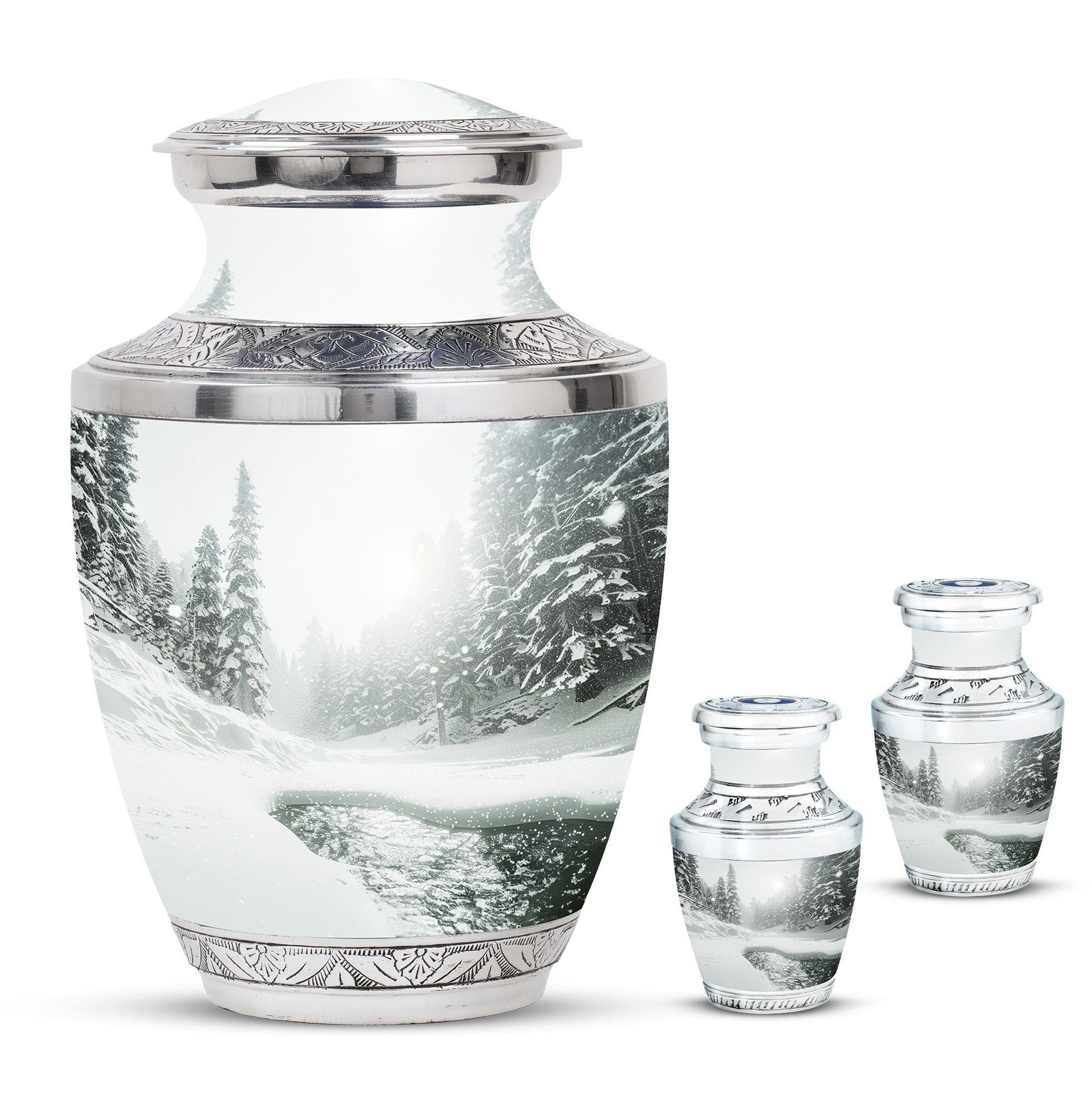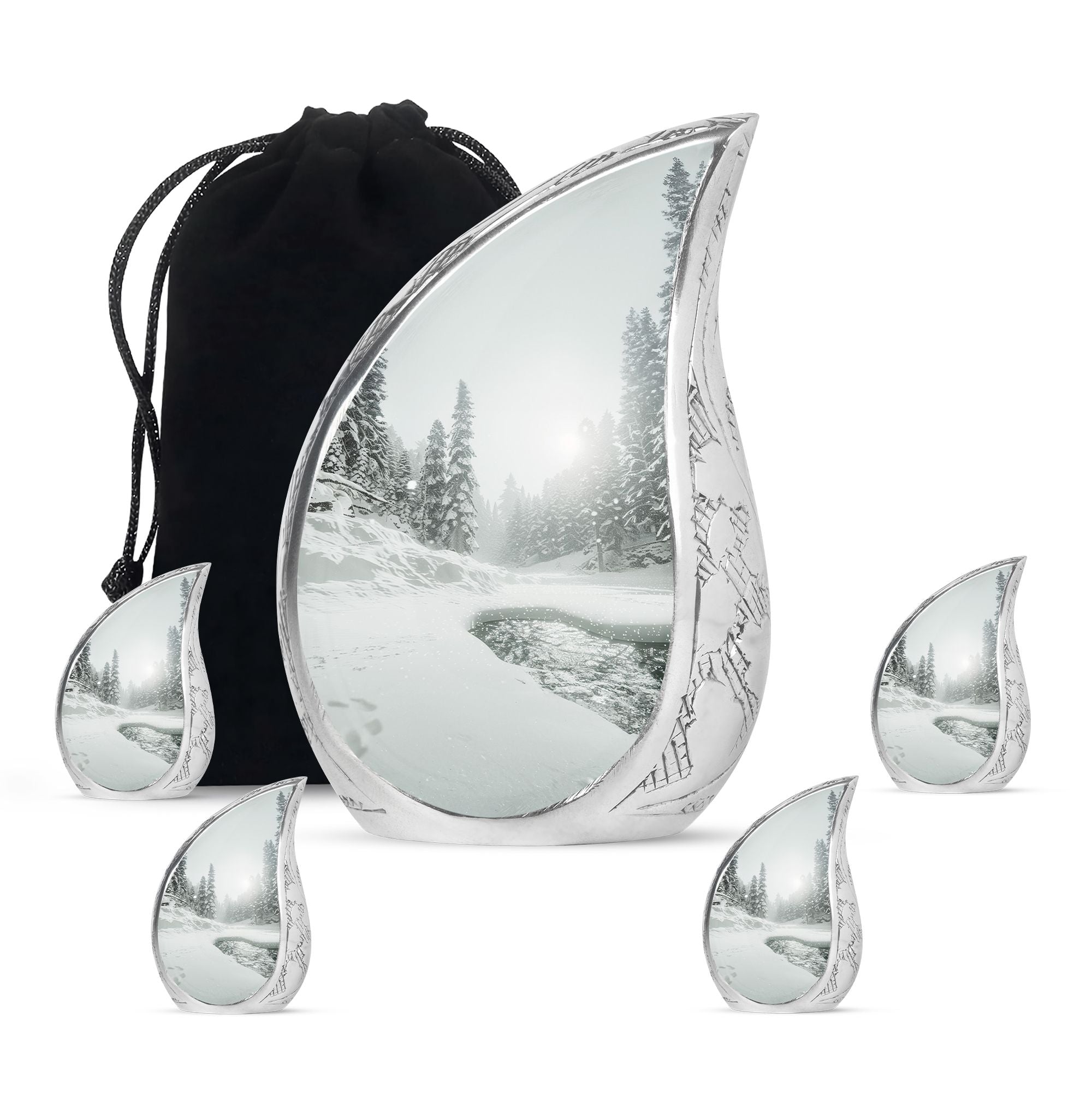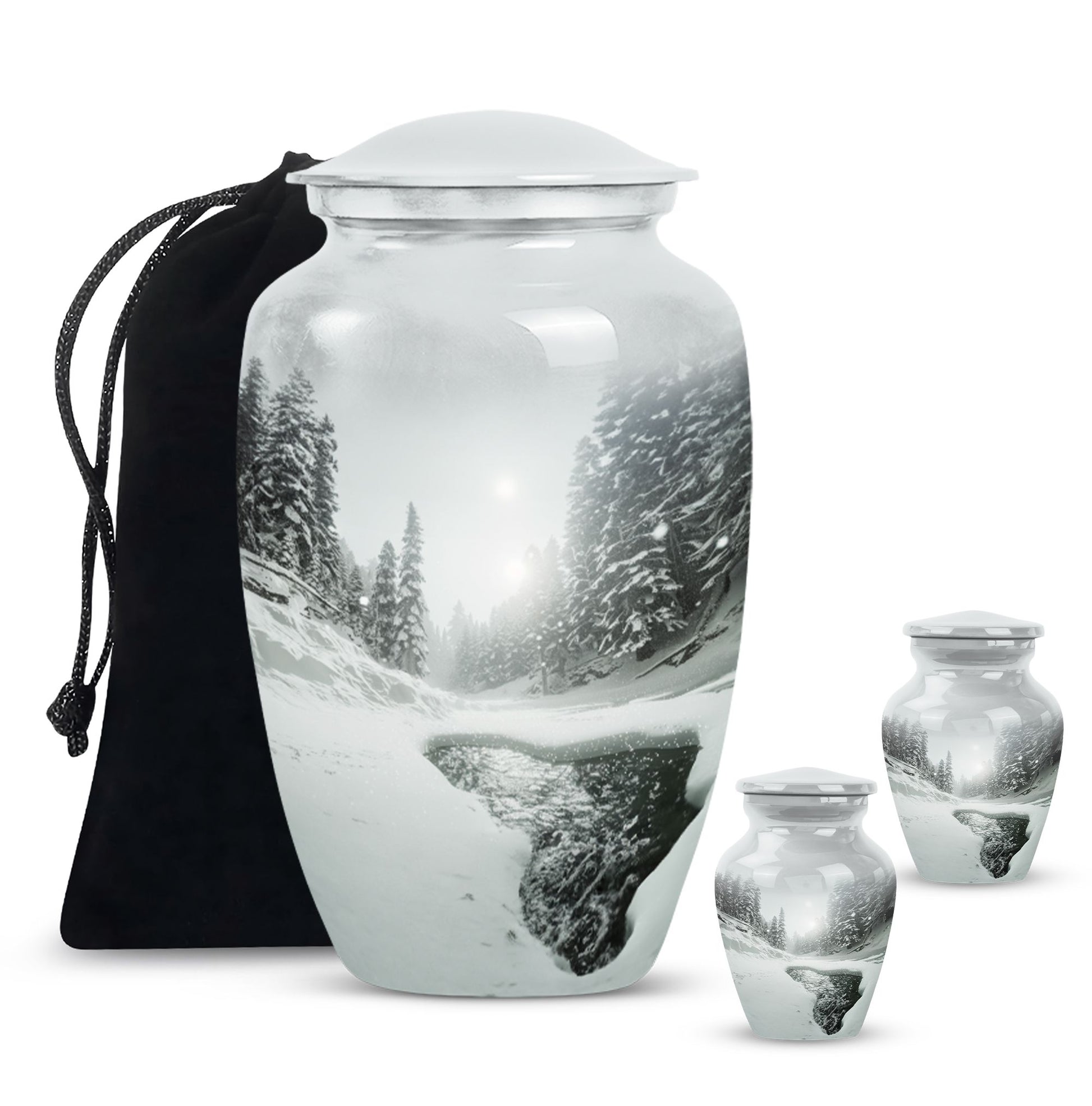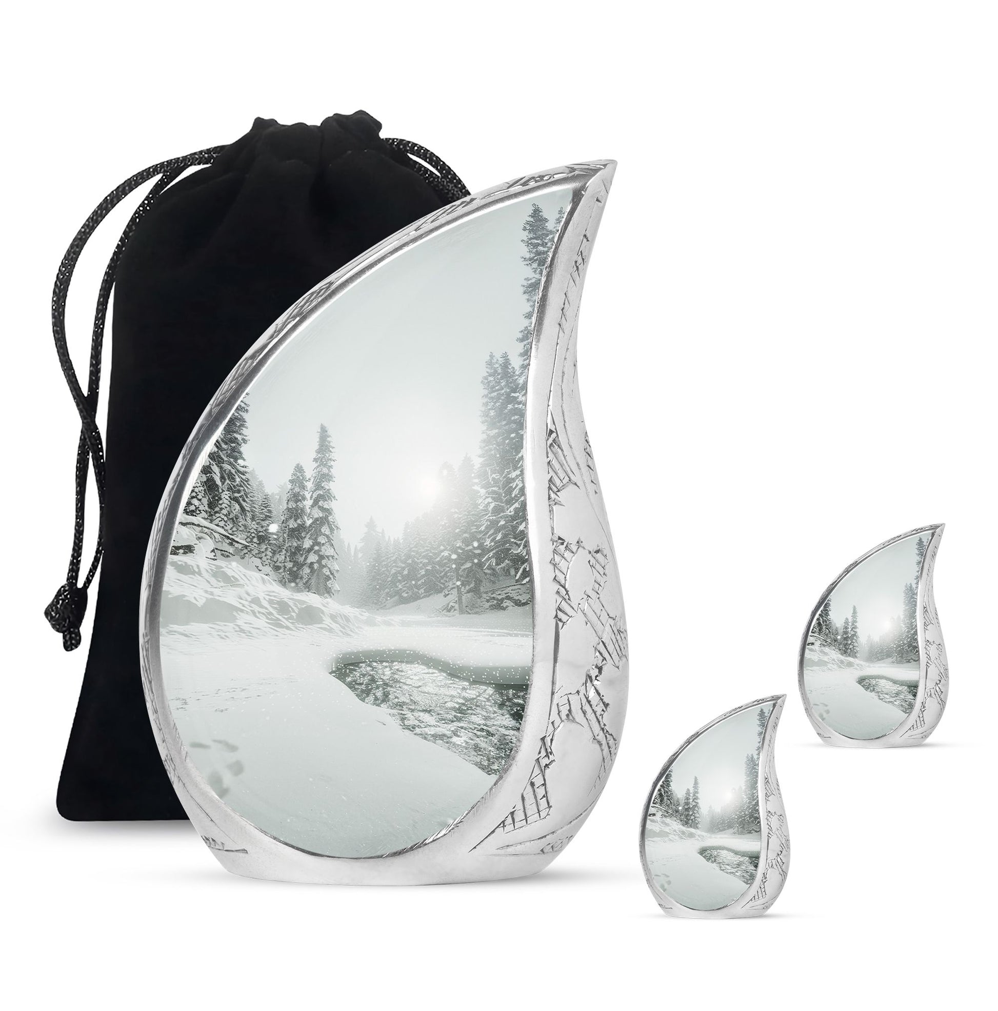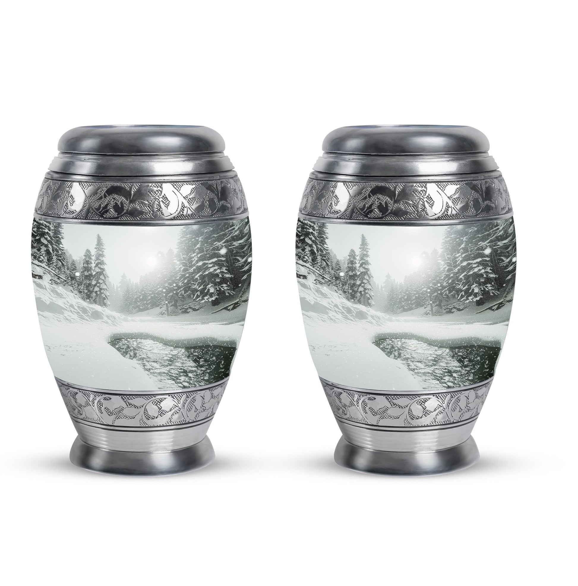 The **Snowflakes Urn for Ashes** represents the **delicate, fleeting beauty of life, honoring a loved one with a design as unique as their presence**.