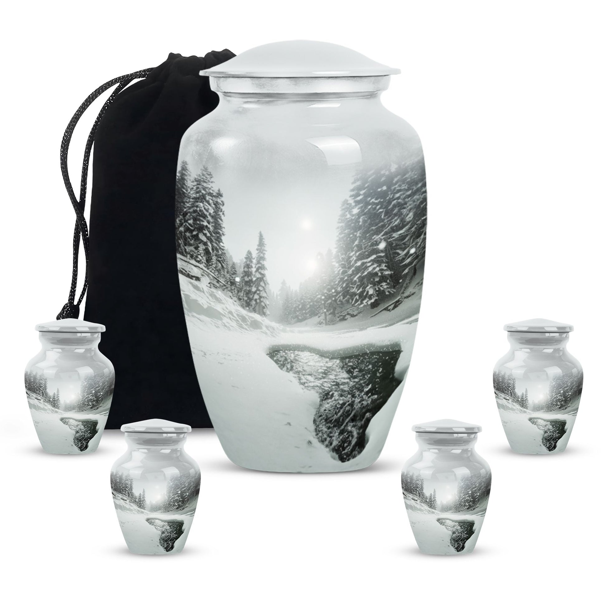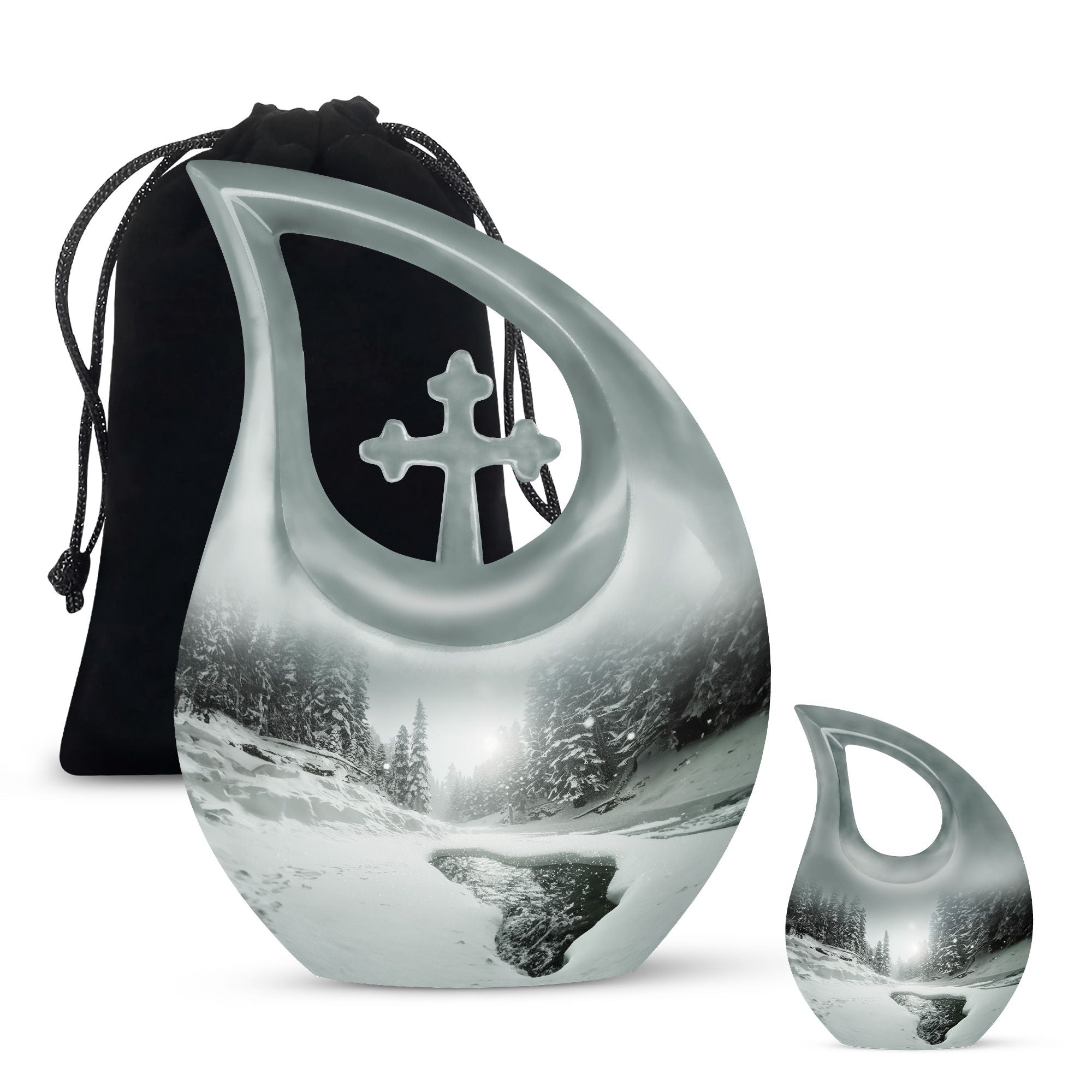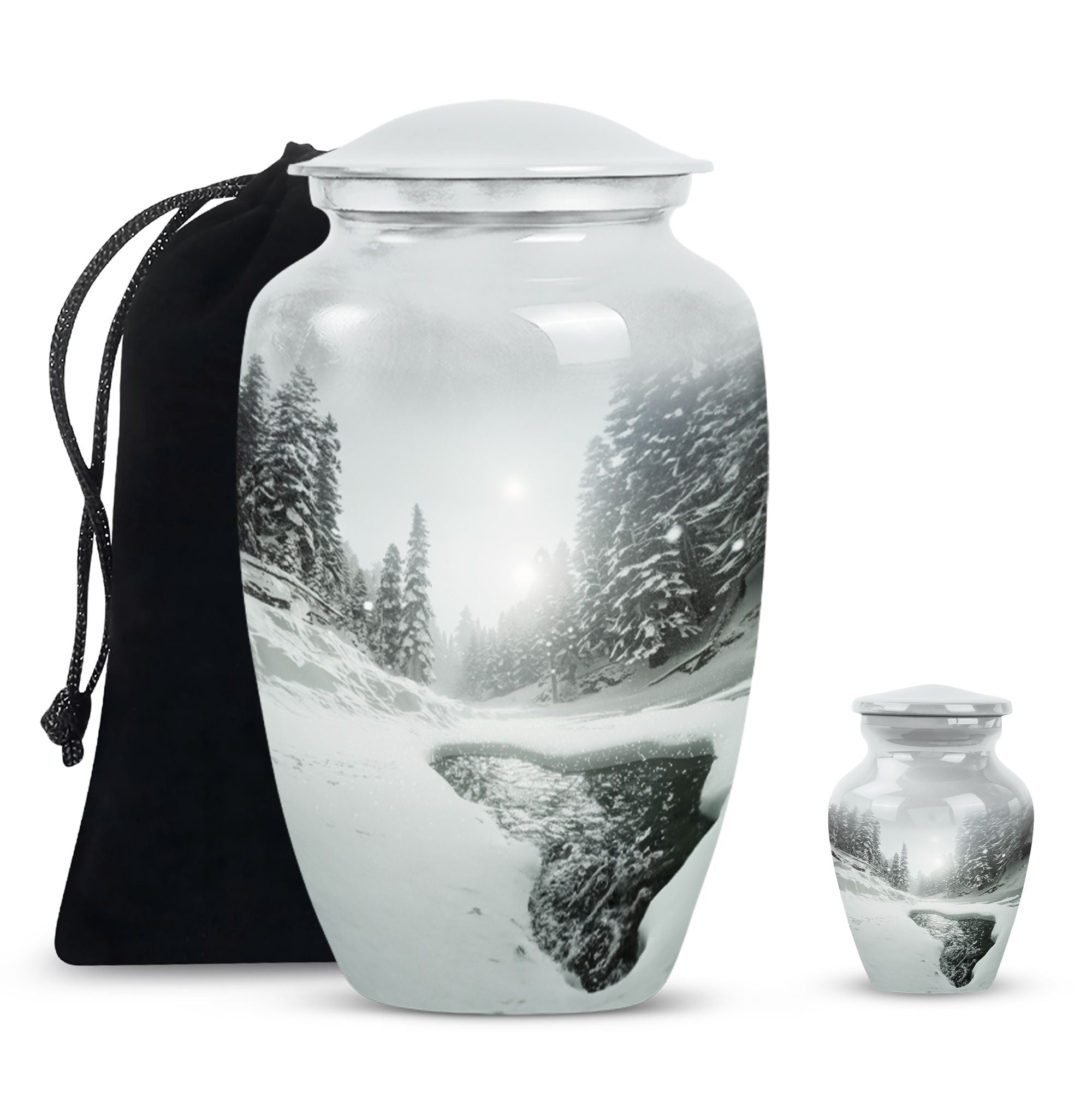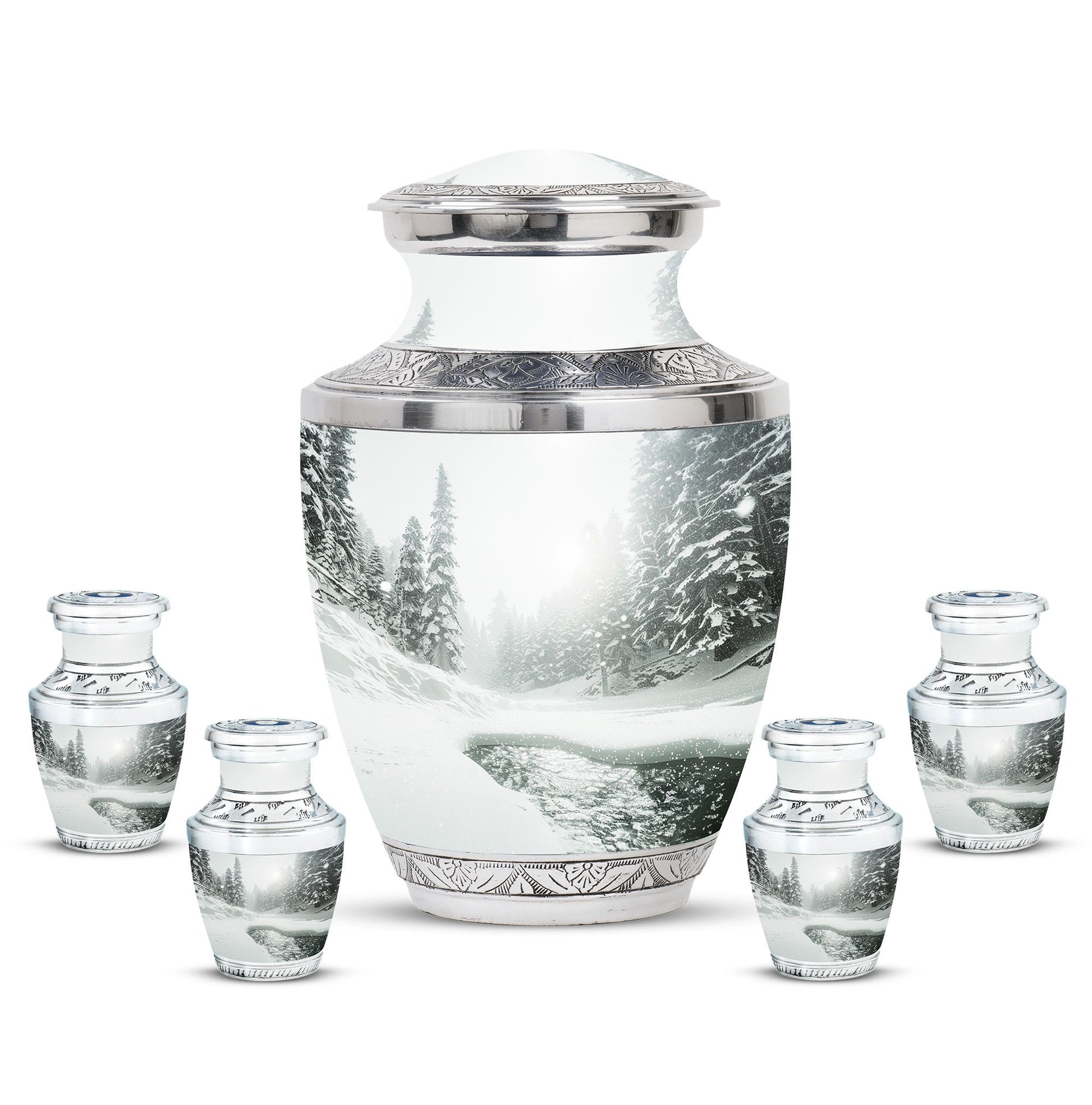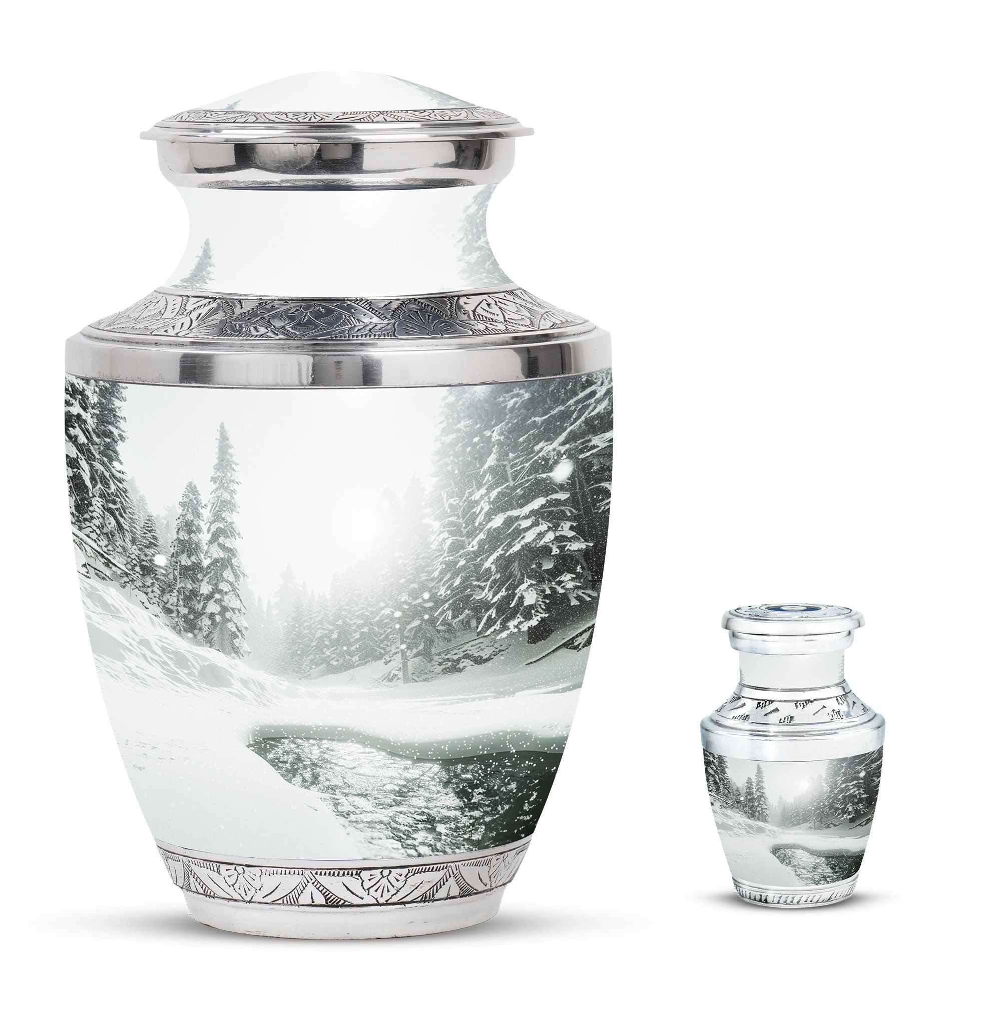 The **Snowflakes Urn for Ashes** represents the **delicate, fleeting beauty of life, honoring a loved one with a design as unique as their presence**.