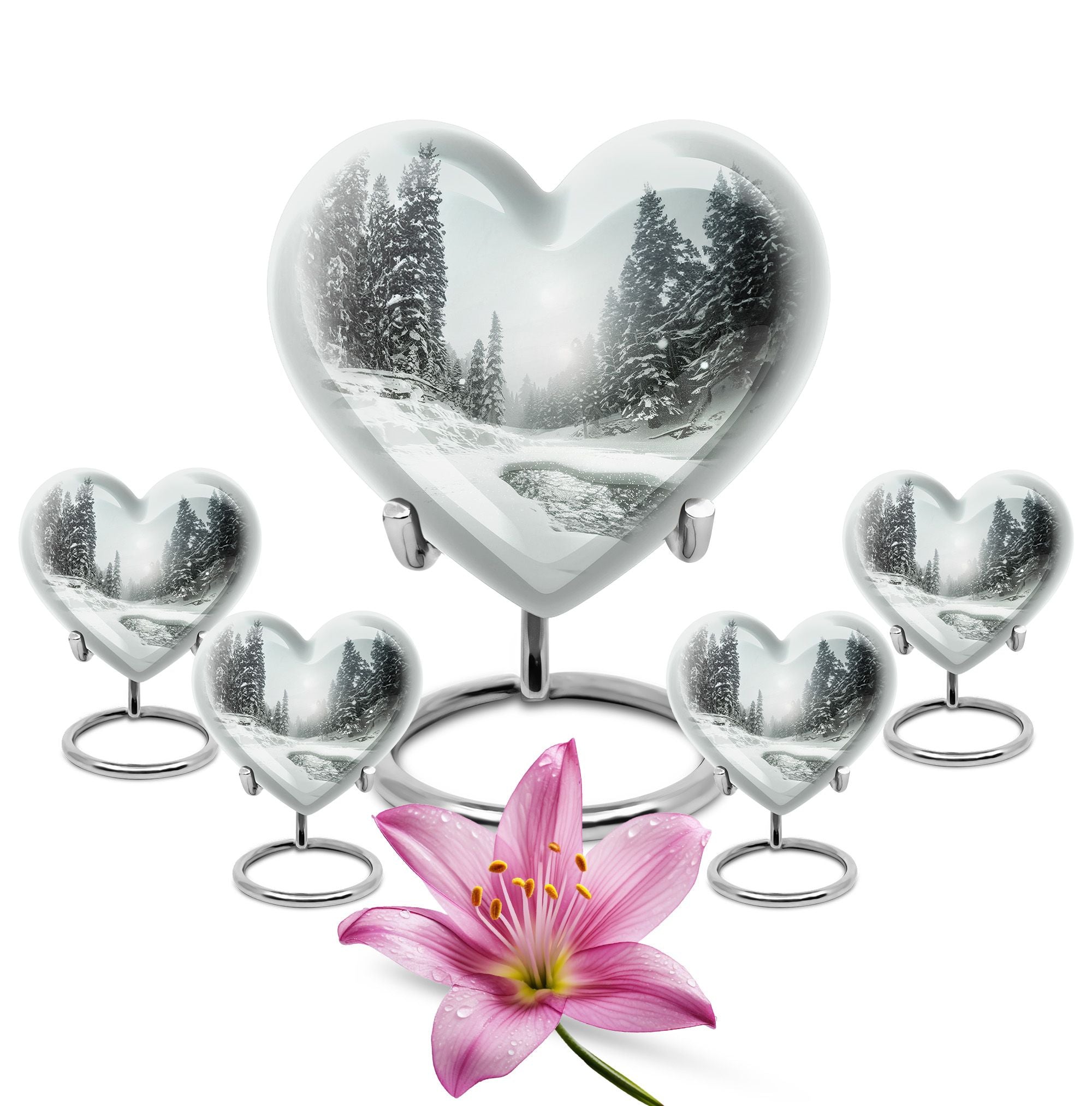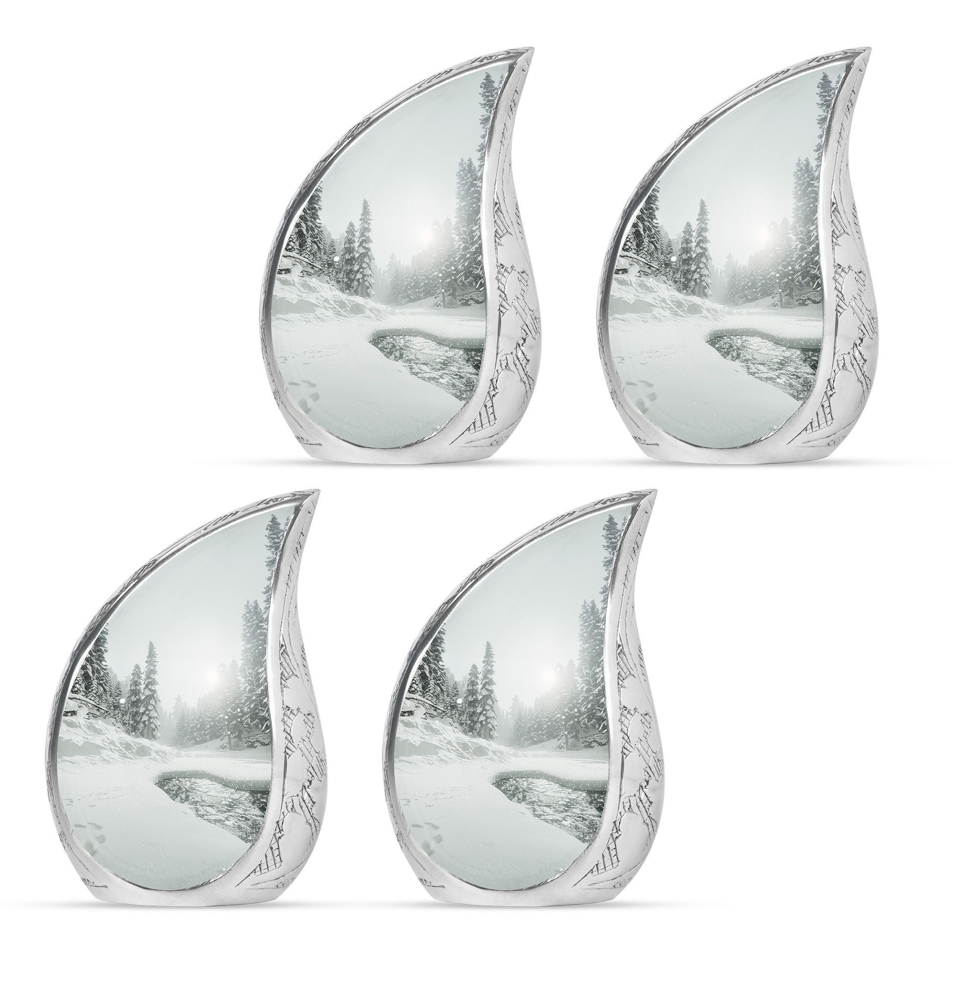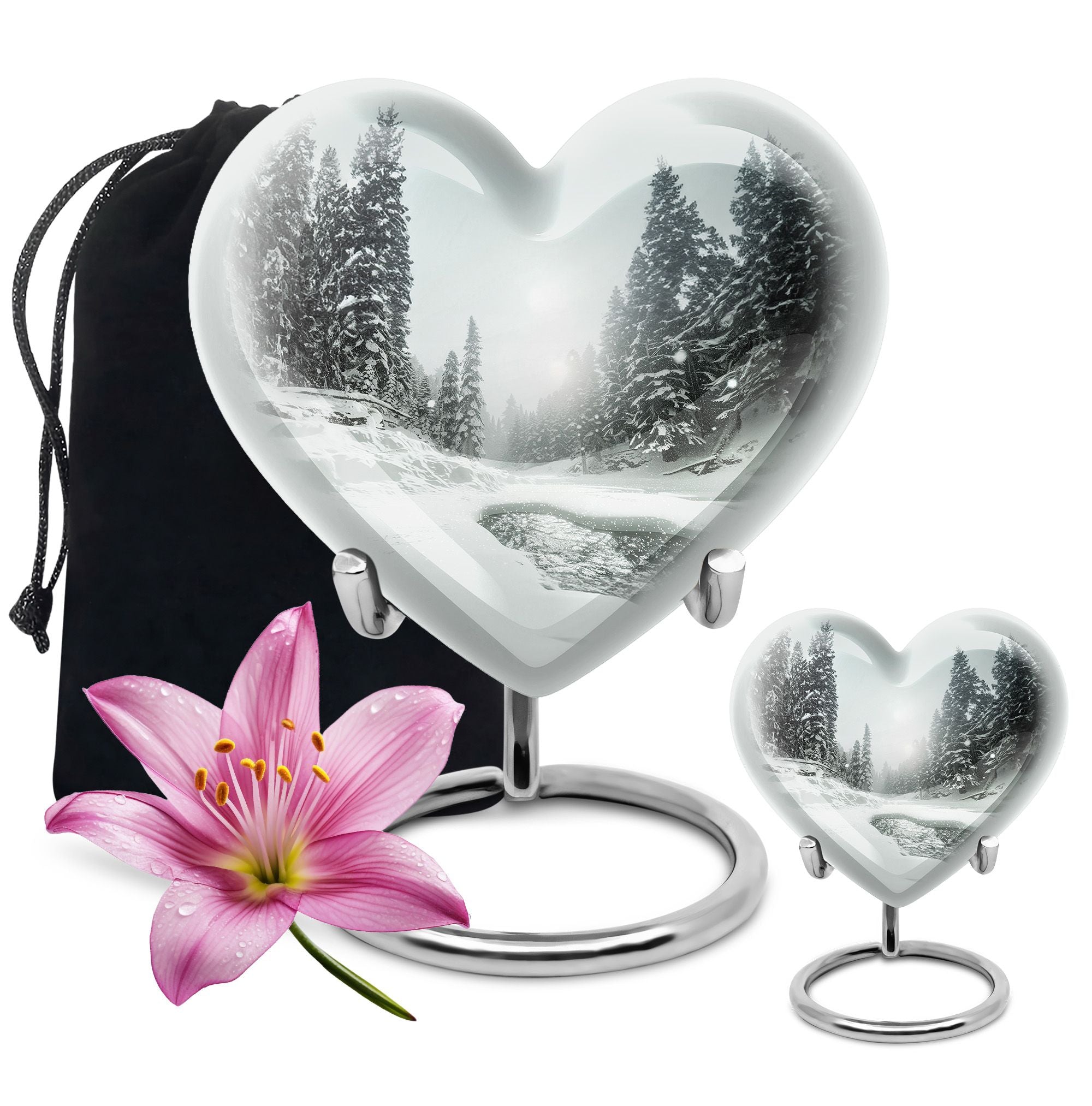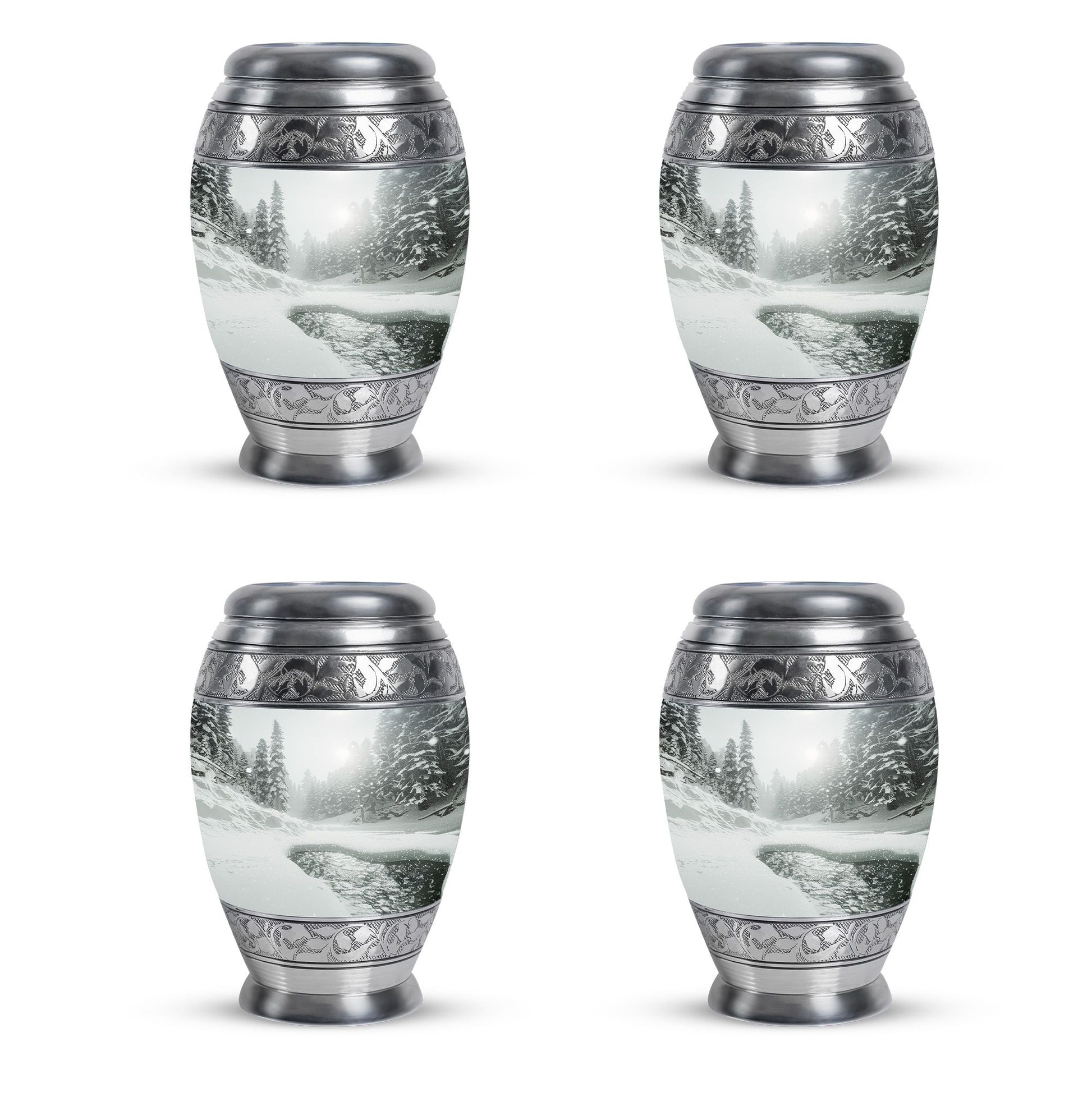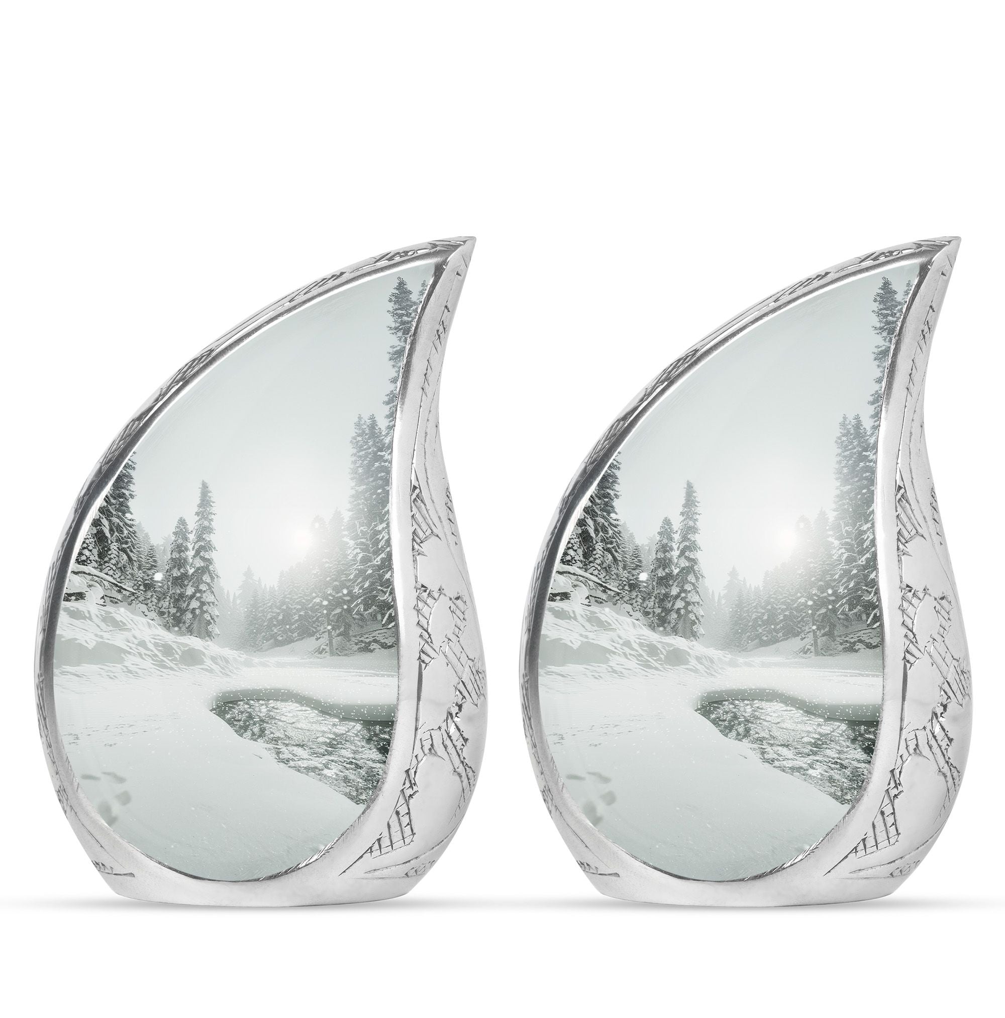 The **Snowflakes Urn for Ashes** represents the **delicate, fleeting beauty of life, honoring a loved one with a design as unique as their presence**.
