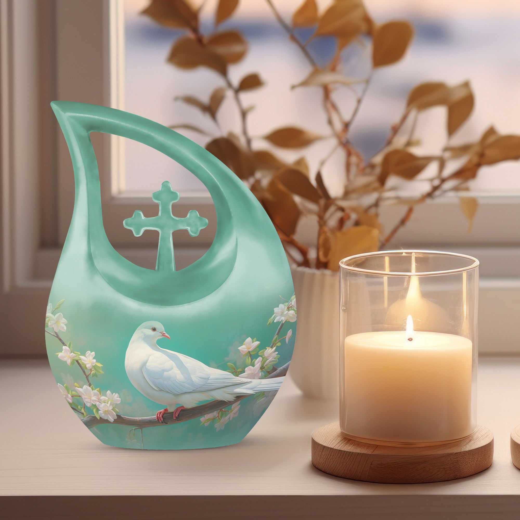 This small yet beautiful urn women cherish offers a comforting presence, serving as a touching urn ashes women or part of a collection of adult urns women and men’s keepsakes. Its delicate hue and bird motif bring peace and hope, symbolizing the soul’s eternal journey into light.