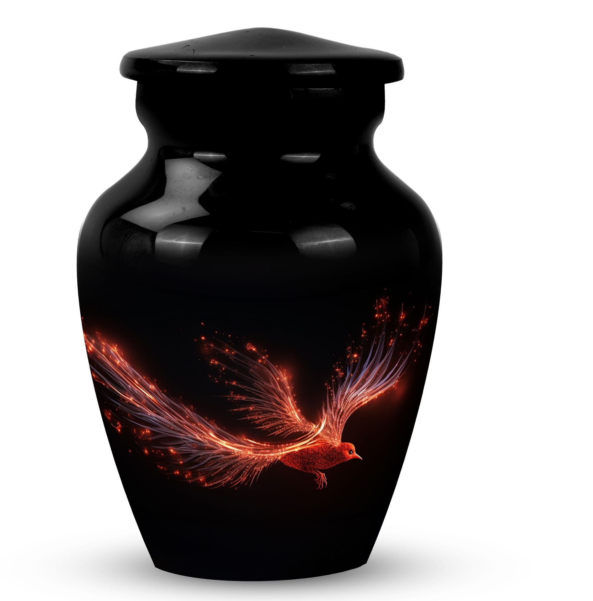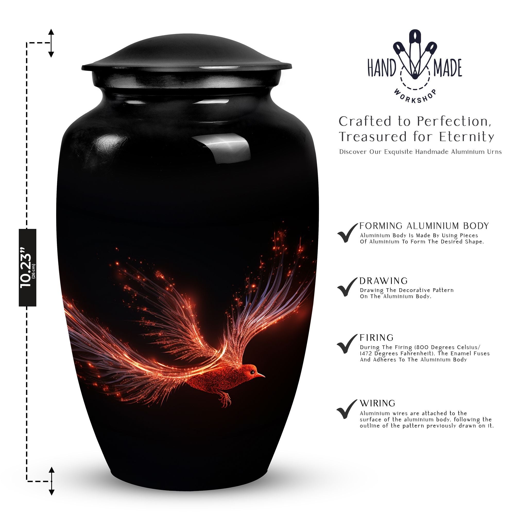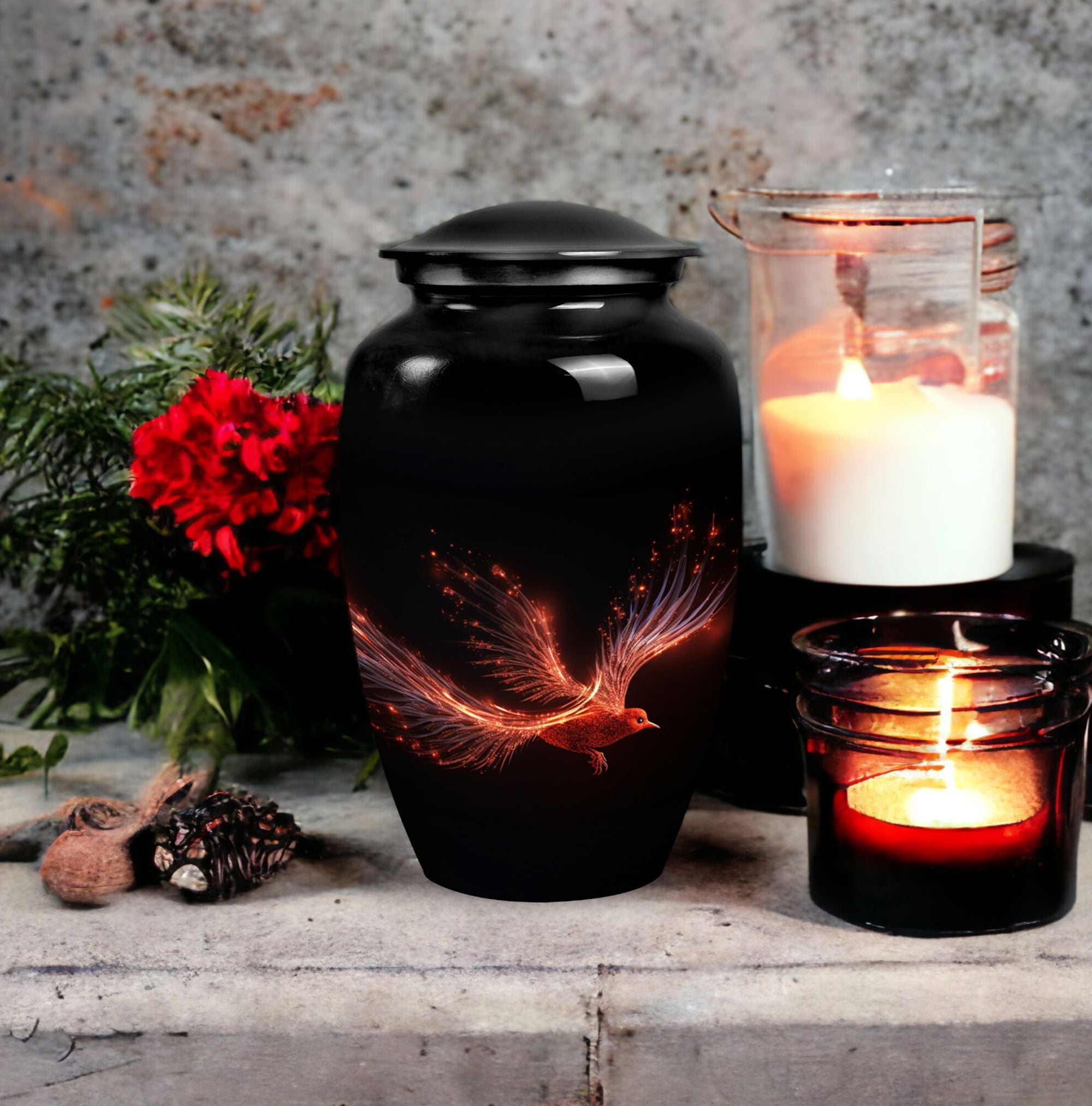 Treasure the memories of your loved one with the 'Red Sparrow Urns for Human Ashes'. Specially designed to serve as timeless memorials, these cremation containers are more than just urns - they are a heartwarming tribute to your dearly departed. Crafted from robust Aluminium, these 3-inch classic urns strikingly stand at a height of 10 inches, presenting an aesthetic vision of elegance to any viewer. The urns weigh 3.3 pounds and have a capacity of 200 cubic inches; sufficient space to safely enclose the ashes. Each urn comes with a velvet pouch, providing an added layer of protection to the contents. One unique characteristic of these large urns is the possibility to personalize them with engraved names, allowing a distinct remembrance.