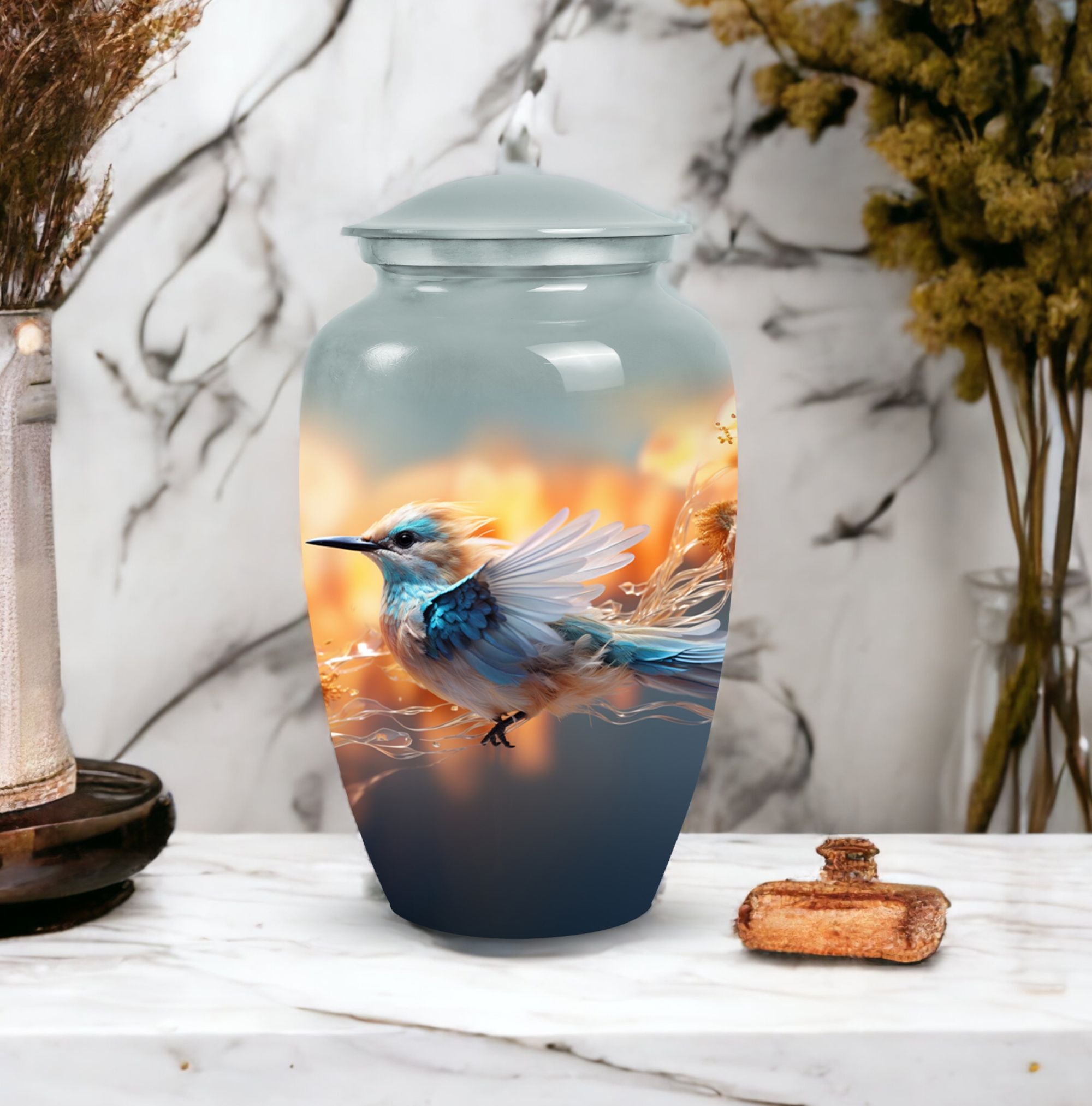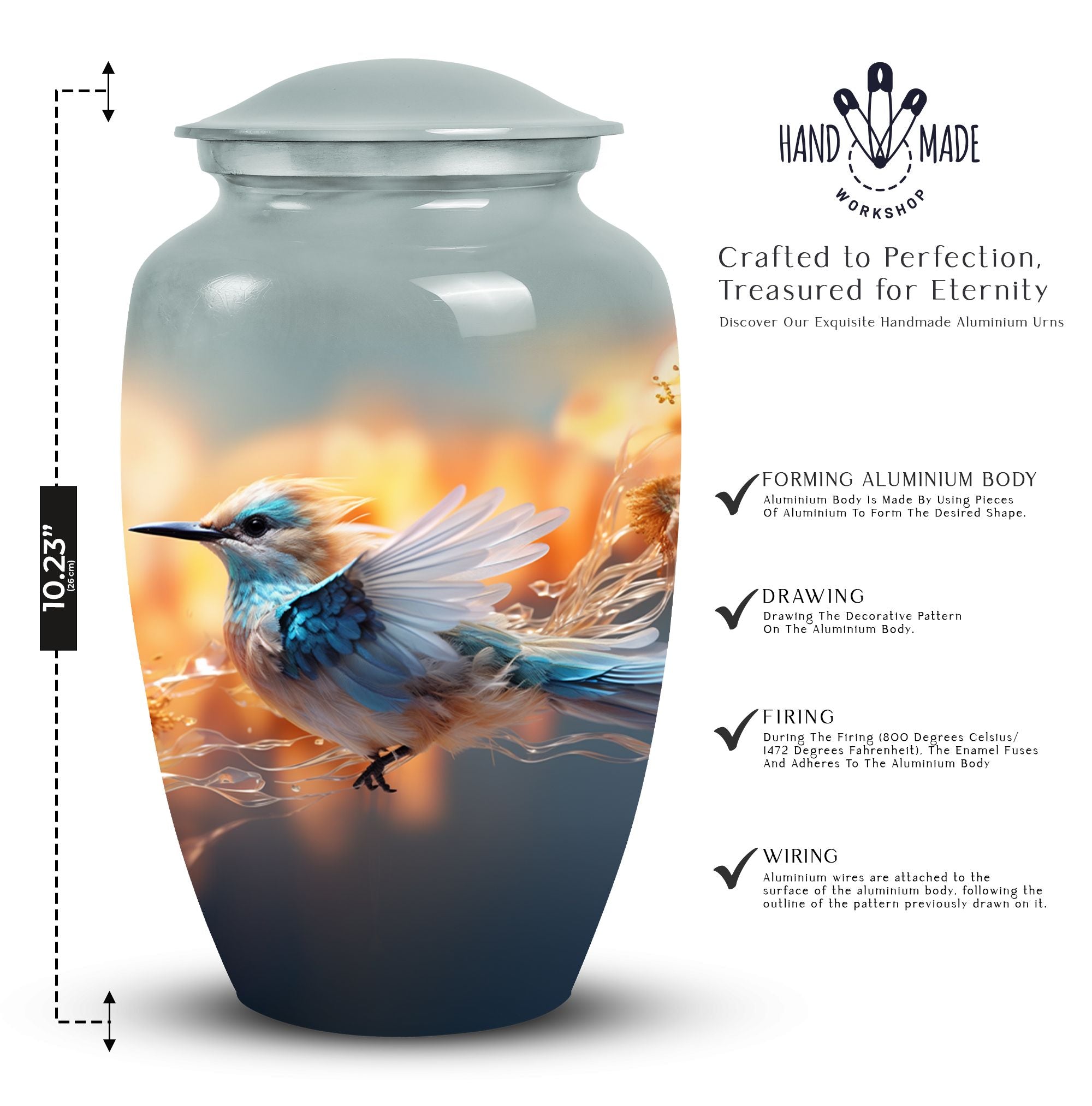 Experience serenity and solemnity with our beautiful Sparrow Urn, an exemplary choice among diverse decorative urns. An elegant and dignified receptacle cherished as a symbol of eternal respect, this burial urn carries an air of tranquility and grace. Handcrafted to perfection, the Sparrow Urn reflects not just sophistication but also immutable love. Ideal as funeral decorations, our urn adds an inimitable layer of sanctity. Available for both women and adults, the sophistication of this product is truly captivating. With its spacious chamber, it makes for a distinguished choice as a burial urn for human ashes. Be it to honor a departed soul or to preserve cherished memories, the Sparrow Urn symbolizes eternal peace and a timeless bond. Celebrate the memory of your loved one with our Sparrow Urn, a token of love crafted with compassion and care.