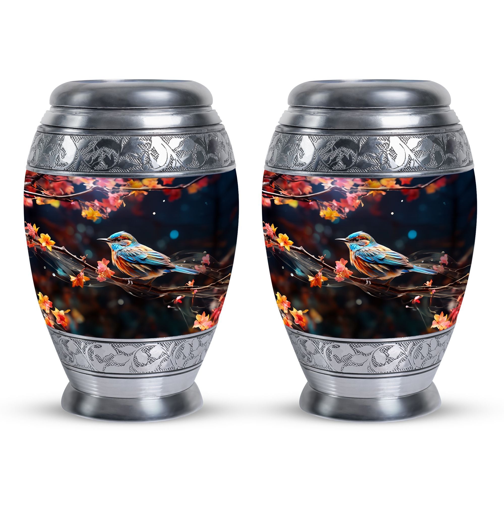Introduce a serene final resting place with our elegant Sparrow Urns for Ashes. Constructed meticulously from aluminium, they carry an air of grace and respect. These large urns, weighing just 3.3 pounds, with dimensions of 10 inches in height, are equipped to securely hold up to 200 cubic inches of ashes, perfectly catering to your needs. Each urn comes with a velvet pouch, offering an additional level of dignified containment for the ashes. A significant feature of these products is customization - personalize your memorial urns with engraved names, adding a touching tribute. Sized at 3 inches, these personalized urns blend in seamlessly at the memorial ceremony, without drawing undue attention. Whether you're searching for modern urns or modern cremation urns, our classic aluminium urn design offers an appealing choice. Designed with care and responsibility, these urns offer a beautiful way to remember and honor your loved ones.