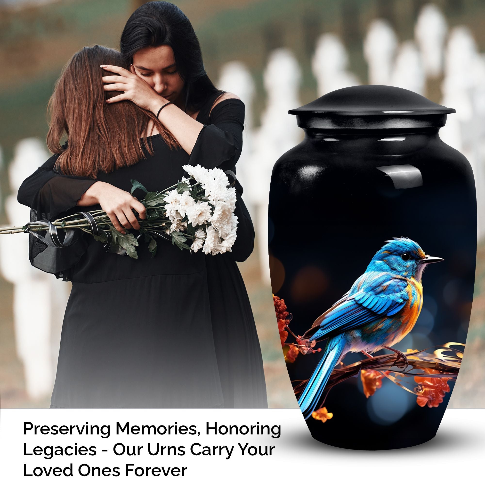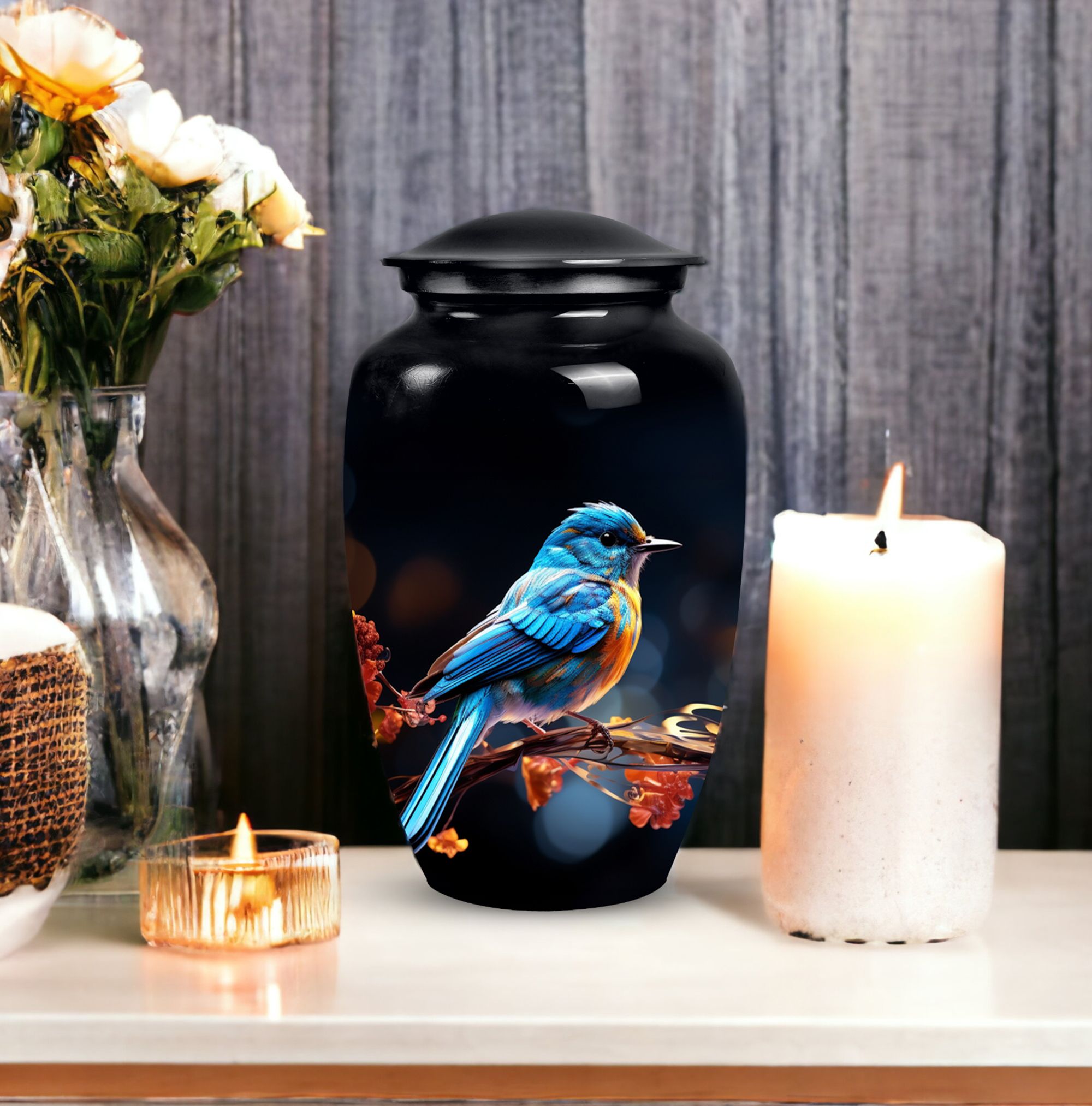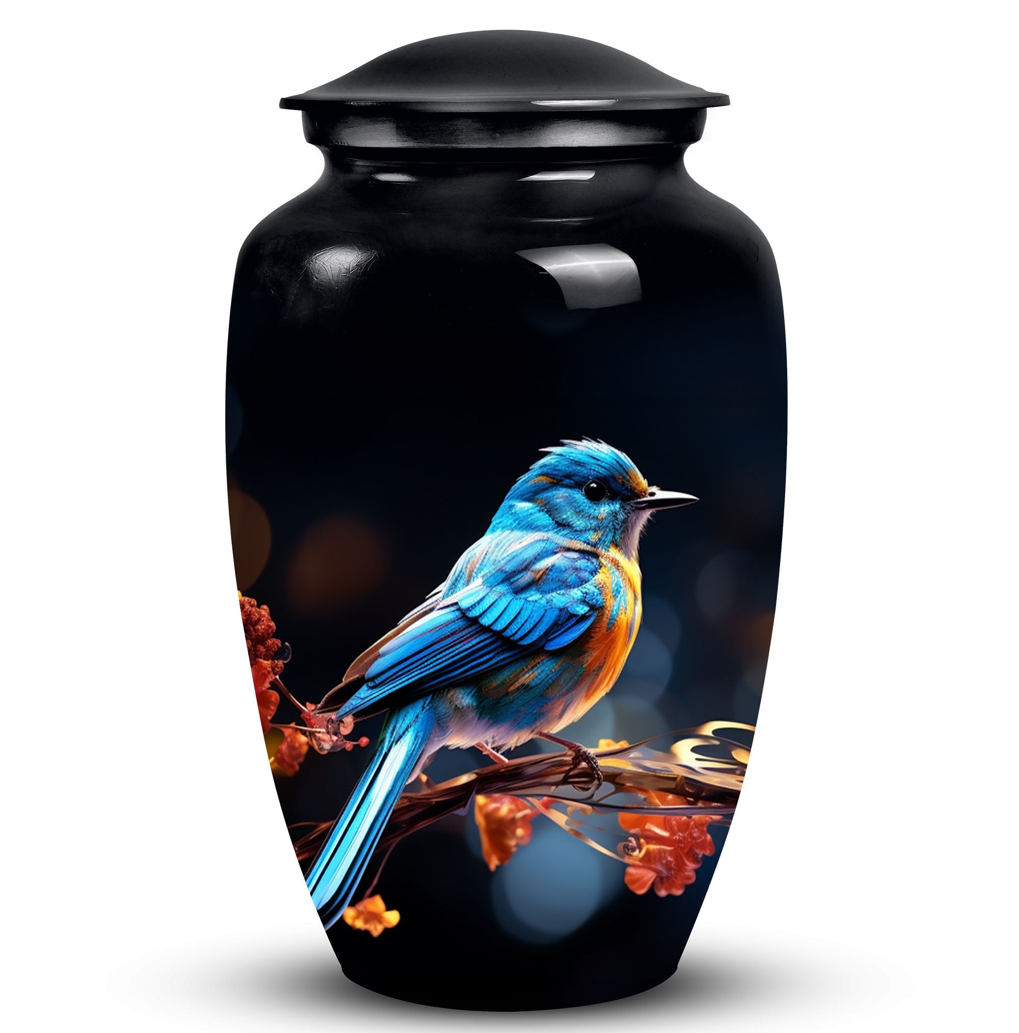 Experience the serene beauty of our Sparrow Urn, an exceptional piece from our unique urns collection. Crafted from durable metal, this cremation urn serves as a cherished memorial, encapsulating the essence of those who've embarked on their final journey. The emblem of a sparrow enhances its aesthetics, making it a beautiful commemoration. The Sparrow Urn is of medium size, designed to safely secure human ashes with the utmost dignity. Its compact nature creates an easy to carry, portable urn for human ashes, that's ideal for remembrance ceremonies. Given its sturdiness, this urn is also suitable for burial in ground, providing an enduring tribute. With the Sparrow Urn, ensure your loved ones are remembered with respect. Its unique charm adds a graceful touch to any memorial ceremony. A truly dignified representation, the Sparrow Urn stands as a testament to life well-lived and well-loved.