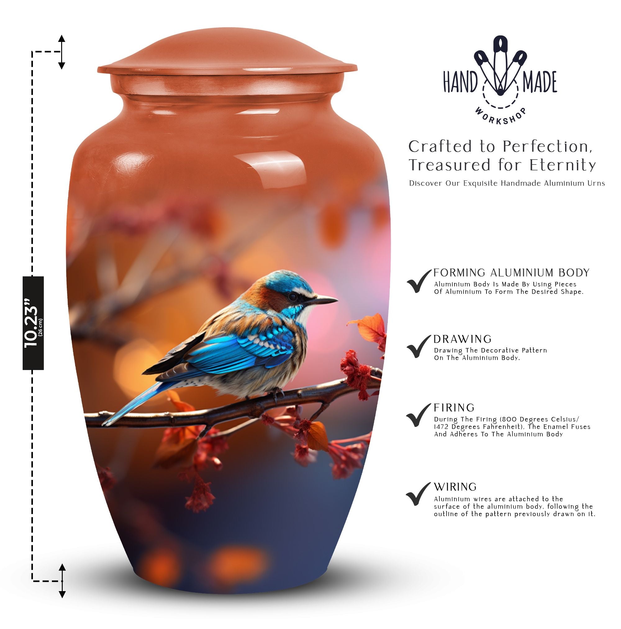 Find tranquility and peace with our elegantly designed Sparrow Urn. These metal urns for human ashes serve as a dignified and respectful resting place for loved ones, accommodating adults comfortably. Our product embodies the delicate balance between ornate craftsmanship and deep tribute, making it an ideal choice as urna para cenizas humanas. Picking the right funerary urns can be an overwhelming experience, but our Sparrow Urn simplifies that choice for you. Its thoughtful design and exceptional quality stand out in the selection of funeral urns for adult ashes, making it a comforting choice for many. The Sparrow Urn provides not just a container but a beautiful symbol of remembrance and reverence to those who have departed. With the Sparrow Urn, we aim to provide you the reassurance of selecting the perfect funerary urn for your loved ones, ensuring their memory lives on in elegance and grace.
