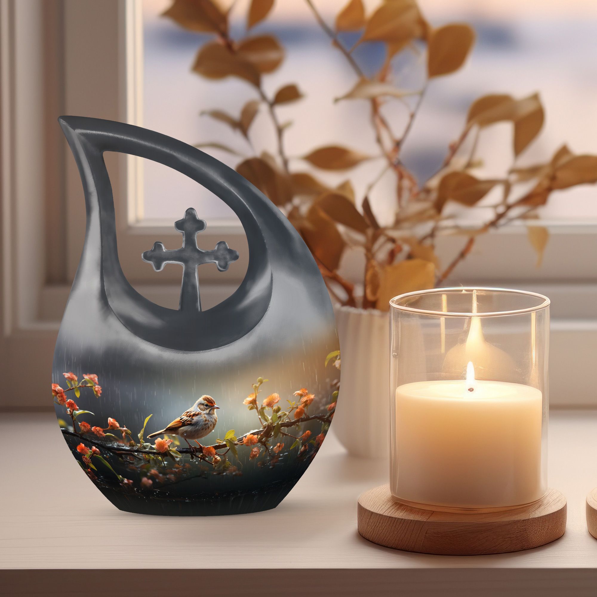 Let the Sparrow on Branch Urn serve as a tender reminder that love endures, even through life’s quiet rain — a peaceful memorial for the one who has found their wings.