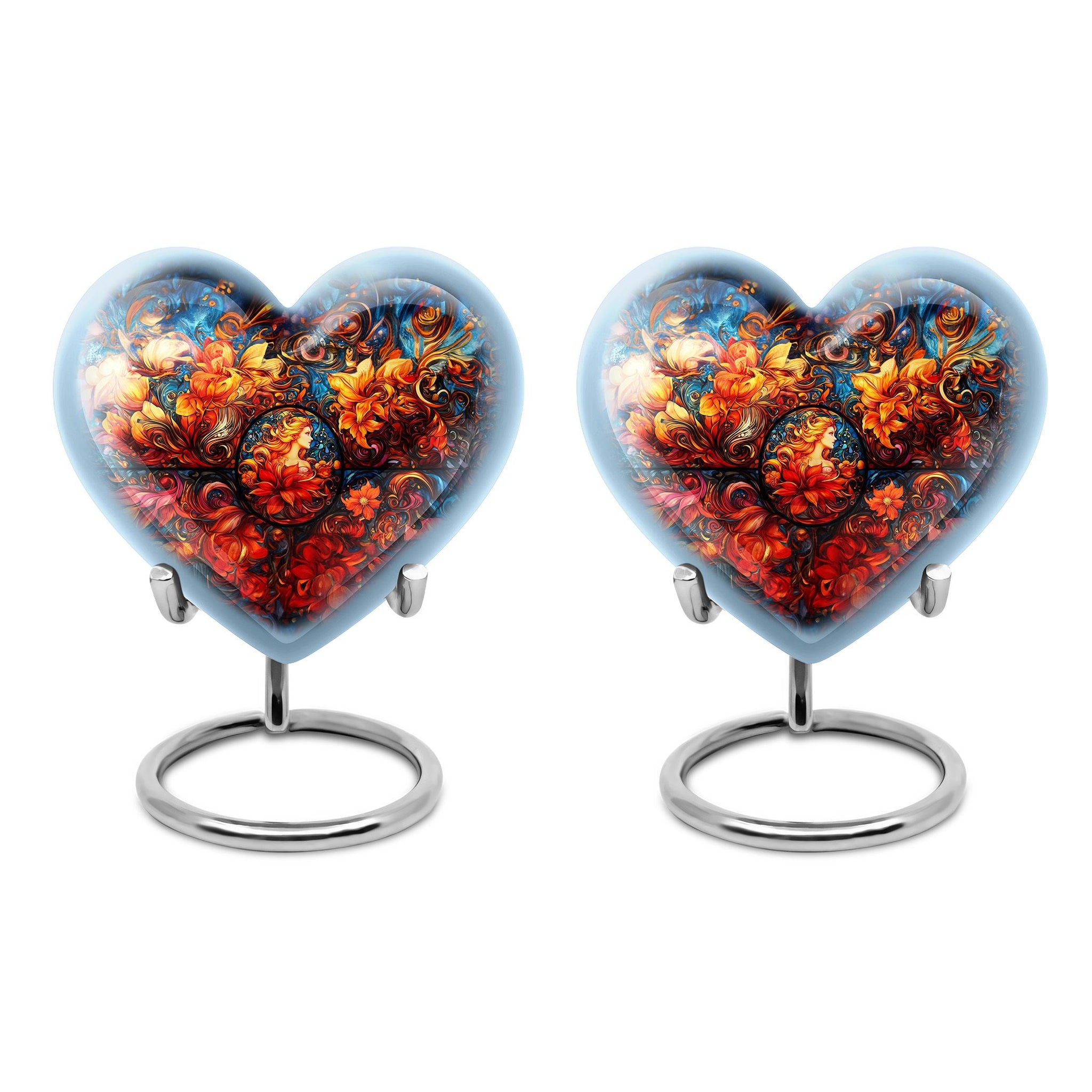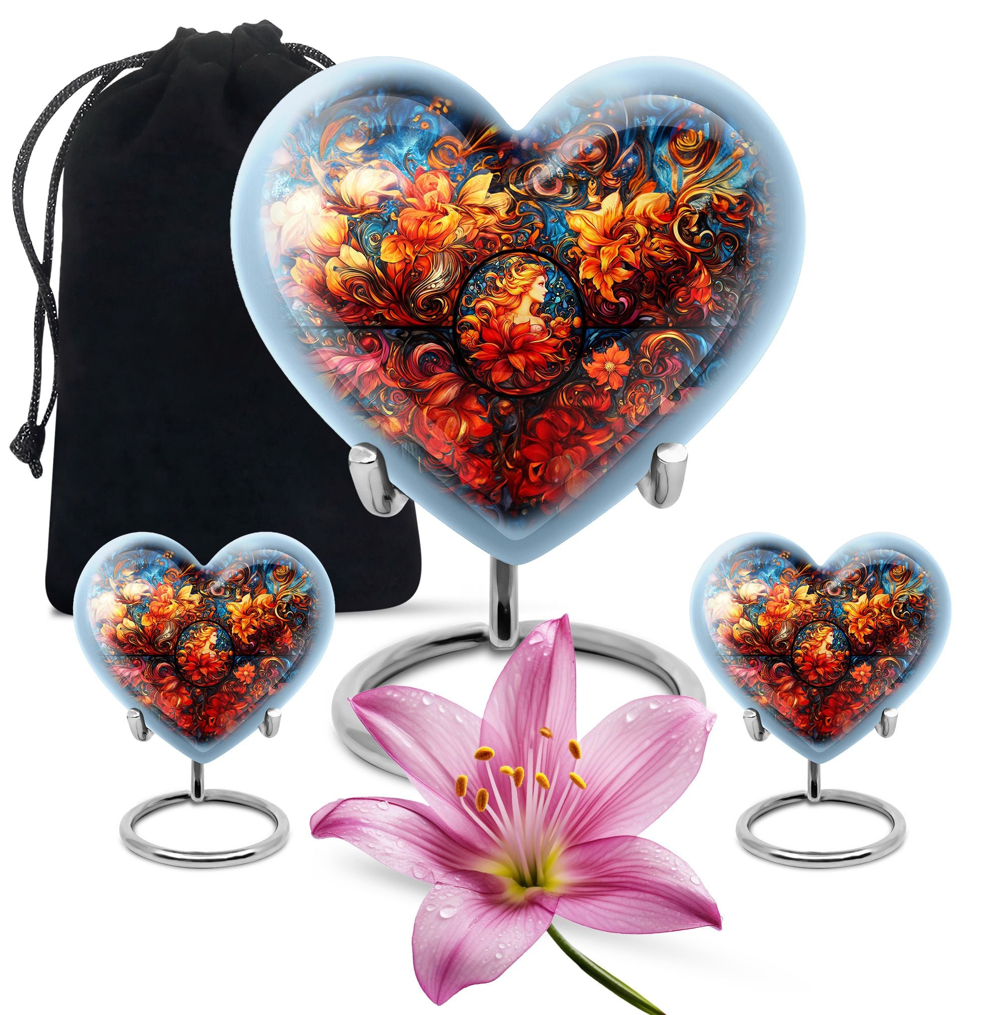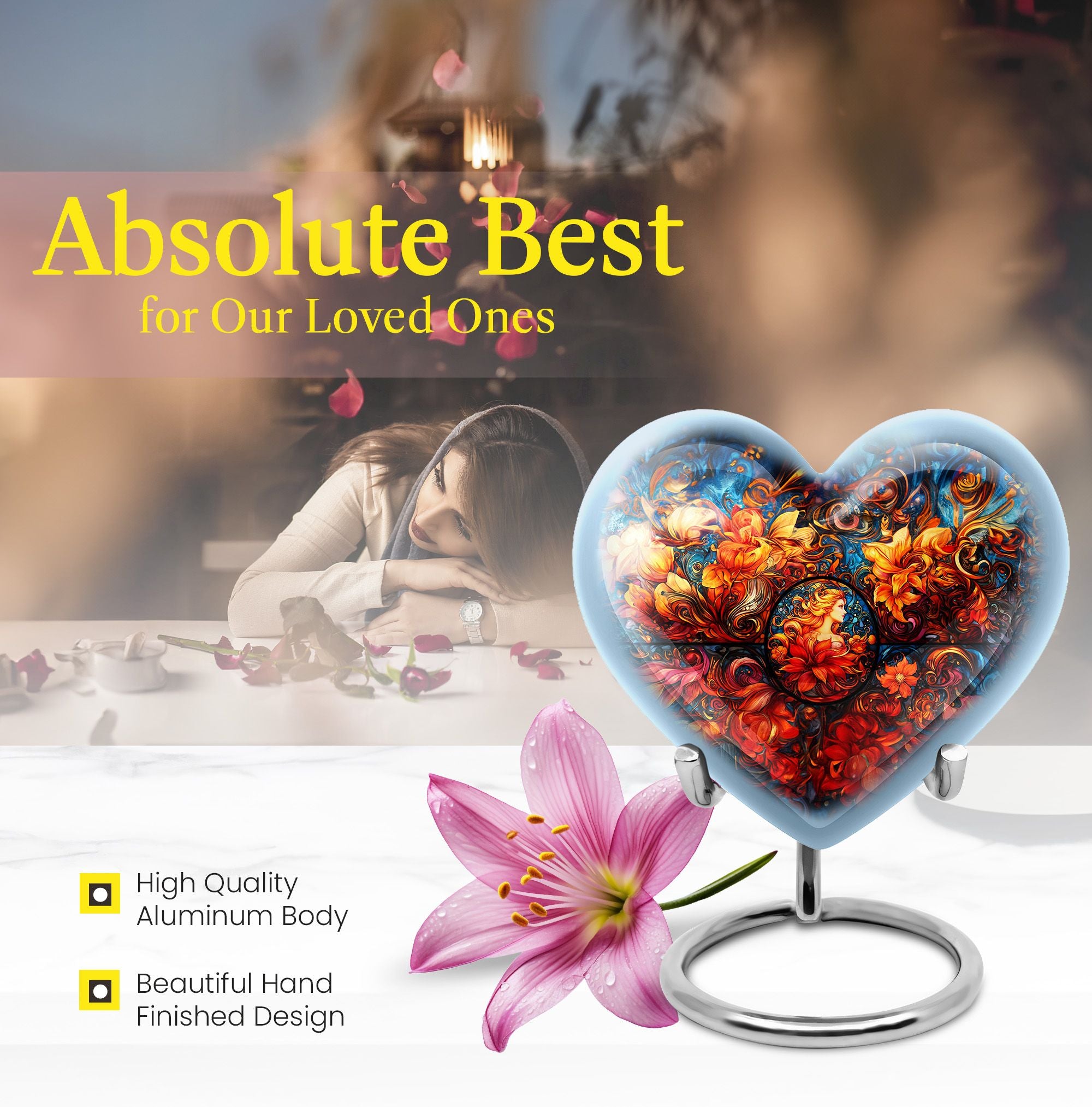 Give eternal peace to the departed soul with our meticulously handcrafted stained glass urn, a classic attribute in the world of memorial ceremony supplies. This exquisite 10-inch aluminium urn, with its weight of 3.3 pounds, offers ample capacity of 200 cubic inches, ideal for the containment of ashes post cremation. The heart urn design is an element of perpetual adoration, creating an aesthetic balance between elegance and symbolism. The jewel-toned hue of the stained glass complements the urn's architecture, delivering a sophisticated and timeless piece. We invite you to personalize this cremation urn with engraved names, adding a touch of intimacy and fond remembrance. The product comes with a velvet pouch, thoughtfully designed for careful containment of ashes. This funeral cremation urn matches perfectly with your expectations of an ash adult funeral urn or an urn for cremation ashes mother. A fitting tribute to the beloved ones, this stained glass heart urn is an embodiment of love and remembrance.