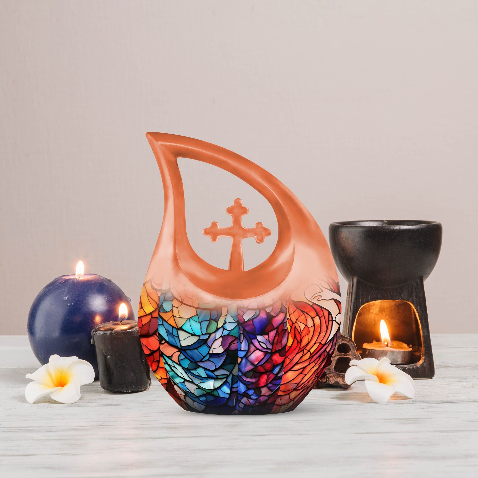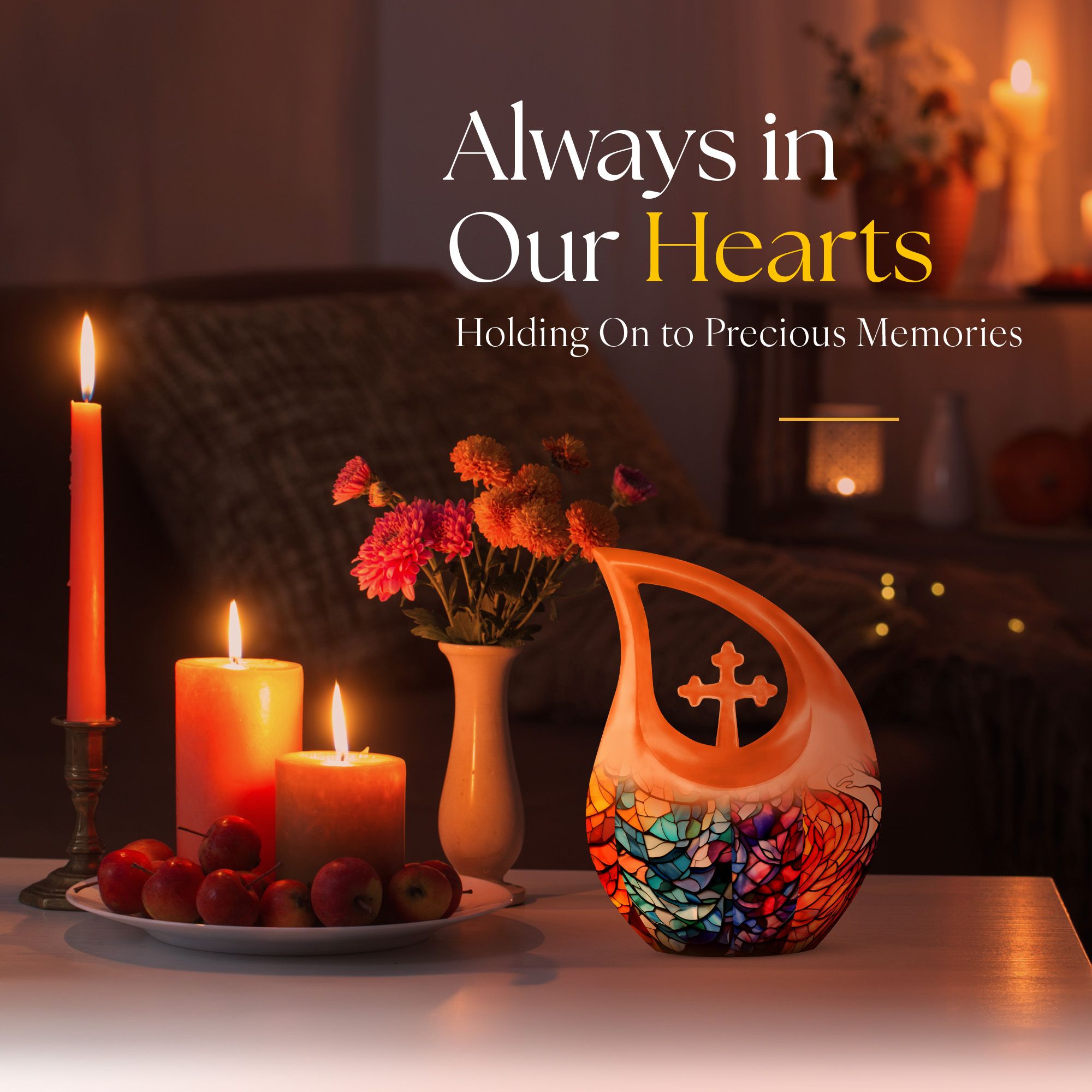 Honor a life filled with warmth, color, and compassion with the Stained Glass Cremation Urn for Human Ashes. This exquisite piece symbolizes love’s everlasting light, offering comfort and remembrance. Perfect as a cremation urn for adult or part of a cremation urns for adults collection, it serves as a timeless memorial that celebrates beauty, spirit, and peace.