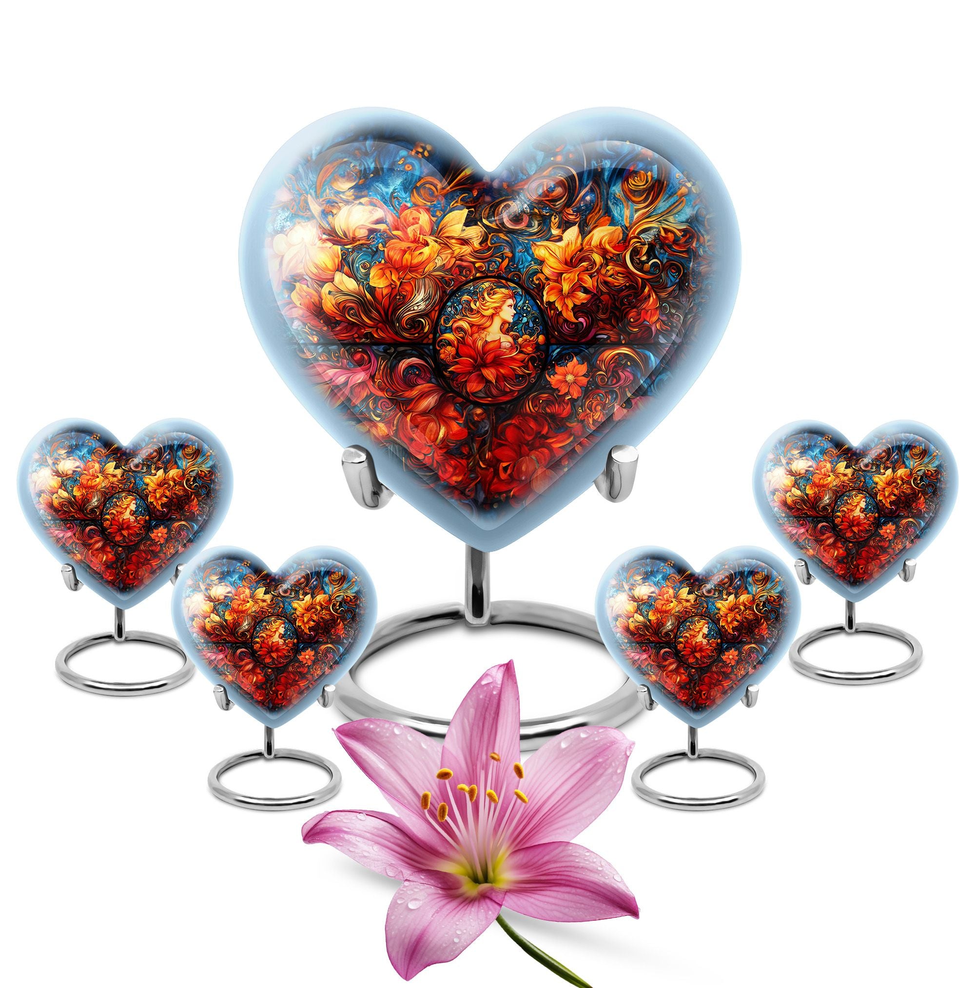 The **Stained Glass Urn for Human Ashes Large Size** captures the **intricate beauty of light and color, symbolizing the uniqueness of a loved one’s journey and the lasting memories they left behind**.
