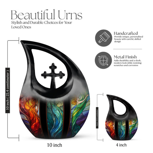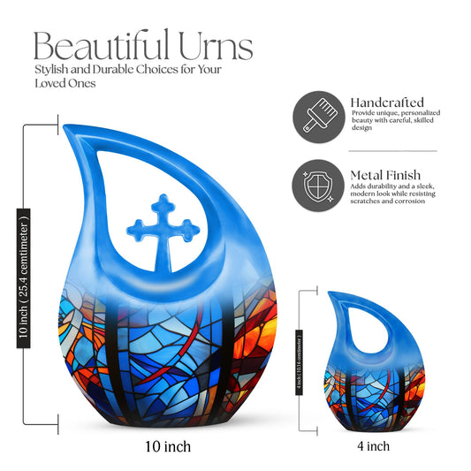 Designed for those who cherished beauty, art, and vivid colors, these stained glass theme urns for ashes serve as a radiant tribute to a life well-lived. The urns showcase intricate patterns and glowing tones reminiscent of cathedral windows, sunlight reflections, and spiritual sanctuaries—making them ideal for both home display and memorial services.
