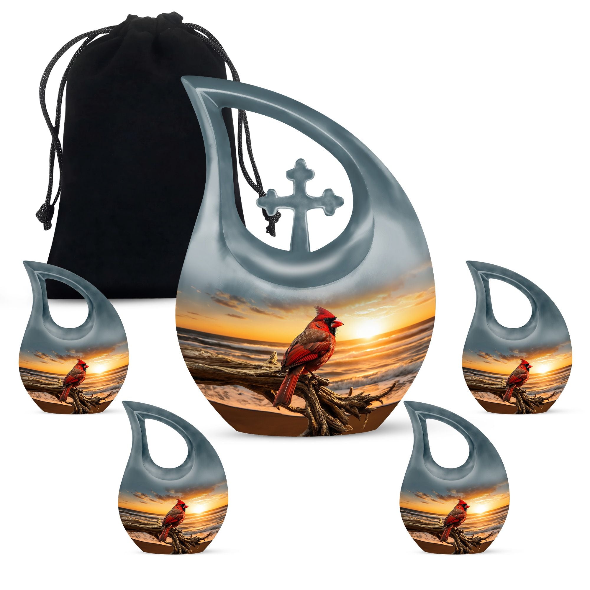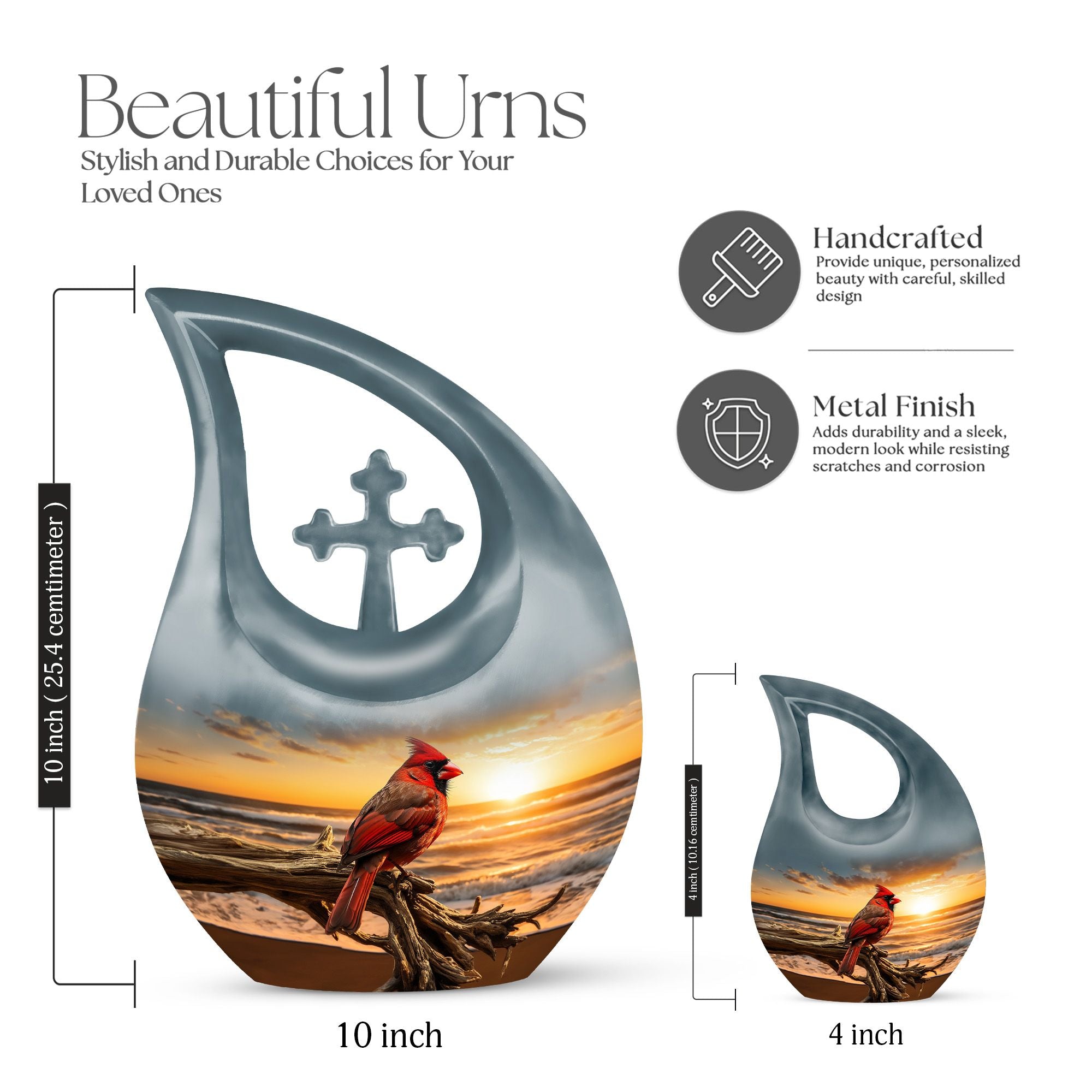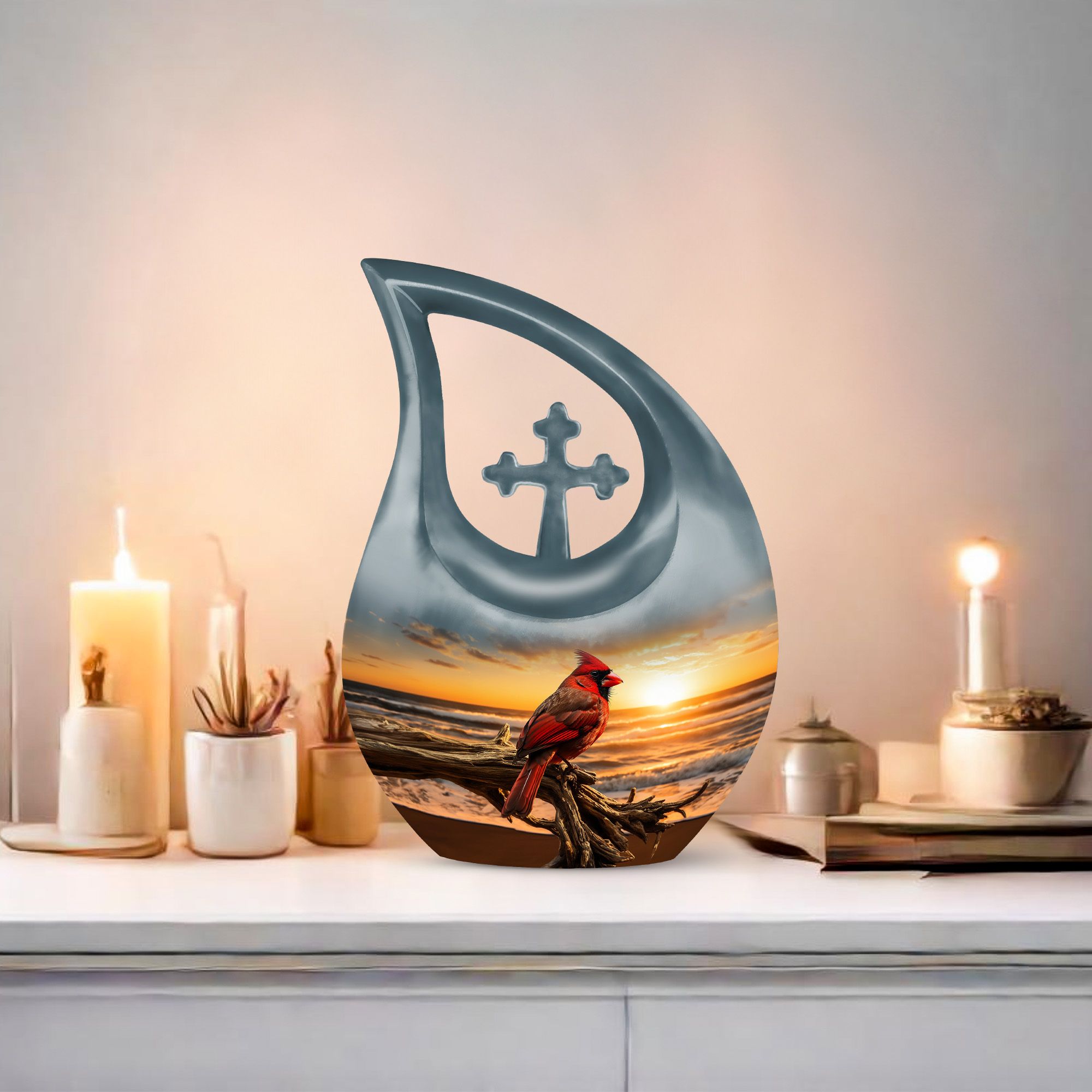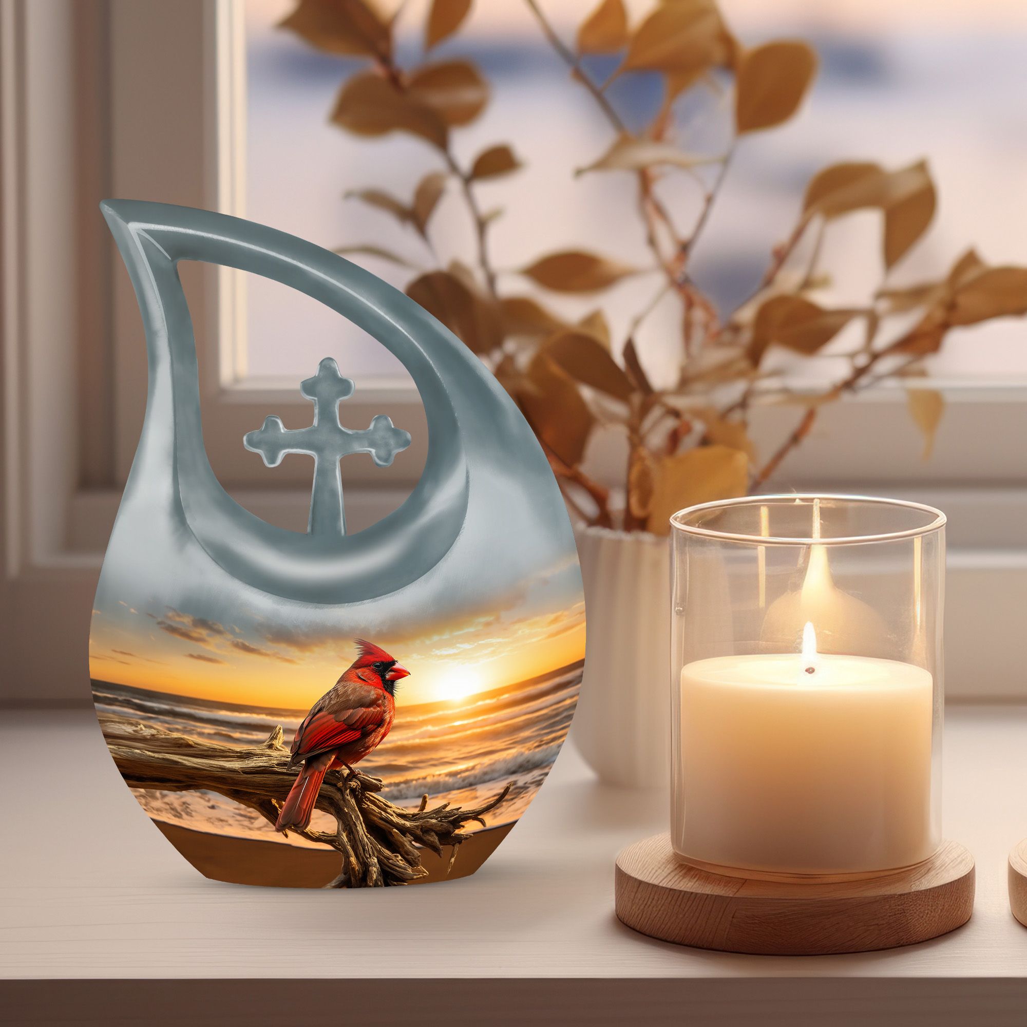 The sunset backdrop symbolizes transition and eternal rest, while the red cardinal—often viewed as a messenger of remembrance—makes this urn a meaningful choice for those seeking urns for adult male dad or urns for human ashes adult male dad. Its artistic detail and compassionate design ensure a tribute that truly honors a life well lived.