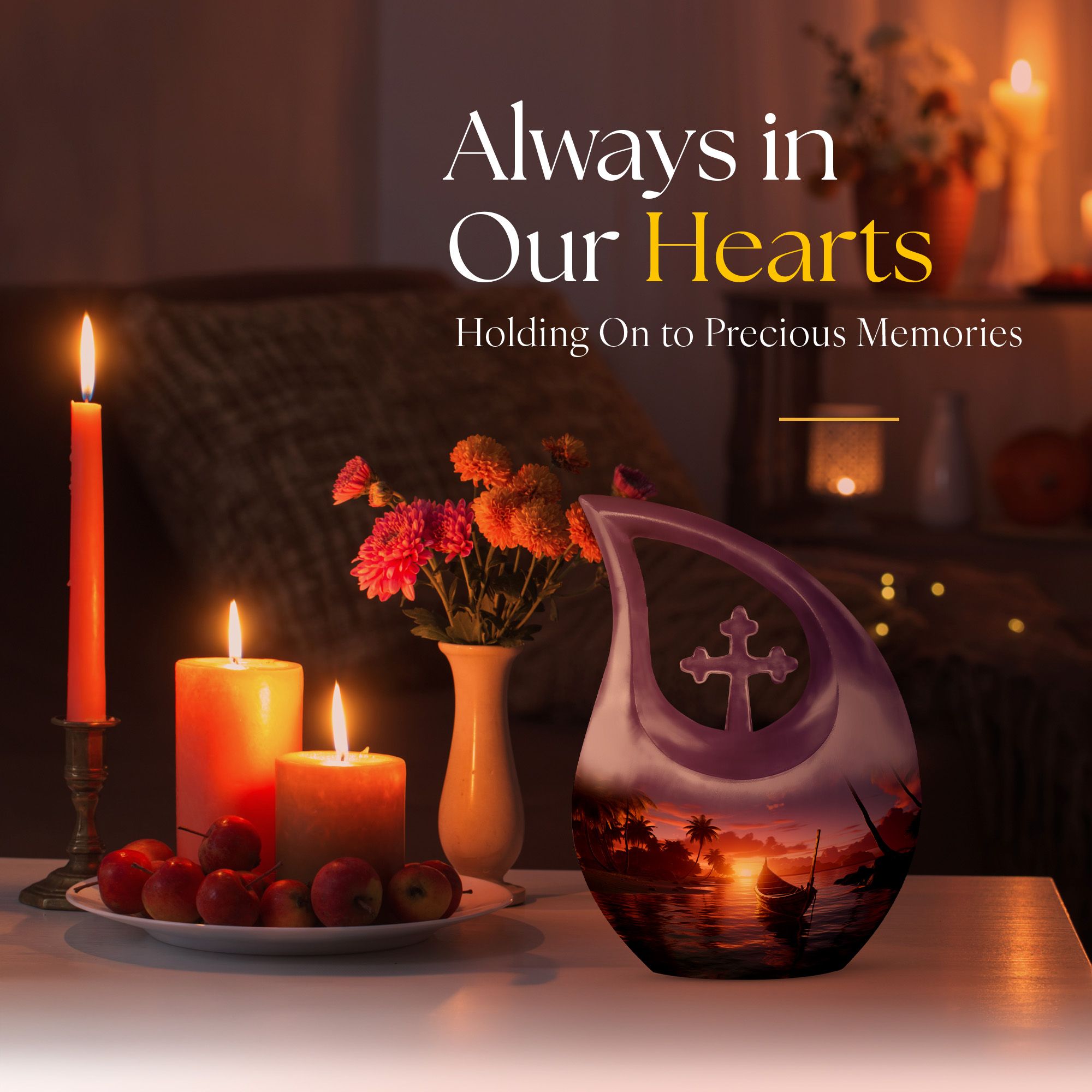 Honor a cherished woman with this Coastal Boat Cremation Urn, a serene sunset-themed tribute inspired by gentle waters and peaceful evening skies. Designed for dignity and comfort, it serves beautifully for families seeking cremation urns for large human ashes adult or a heartfelt large urn for adult ashes.