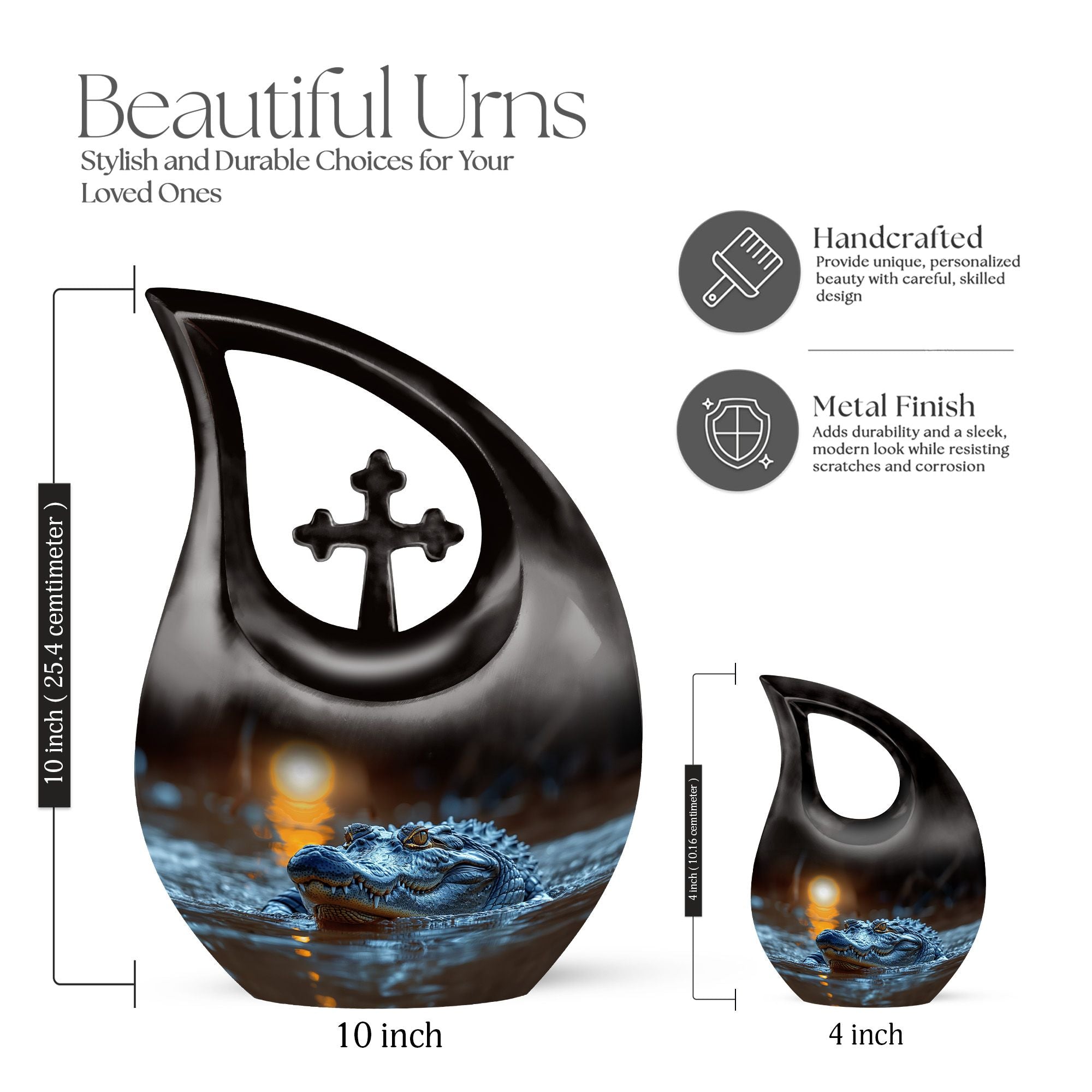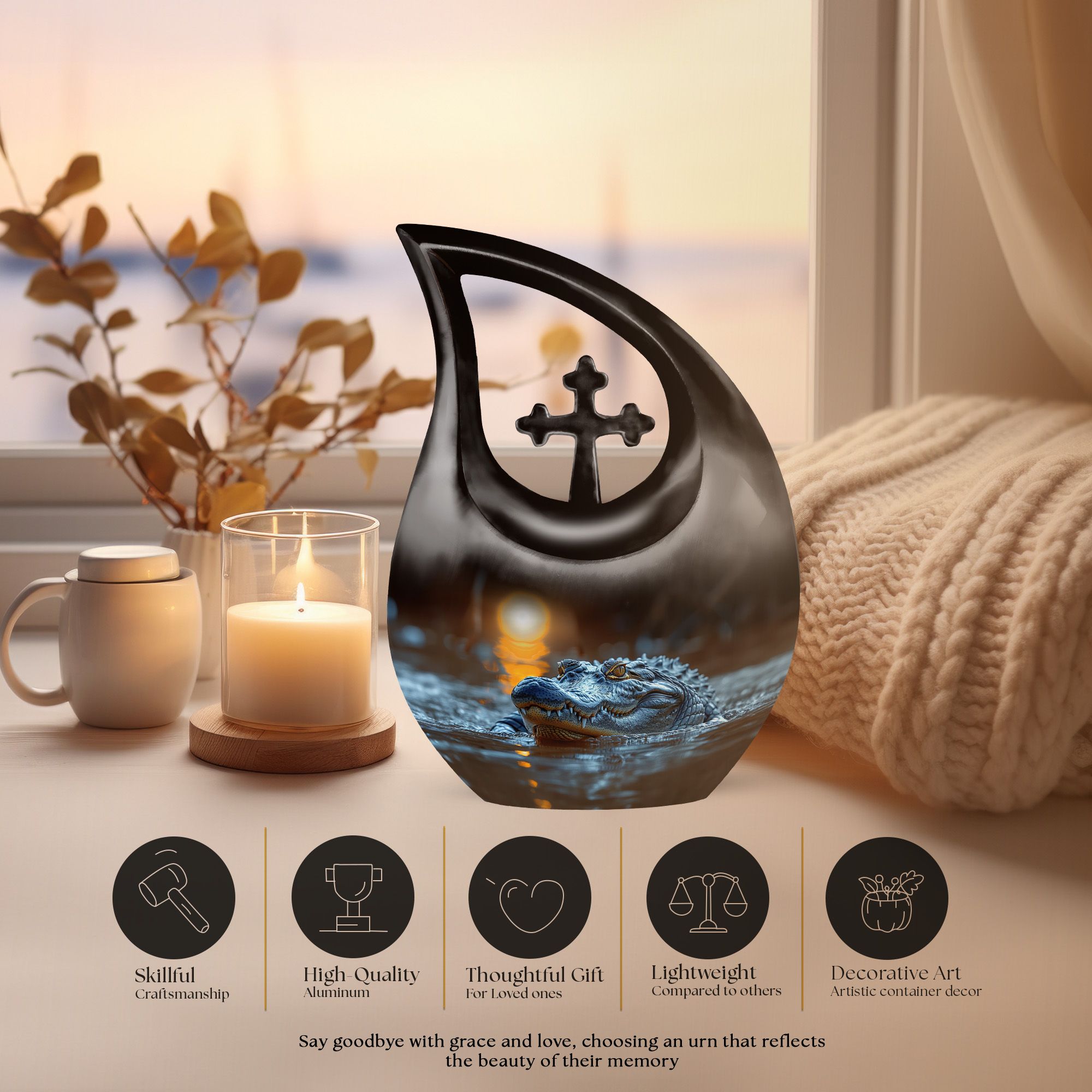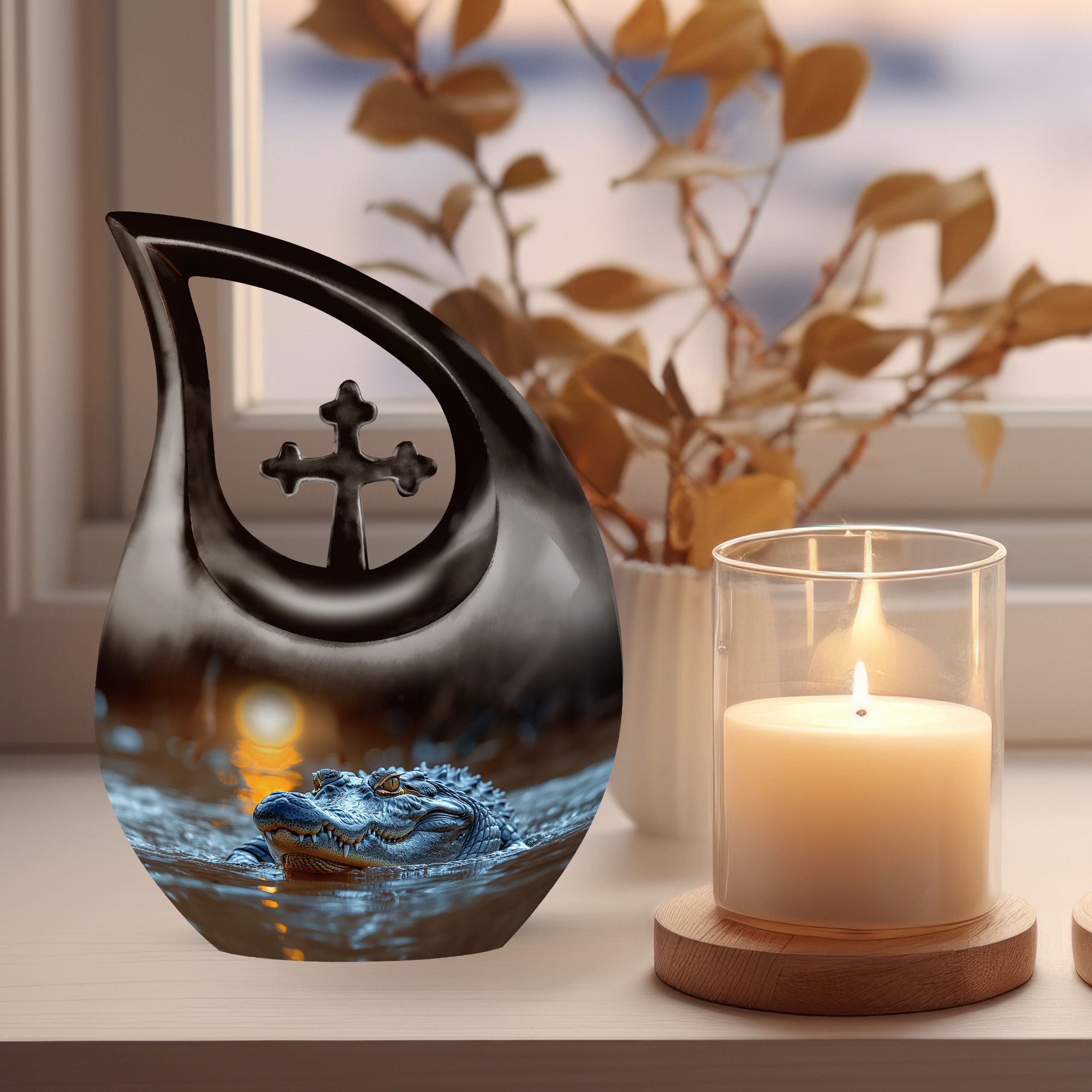 Let the Alligator Cremation Urn stand as a symbol of strength and peace — a funeral urn for human ashes small or full-size memorial that celebrates life’s fierce beauty and eternal bond. Whether chosen as a funeral urn or keepsake, it embodies love that never fades.