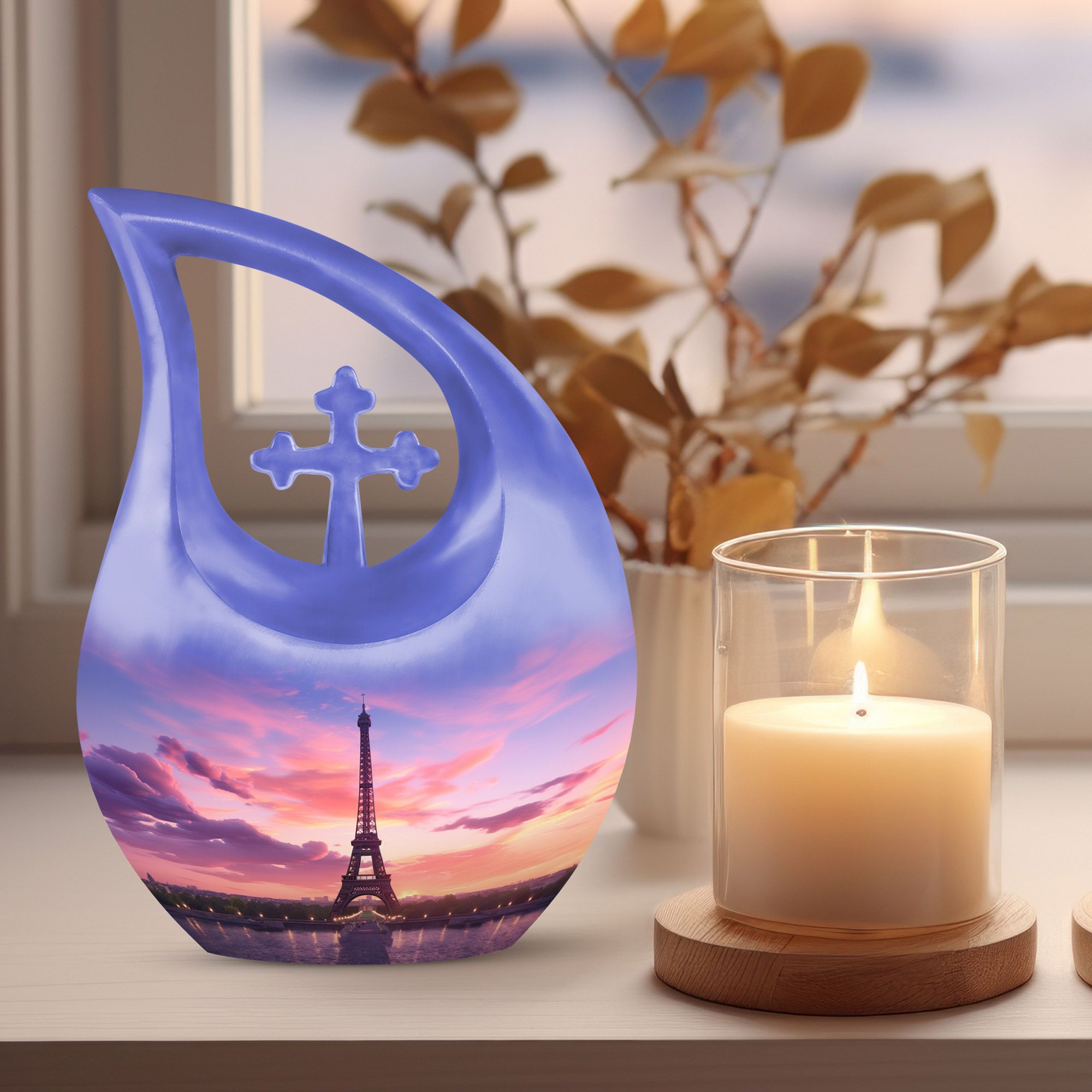 The Paris Eiffel Tower Sunset Urn is a timeless tribute to love, memory, and serenity. Inspired by the romantic hues of a Parisian sunset, this exquisite urn beautifully captures the spirit of remembrance. Perfect for families seeking Urns For Human Ashes Adult Female Mom or Urns For Adult Male Ashes, it serves as a meaningful resting place that honors life’s most precious memories with grace and elegance.