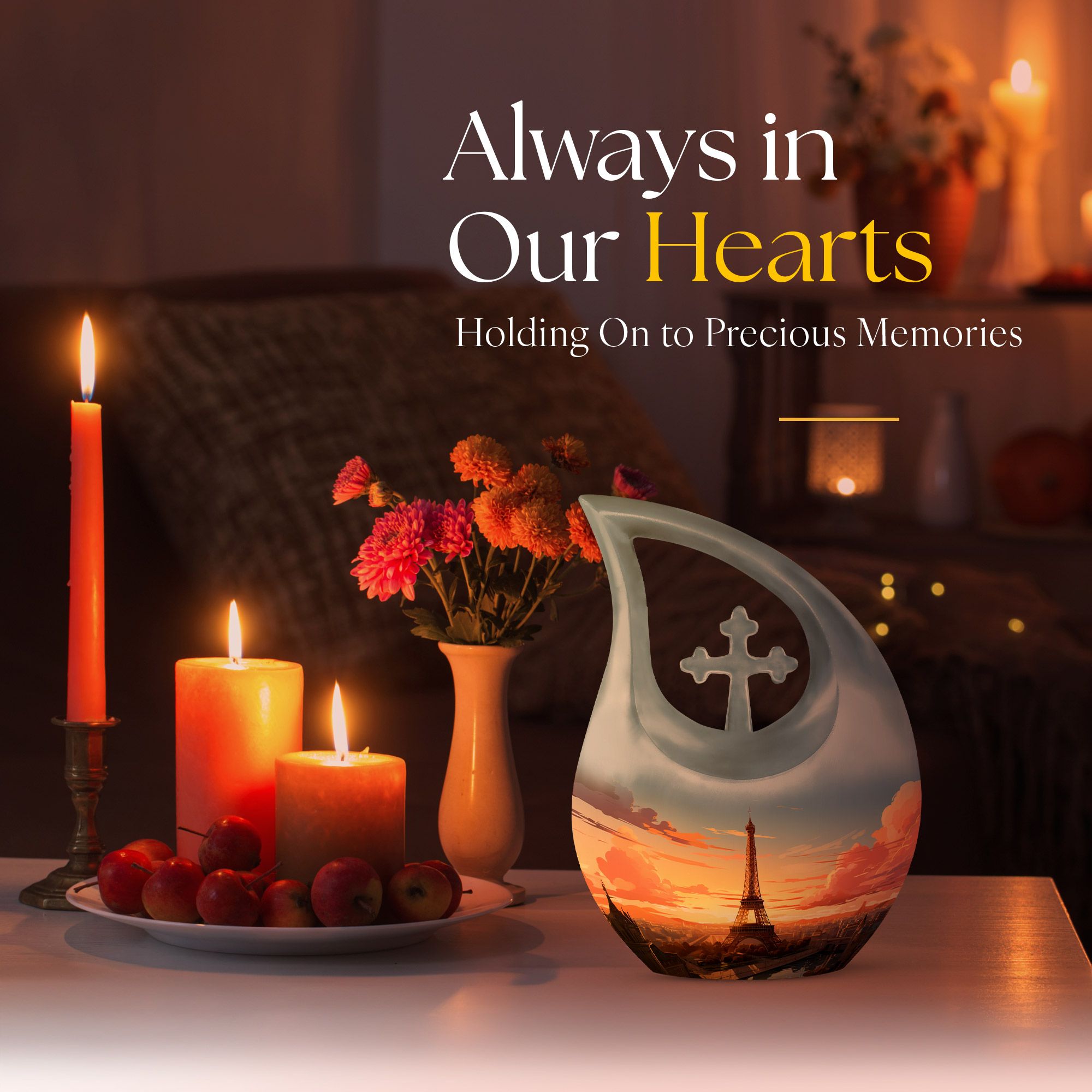 Perfect for those who wish to honor life’s most beautiful memories, the Paris Eiffel Tower Sunset Memorial Urn serves as a timeless Burial Urn For Human Ashes Adult Male or a graceful keepsake for a beloved mother. Each detail reflects thoughtfulness, ensuring a meaningful remembrance.