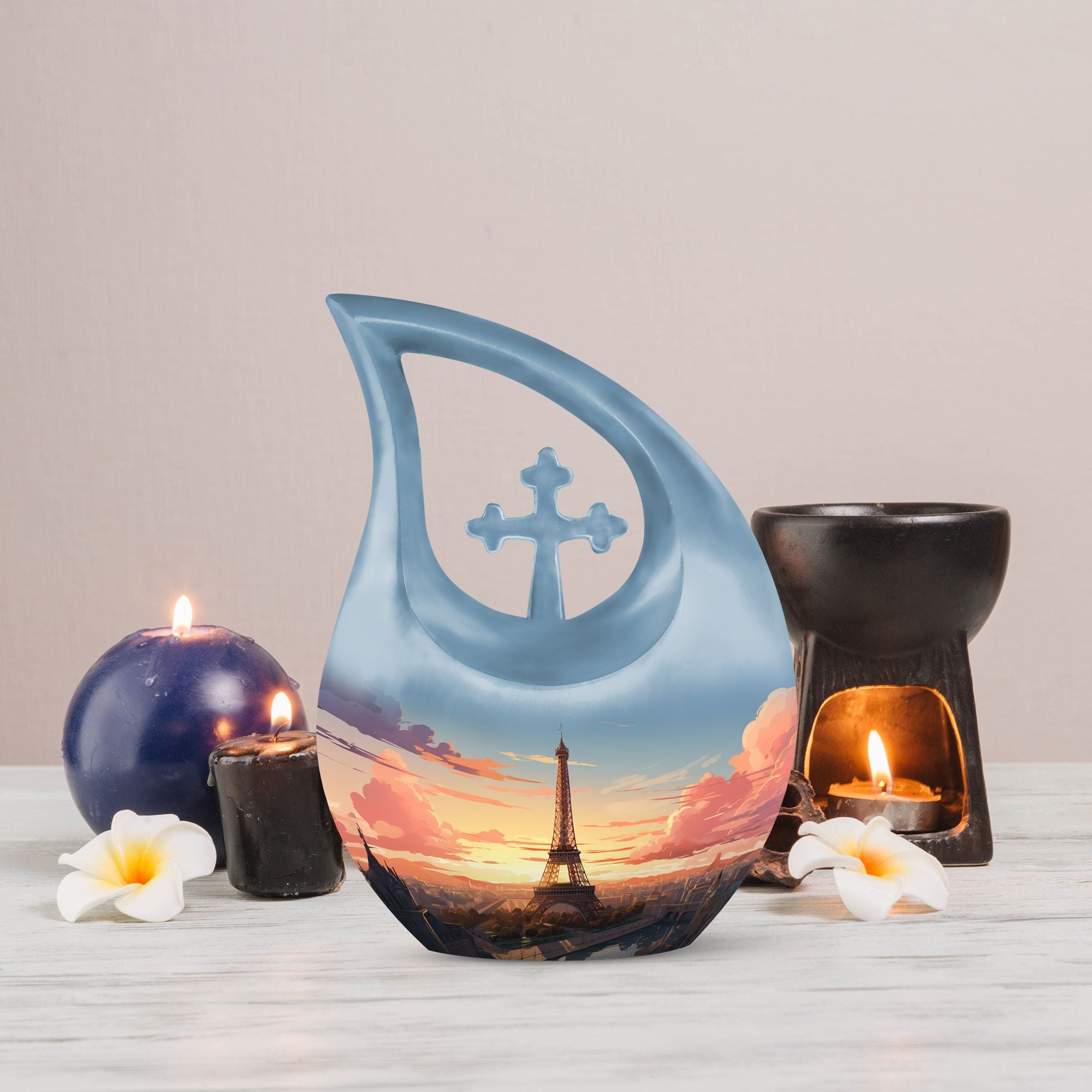 Celebrate the beauty of life and the memories that live on with the Paris Eiffel Tower Sunset Memorial Urn. This elegant piece symbolizes eternal love and remembrance, making it a touching tribute for families seeking Urns For Ashes Adult Female Mother or Cremation Urn Adult Male. Its Parisian charm captures the warmth of sunsets and the promise of cherished moments forever remembered.