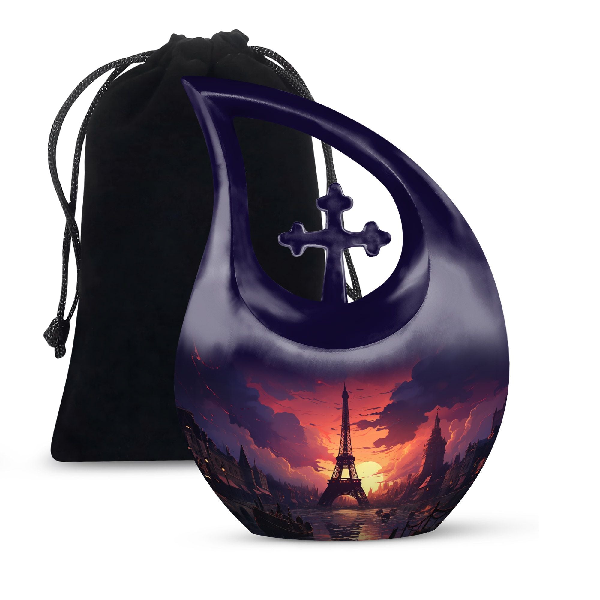 Cherish the timeless memories of your loved one with the Eiffel Tower Sunset Urn. This elegant memorial piece captures the warmth of a sunset over Paris, symbolizing eternal love and remembrance. Thoughtfully designed as a large urn for ashes for women, it serves as a comforting reminder of a life beautifully lived.